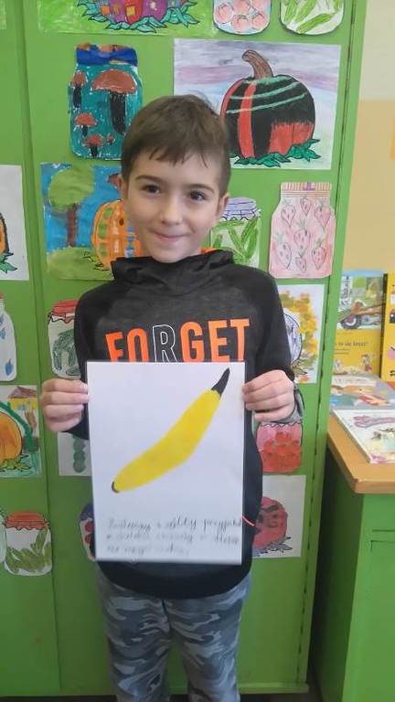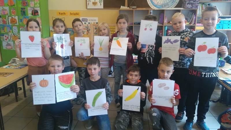 Drogą głosowania dokonali wyboru najlepszej zagadki i rymowanki. Każdy uczeń oddał swój głos na wybraną pracę. Zwyciężyła zagadka Piotrka Muchlewicza, który ułożył zagadkę o bananie ,,Podłużny, żółty, przyjechał z daleka i każdy w sklepie na niego czeka.’’ Miejsce II zajęła rymowanka Kuby Raczkowskiego o ogórku ,,Był sobie ogórek figurek, miał zielony garniturek, przyszła Zosia zjadła tego Cosia.’’