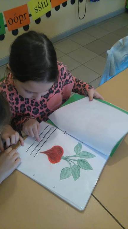 Uczniowie wybierali nazwę warzywa lub owocu (warunek był taki, że nie może być dwóch takich samych nazw). Po dokonaniu wyboru przystąpili do twórczego myślenia. Jedni stwierdzili, że napiszą zagadkę inni, że wymyślą rymowankę. Podczas pracy zwracali się do nauczyciela w celu dokonania korekty i poprawy ewentualnych błędów. Następny etap dotyczył plastycznego przedstawienia swojego owocu lub warzywa. Uczniowie klasy II uwielbiają plastykę, więc z wielkim zaangażowaniem zabrali się do pracy.