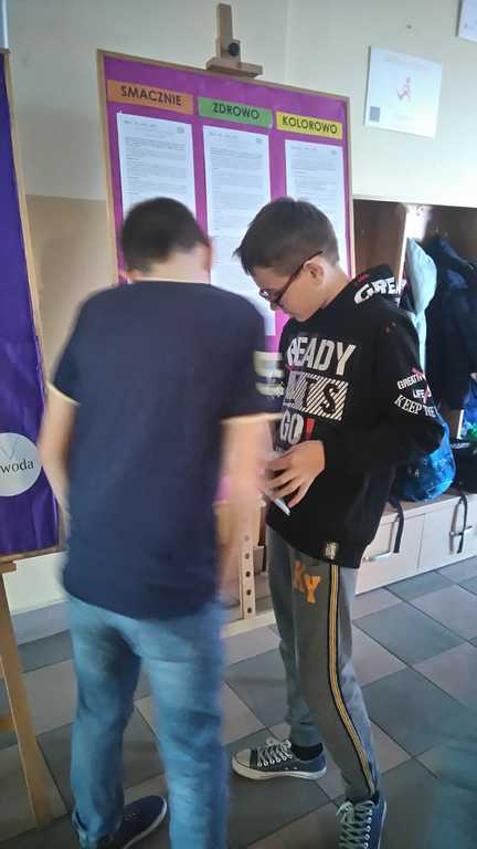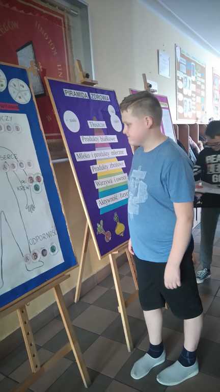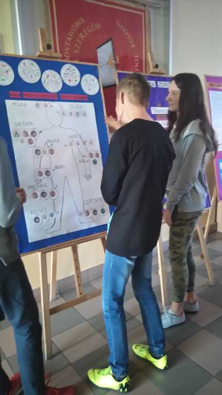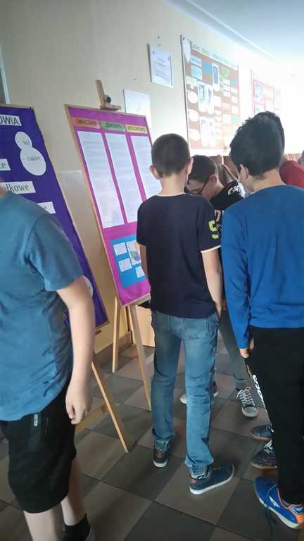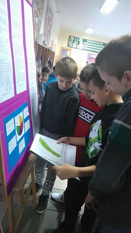 Galeria naszych prac i dobrych rad zajęła miejsce na głównym holu szkoły. Cieszyła się ona dużym zainteresowaniem wśród rodziców, którzy odwiedzili szkołę z okazji wywiadówki. W czasie spotkania rodzice otrzymali także ulotki na temat ważnej roli warzyw i owoców w naszym jadłospisie. Rodzice zapoznali się z wytworami prac dzieci oraz informacjami „Forum dla rodziców”.