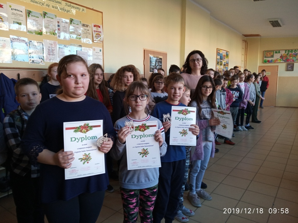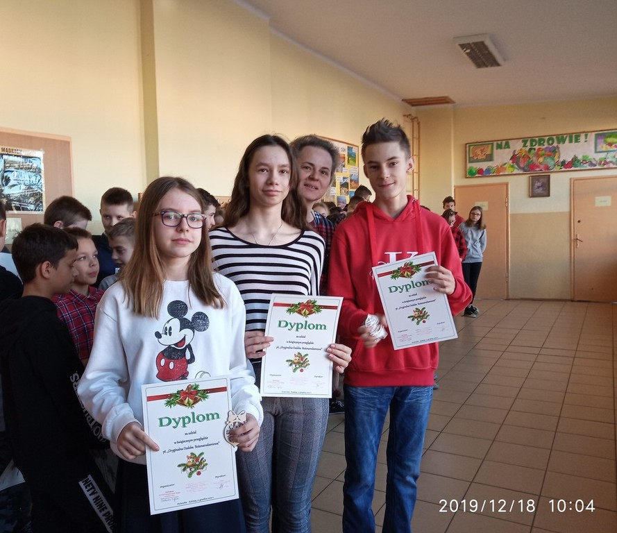 Wręczenie dyplomów za udział w Przeglądzie Ozdób Bożonarodzeniowych