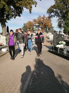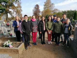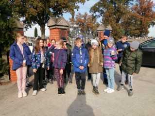 Wyjście uczniów na cmentarz w Dzierzbinie