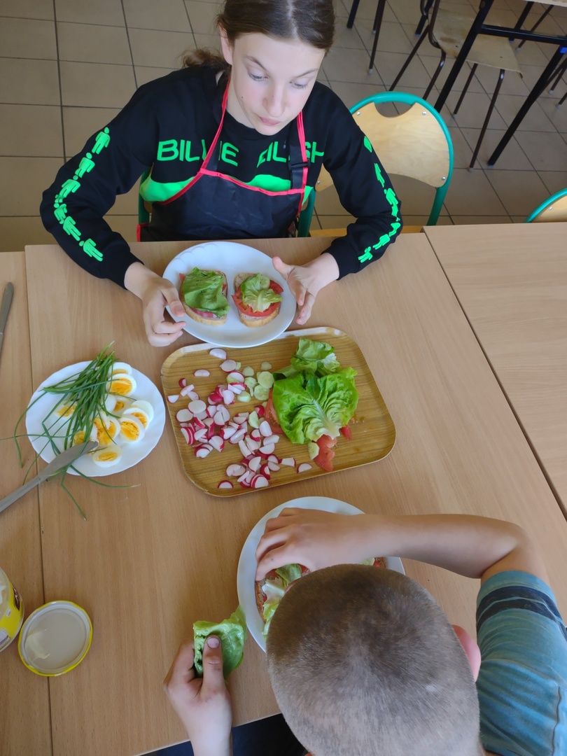 Zdrowo żyjemy - Przygotowywanie kolorowych kanapek przez uczniów kl. V