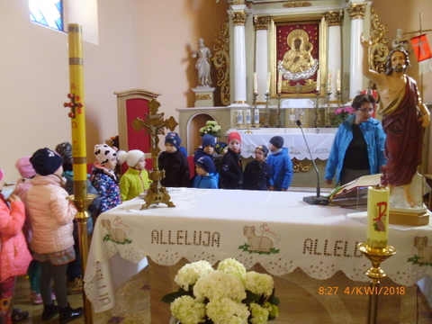 04.04.2018 r. Zapoznanie dzieci z relikwiami kościelnymi, obejrzenie Grobu Pańskiego.