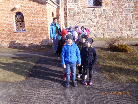Wyjście przedszkolaków z katechetką do Kościoła w Dzierzbinie