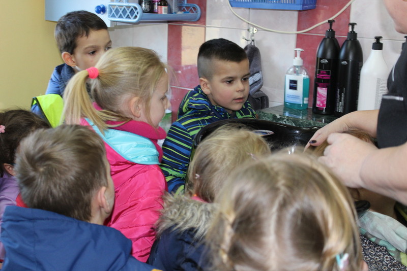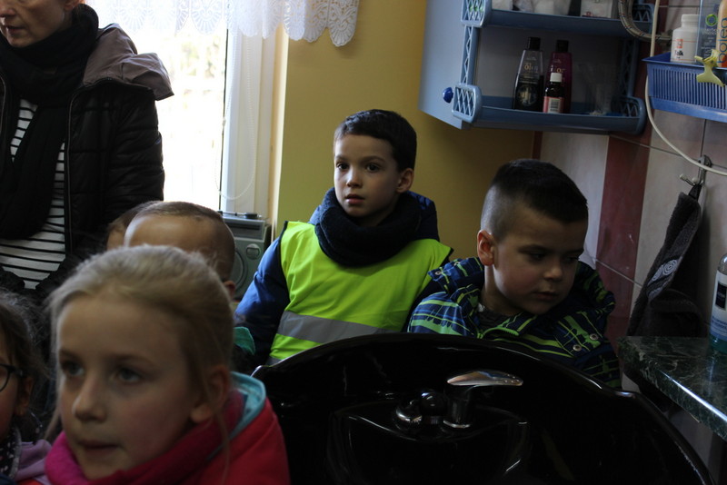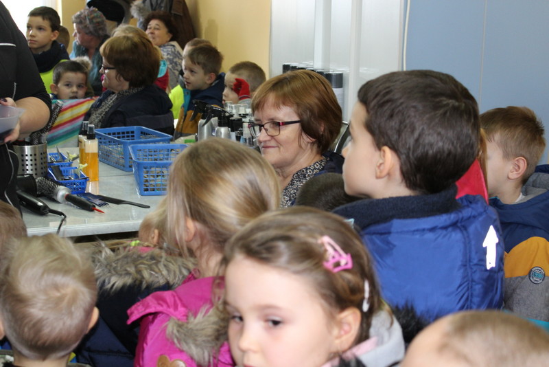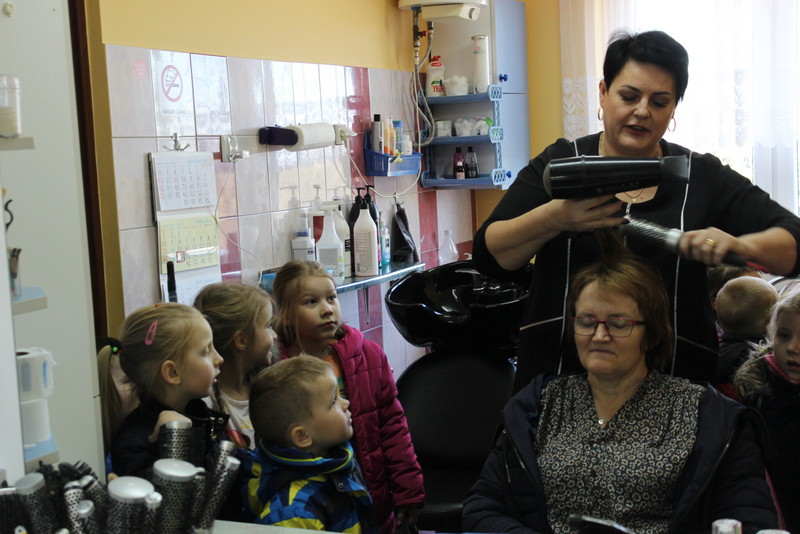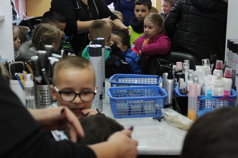 Wizyta przedszkolaków w zakładzie fryzjerskim w Dzierzbinie