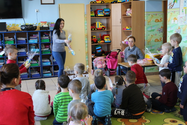 Wręczenie przedszkolakom dyplomów i upominków za wykonanie ozdób wielkanocnych