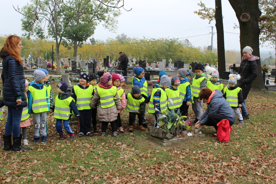 Wyjście przedszkolaków na cmentarz w ramach akcji ,,Szkoła pamięta'