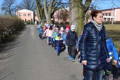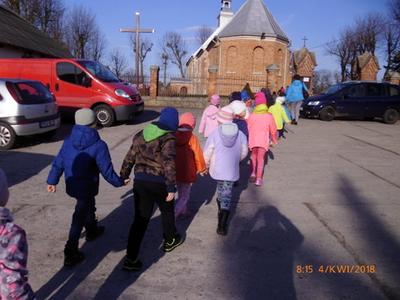 • Wyjście przedszkolaków z katechetką do Kościoła w Dzierzbinie
