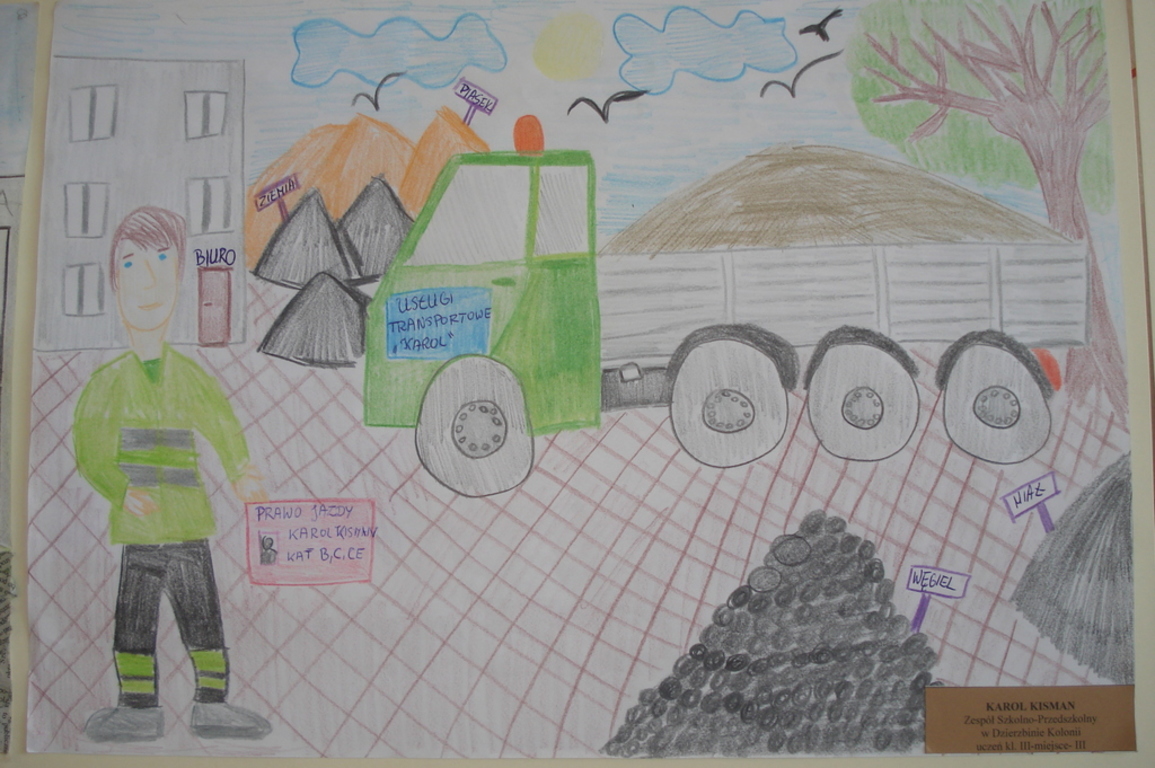 Karol Kisman - uczeń klasy trzeciej zajął III miejsce w Konkursie Plastycznym pod nazwą: ,,Wiem, kim chcę zostać w przyszłości” pod Patronatem Starosty Kaliskiego.