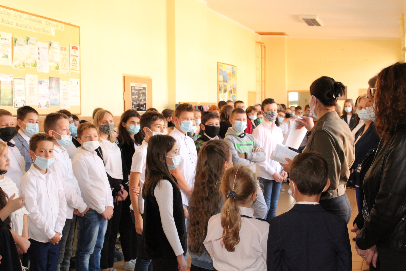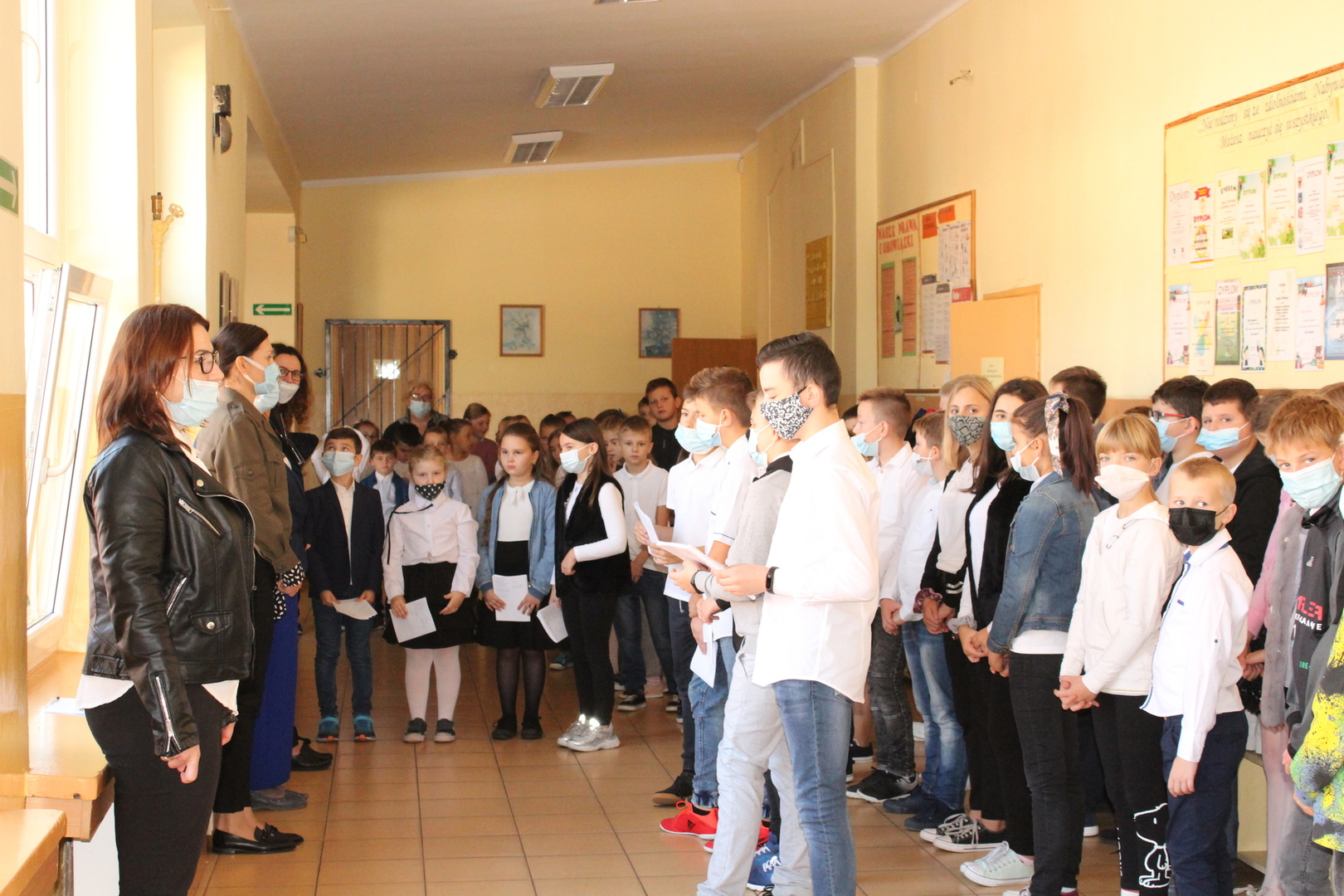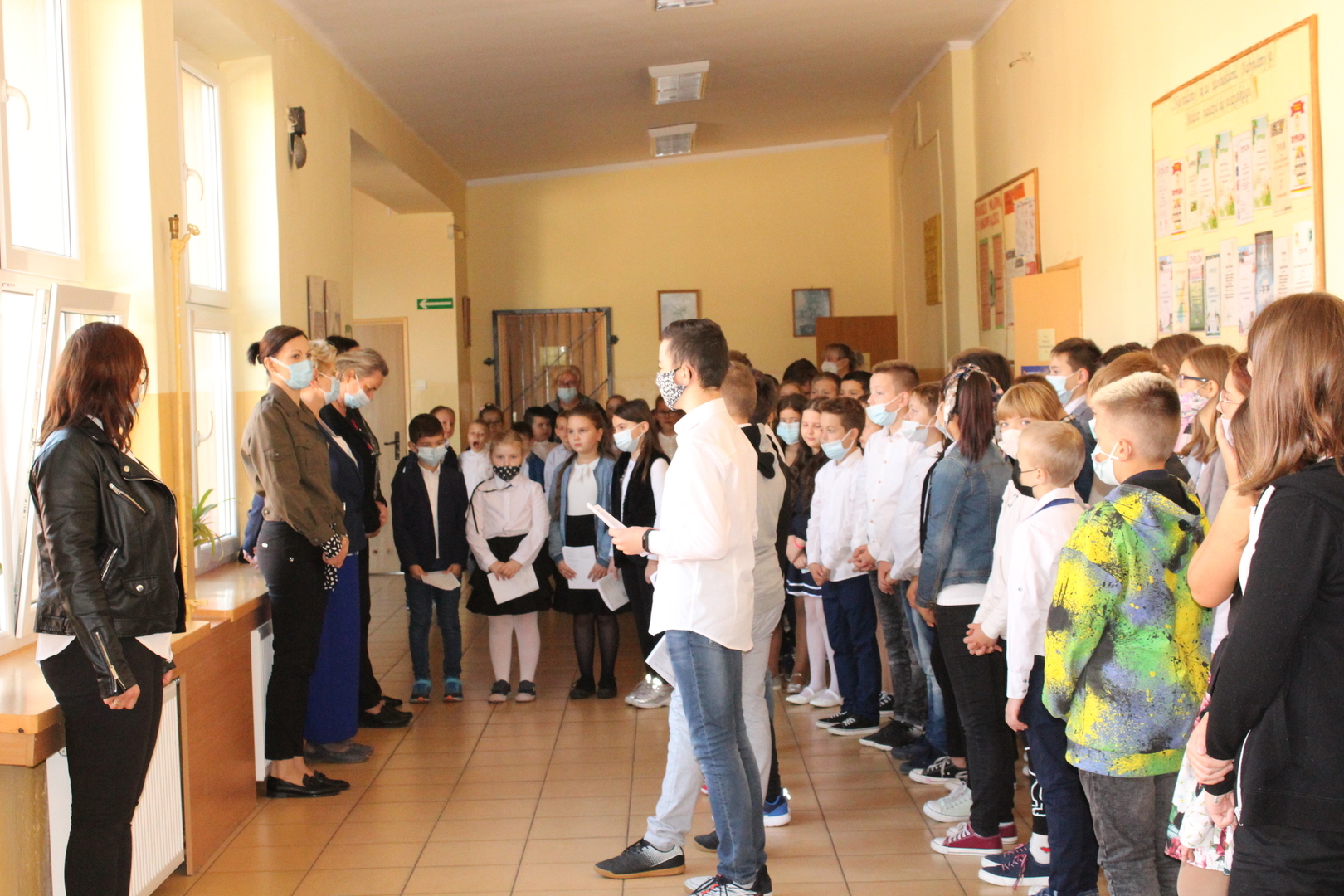 29 września odbyła się uroczystość z okazji Święta Patrona Szkoły. Przygotowania do niej trwały od początku roku szkolnego, ponieważ uczniowie każdej z klas IV – VII oraz uczniowie uczestniczący w zajęciach chóru szkolnego i uczniowie klas I – III uczęszczający na zajęcia artystyczne uczyli się piosenek związanych z Szarymi Szeregami. W dniach 22 – 23 września odbyły się nagrania piosenek. Uczniowie, w galowych strojach, wykonali przygotowane utwory, które stanowiły oprawę muzyczną tegorocznej uroczystości. Obchody Święta Patrona rozpoczęły się od krótkiego apelu na górnym korytarzu, podczas którego Barbara Wieczorkiewicz – drużynowa 4 DH Dzierzby – wprowadziła zebranych w tematykę uroczystości oraz rozdała przewodniczącym klas foldery zawierające teksty utworów muzycznych przygotowanych przez uczniów. Po apelu uczniowie wraz z wychowawcami rozeszli się do klas, gdzie obejrzeli prezentację multimedialną poświęconą Szarym Szeregom, w którą wpleciono przygotowane nagrania. Uczniowie przypomnieli sobie najważniejsze informacje o Szarych Szeregach, obejrzeli swoje występy, a dzięki otrzymanym tekstom, wszyscy włączyli się do śpiewania piosenek poświęconych Patronowi.