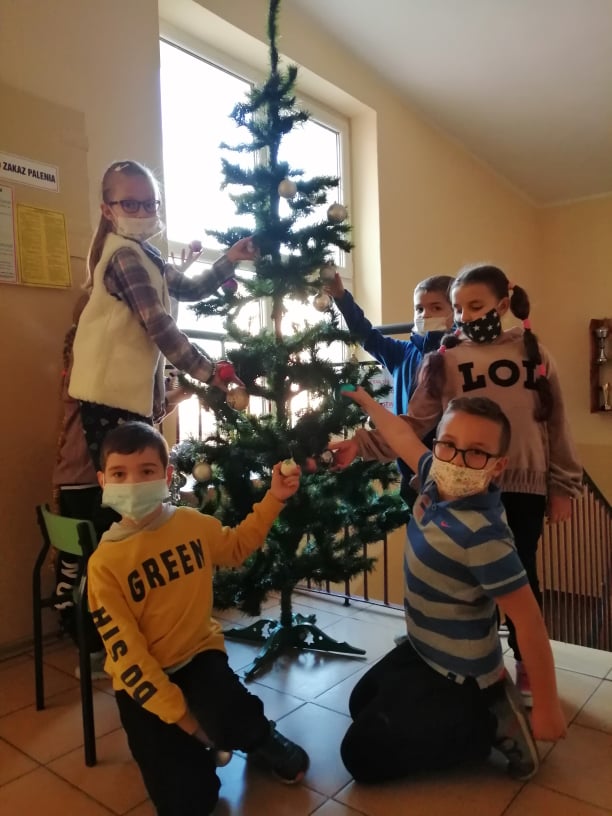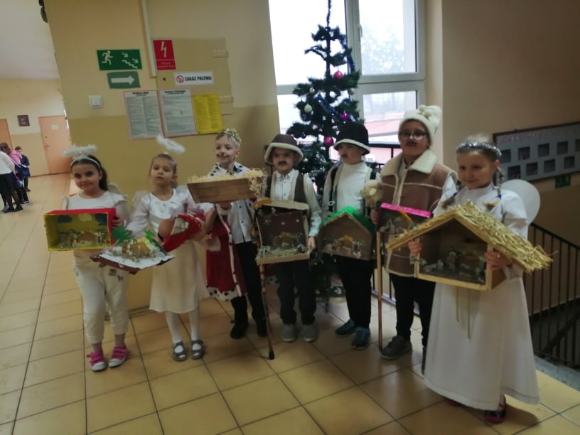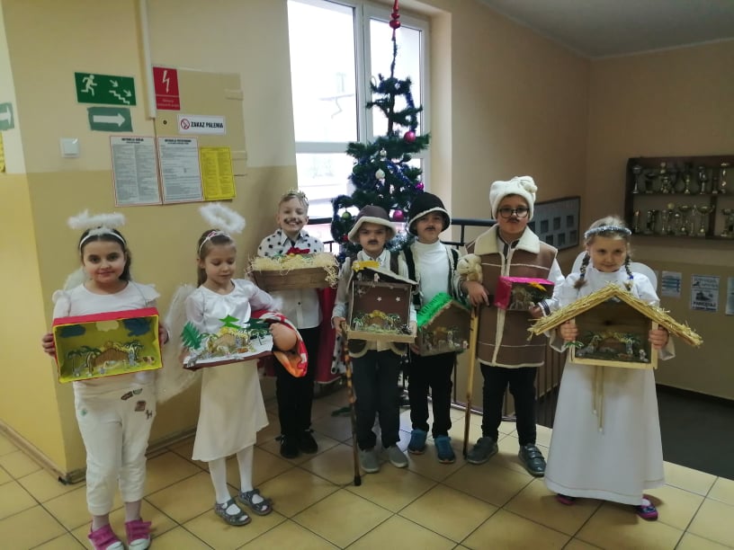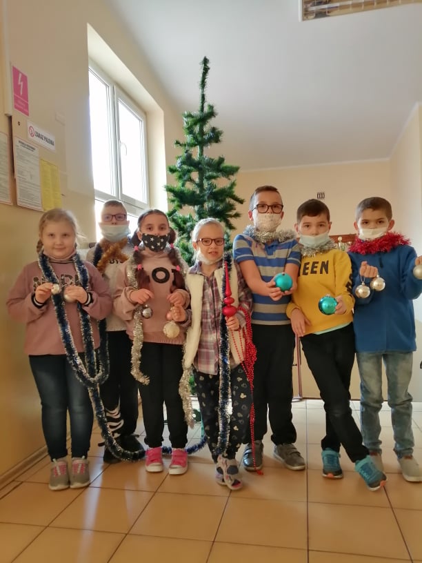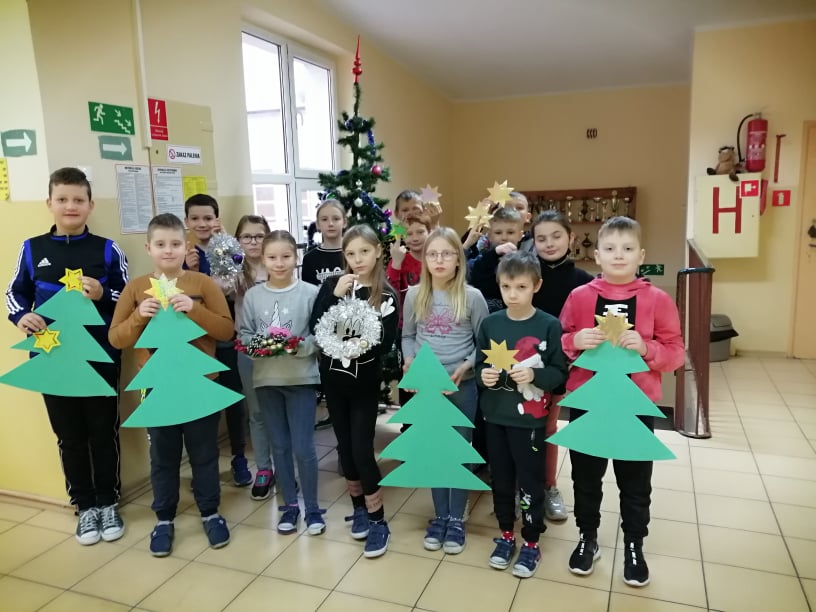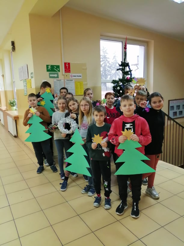 Od pierwszego tygodnia grudnia w naszej szkole ruszyły przygotowania do Świąt Bożego Narodzenia. Przybrały one formę mini projektu. Pierwszym zadaniem dla klas III-VIII było świąteczne udekorowanie miejsca nauki. Uczniowie prześcigali się w wycinaniu ozdób, łańcuchów i gwiazdek. (Dziękujemy za wyrozumiałość dla naszych pań sprzątających). Choinki i klasy znów zabłysły pomysłowymi ozdobami. Najmłodsi uczniowie z kl. I i II razem z rodzicami wykonali wspaniałe szopki Bożonarodzeniowe. Ekspozycja zdobiła klasy. Kolejny tydzień upływał w atmosferze klasowych mikołajek. Każda grupa uczniowska razem z wychowawcą zachowując reżim sanitarny realizowała swój pomysł na to miłe święto. Na uczniów czekały również słodkie upominki, zorganizowane przez niezastąpioną Radę Rodziców. Ponadto w klasach odbywały się próby śpiewania kolęd i pastorałek. W tym roku szkolnym nutą przewodnią były ludowe kolędy.