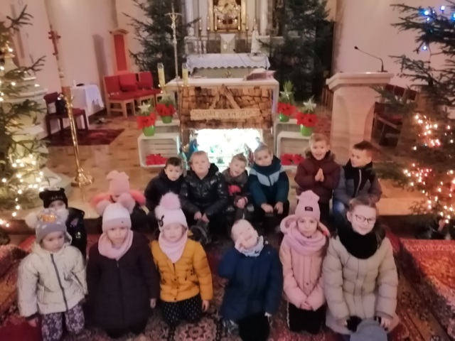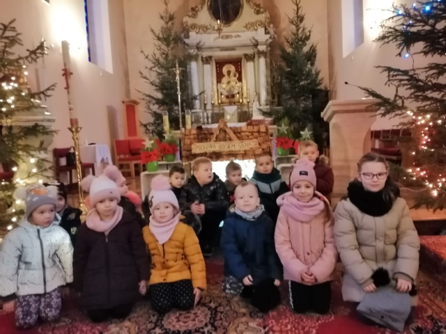 Dzięki uprzejmości ks. proboszcza Stanisława Kiermasza przedszkolaki kolędowały przy żłóbku w kościele parafialnym w Dzierzbinie, w dn. 5 stycznia br.