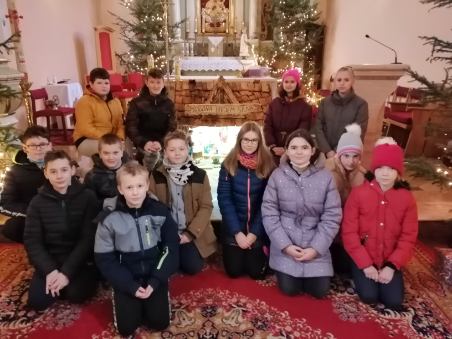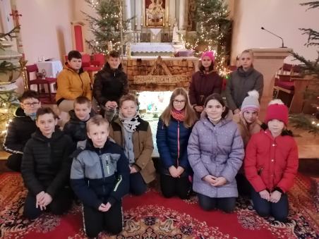 Pomimo obostrzeń związanych z Covid-19, zaśpiewaliśmy kolędy w kościele parafialnym w Dzierzbinie. W dniu 13 stycznia br., dzięki uprzejmości ks. Proboszcza Stanisława Kiermasza uczniowie kl. I- V mogli śpiewać kolędy przy żłobku. Uczniowie szybko zauważyli zmiany w Bożonarodzeniowej szopce. Parafianie, a więc i rodzice ustawili nowe figurki Św. Rodziny, pasterzy i Trzech Króli.