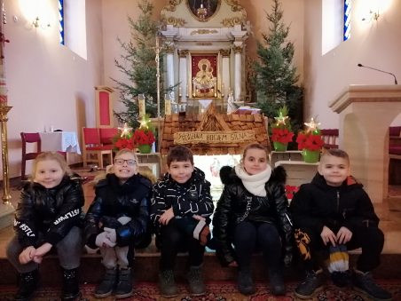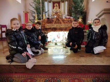 Dzieci zaśpiewały kolędy: „Dzisiaj w Betlejem” z gestami, kołysankę „Lulajże Jezuniu”, „Wśród nocnej ciszy”, a także kolędę „Pójdźmy wszyscy do stajenki”. Uczniowie z zaciekawieniem wysłuchali legendy o powstaniu słynnej kolędy „Cicha noc”, którą nucą dzieci na całym świecie.