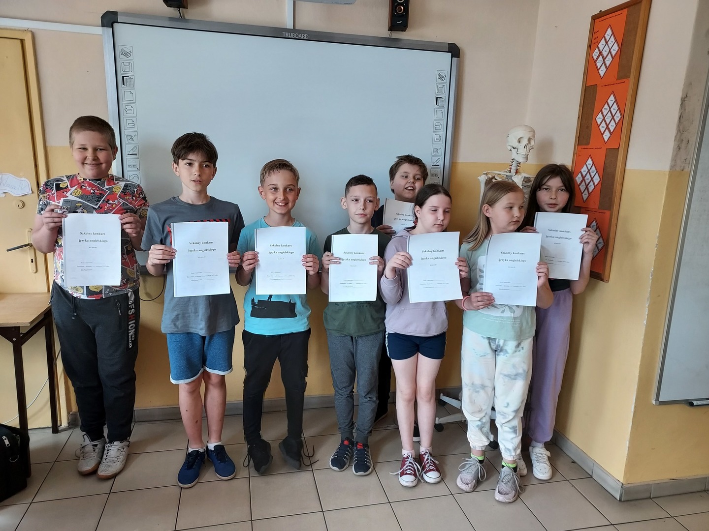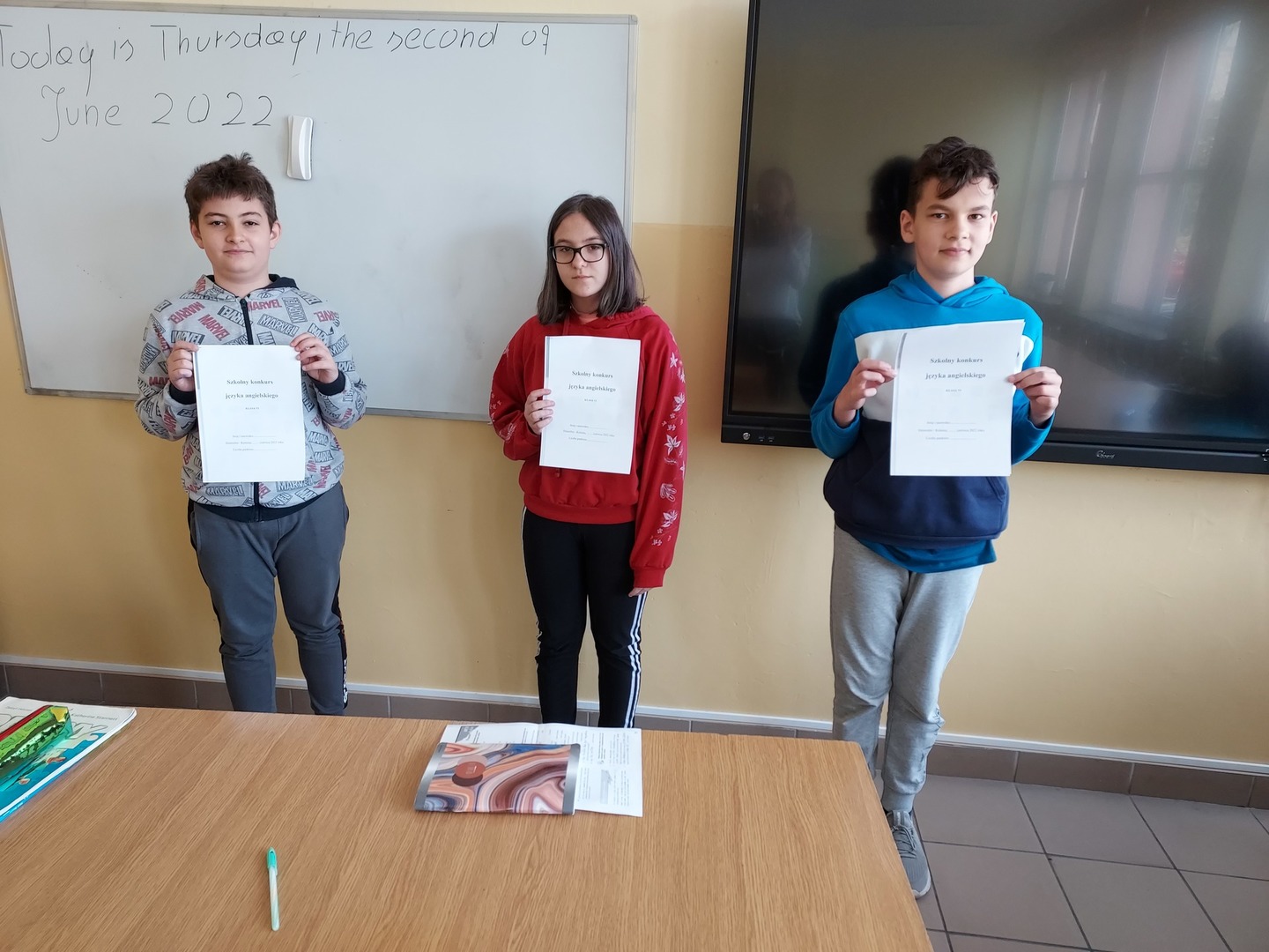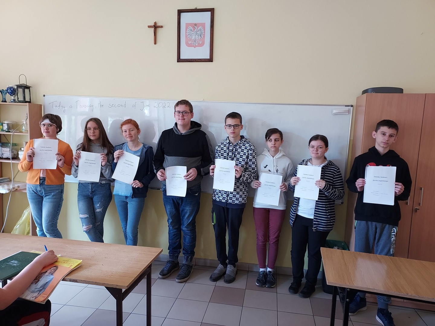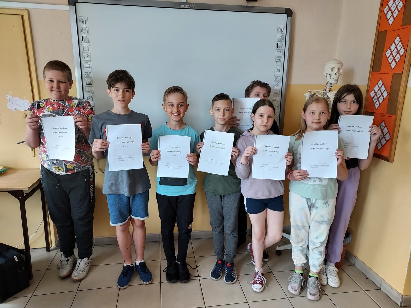 2 czerwca odbył się doroczny Szkolny Konkurs Języka Angielskiego mający na celu wyłonienie Szkolnych Mistrzów Języka Angielskiego na poziomie każdej z klas drugiego etapu edukacyjnego, tj. klasy IV, V, VI, VII i VIII. W konkursie uczestniczyło łącznie 36 uczniów: 9 czwartoklasistów, 8 piątoklasistów, 3 szóstoklasistów, 8 siódmoklasistów i 8 ósmoklasistów. Każda z klas pisała test opracowany przez nauczyciela, zawierający treści omawiane w bieżącym roku szkolnym. Laureaci konkursu na poziomie każdej z klas zostaną ogłoszeni 22 czerwca. Otrzymają dyplomy oraz nagrody rzeczowe ufundowane przez Wydawnictwo Macmillan.