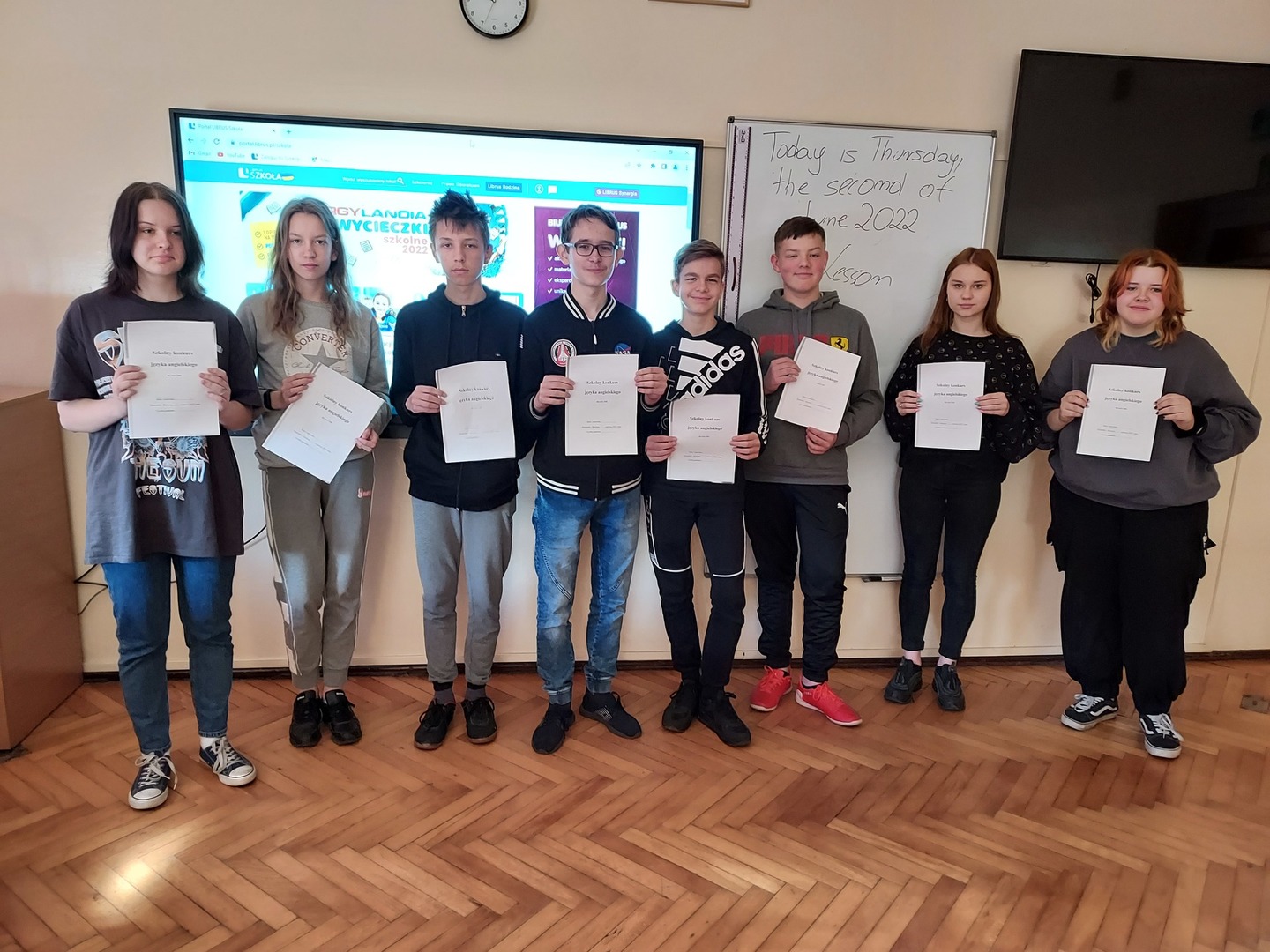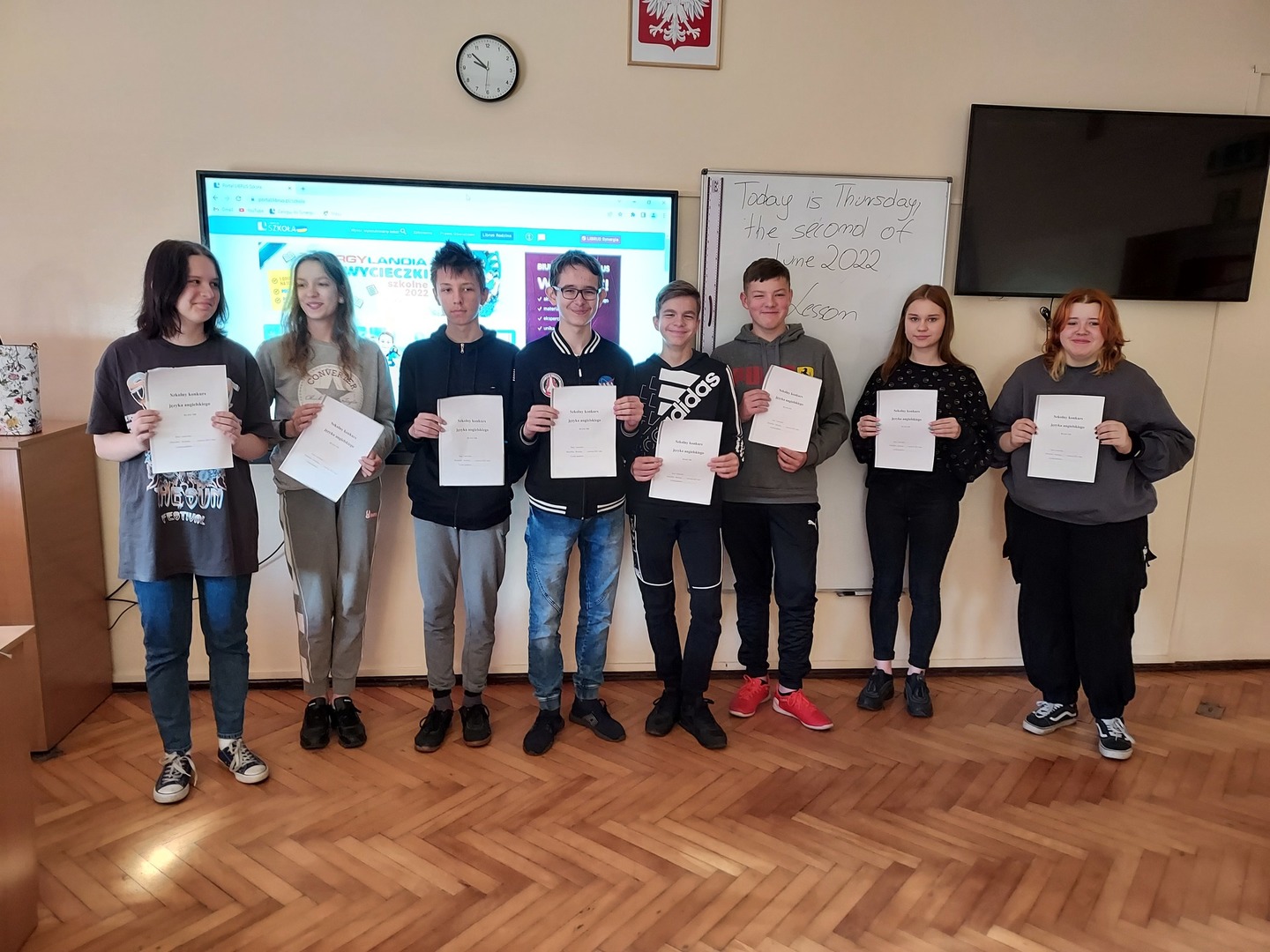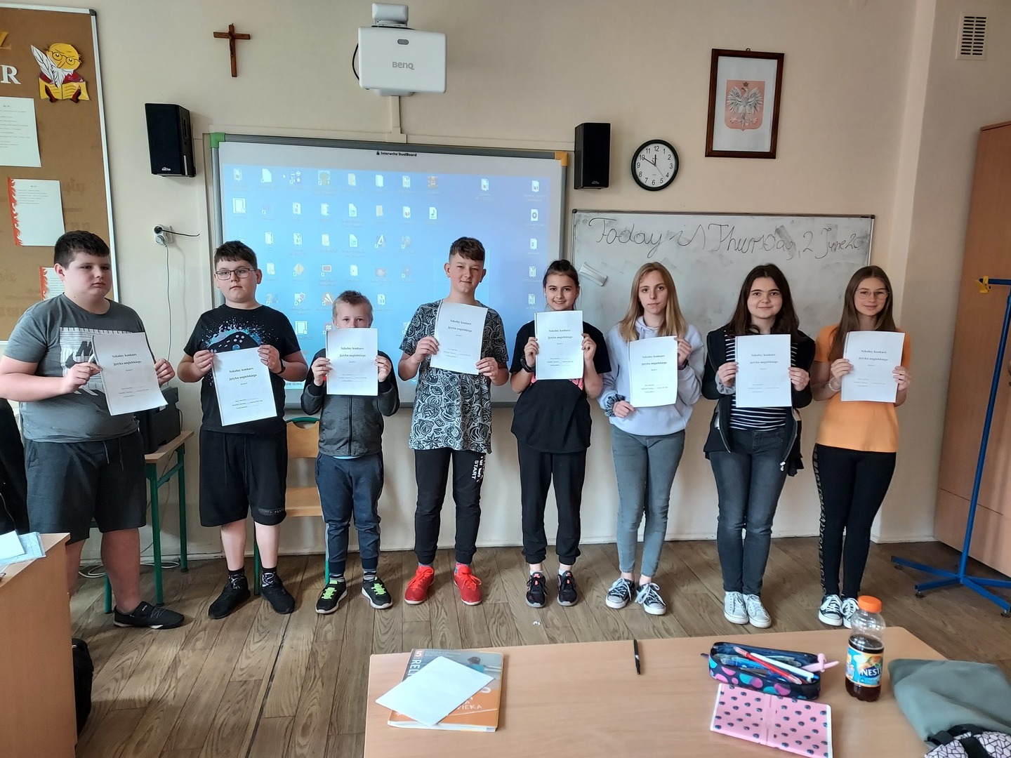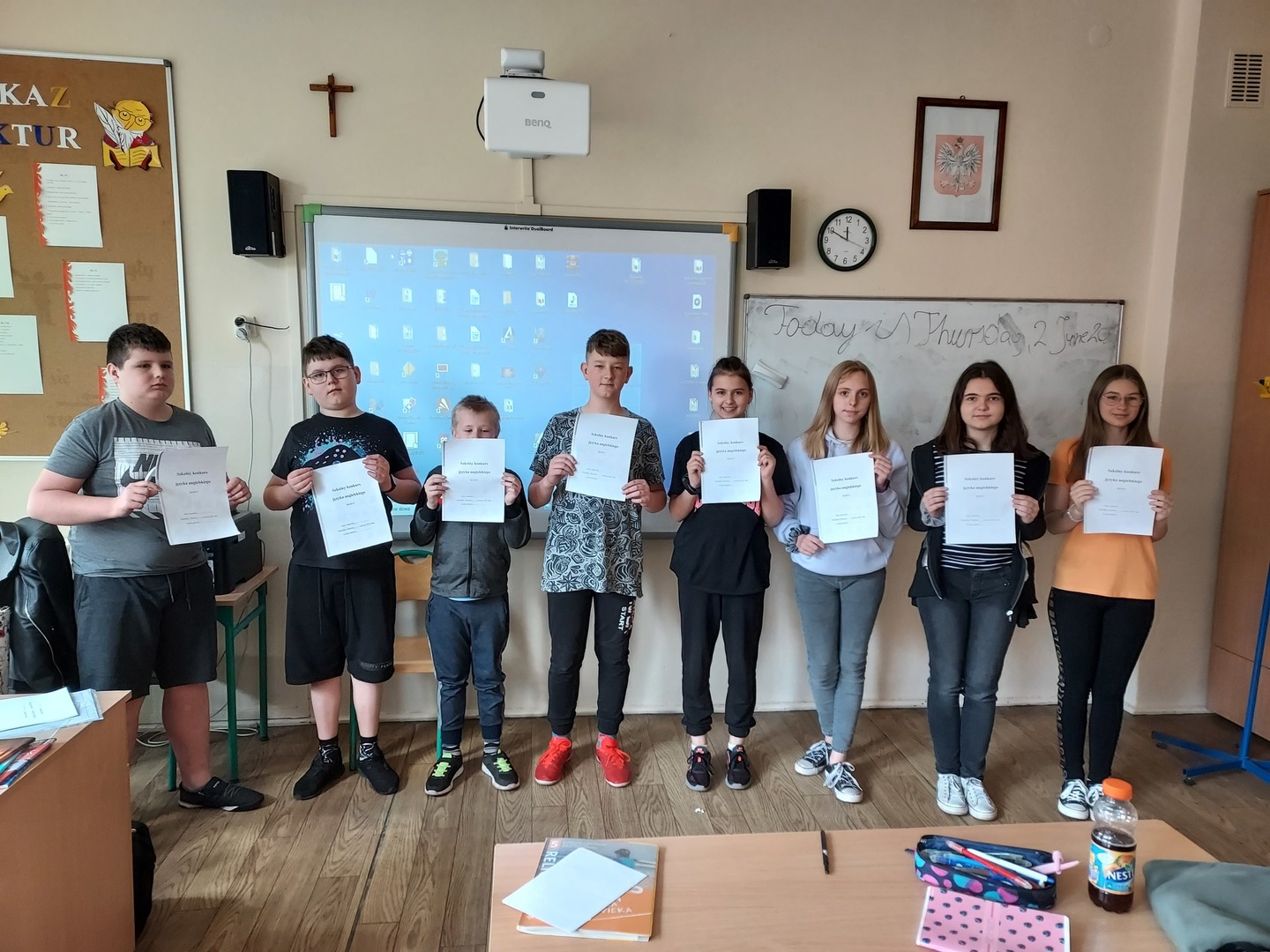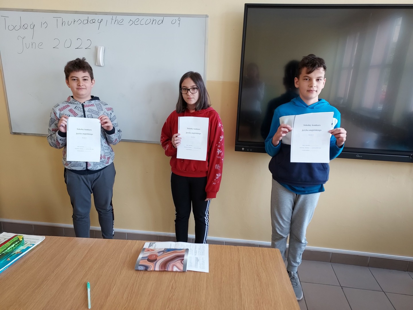 2 czerwca odbył się doroczny Szkolny Konkurs Języka Angielskiego mający na celu wyłonienie Szkolnych Mistrzów Języka Angielskiego na poziomie każdej z klas drugiego etapu edukacyjnego, tj. klasy IV, V, VI, VII i VIII. W konkursie uczestniczyło łącznie 36 uczniów: 9 czwartoklasistów, 8 piątoklasistów, 3 szóstoklasistów, 8 siódmoklasistów i 8 ósmoklasistów. Każda z klas pisała test opracowany przez nauczyciela, zawierający treści omawiane w bieżącym roku szkolnym. Laureaci konkursu na poziomie każdej z klas zostaną ogłoszeni 22 czerwca. Otrzymają dyplomy oraz nagrody rzeczowe ufundowane przez Wydawnictwo Macmillan.