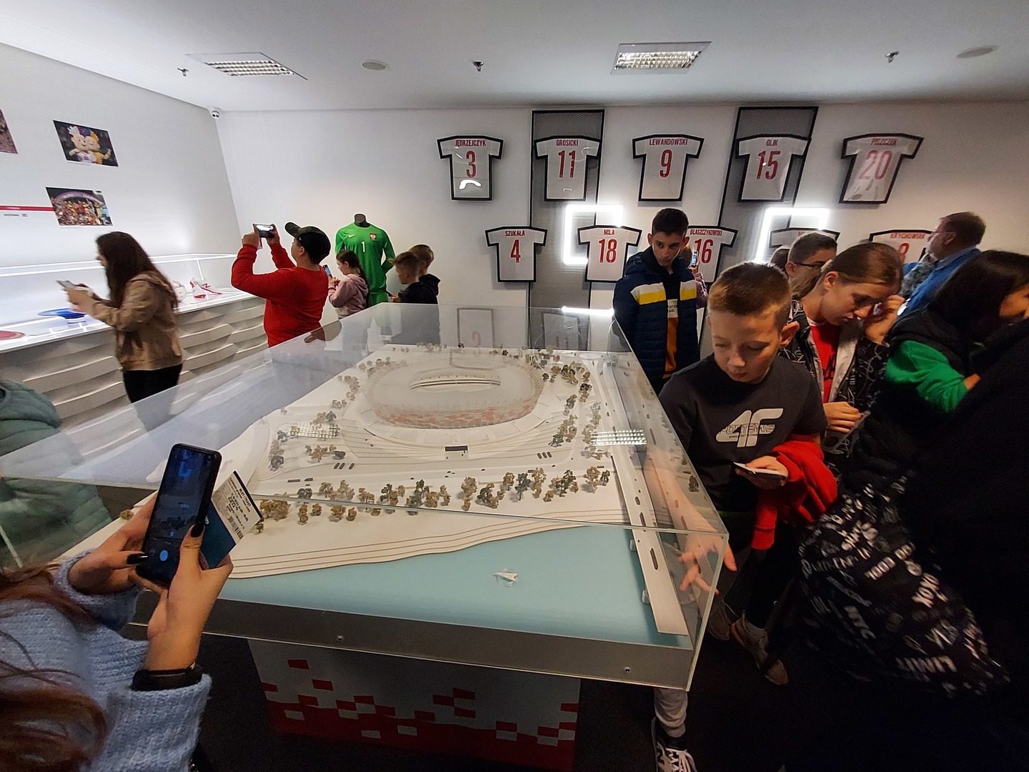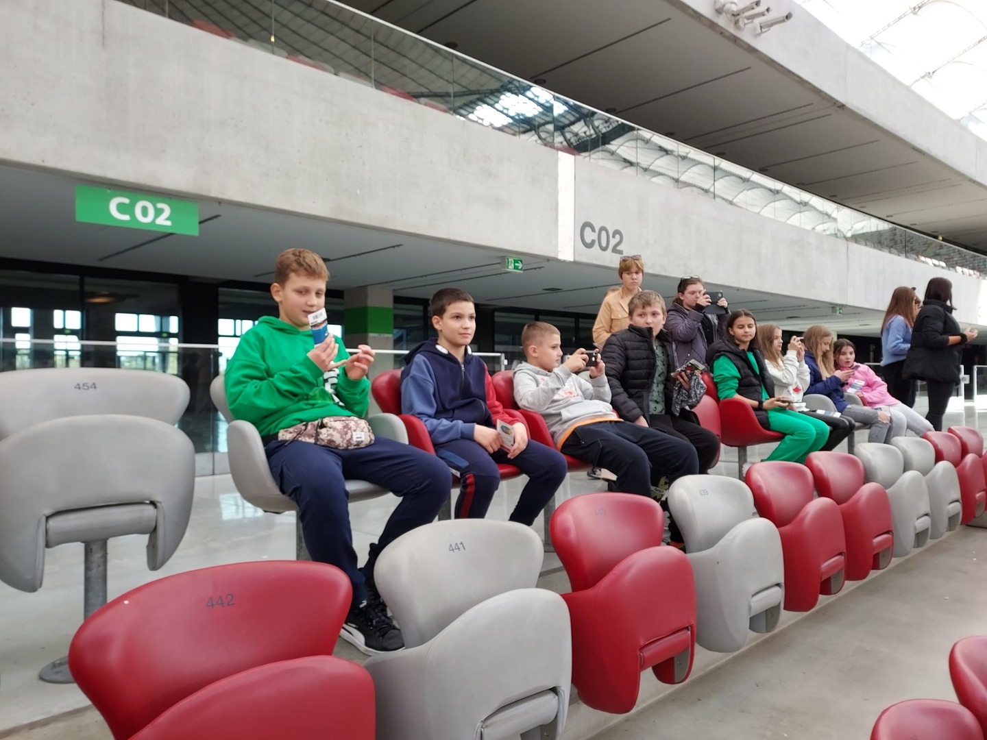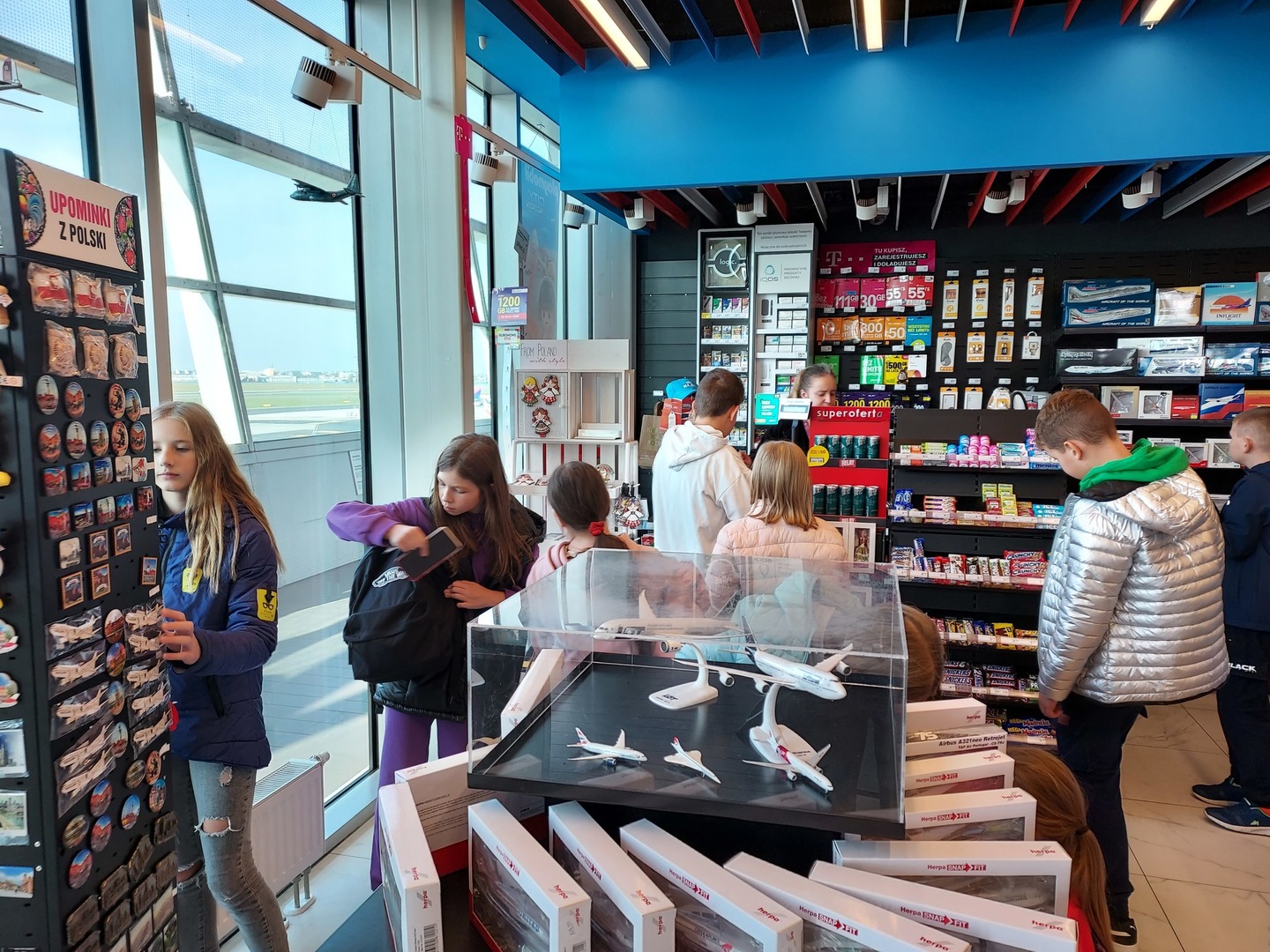 Zwiedzanie Warszawy rozpoczęliśmy od wizyty w Porcie Lotniczym im. Fryderyka Chopina.. Tam obserwowaliśmy ruch lotniczy na pasach startowych. Ponadto obejrzeliśmy halę przylotów i odlotów. Następnie pojechaliśmy na Stadion Narodowy, gdzie niezapomnianą atrakcją dla uczniów okazało się przejście trasą piłkarską. Ostatnim punktem programu w pierwszym dniu wycieczki była wizyta w Centrum Nauki Kopernik. Uczniom bardzo spodobało się to miejsce, w którym multimedia, interaktywne instalacje i technologie pomagały im poznać prawa fizyki.