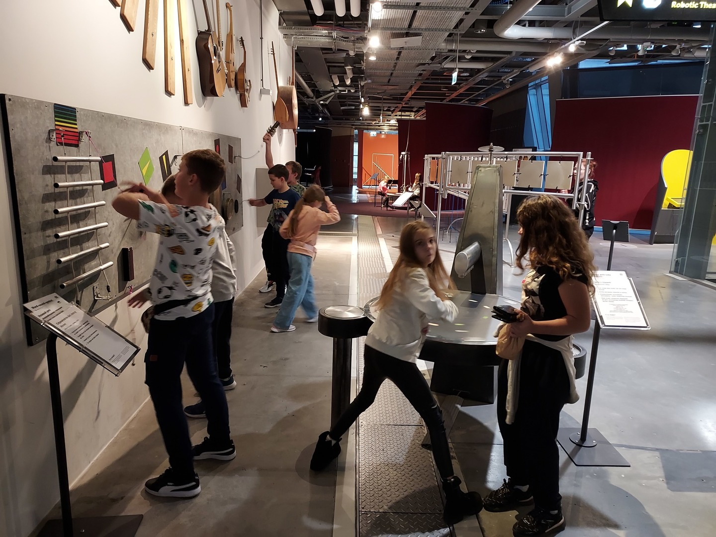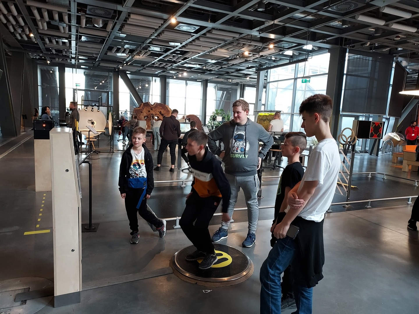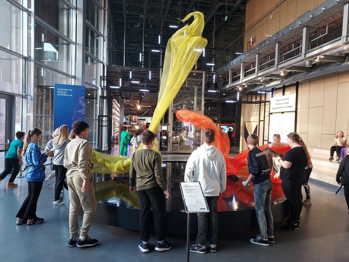 Zwiedzanie Warszawy rozpoczęliśmy od wizyty w Porcie Lotniczym im. Fryderyka Chopina.. Tam obserwowaliśmy ruch lotniczy na pasach startowych. Ponadto obejrzeliśmy halę przylotów i odlotów. Następnie pojechaliśmy na Stadion Narodowy, gdzie niezapomnianą atrakcją dla uczniów okazało się przejście trasą piłkarską. Ostatnim punktem programu w pierwszym dniu wycieczki była wizyta w Centrum Nauki Kopernik. Uczniom bardzo spodobało się to miejsce, w którym multimedia, interaktywne instalacje i technologie pomagały im poznać prawa fizyki.