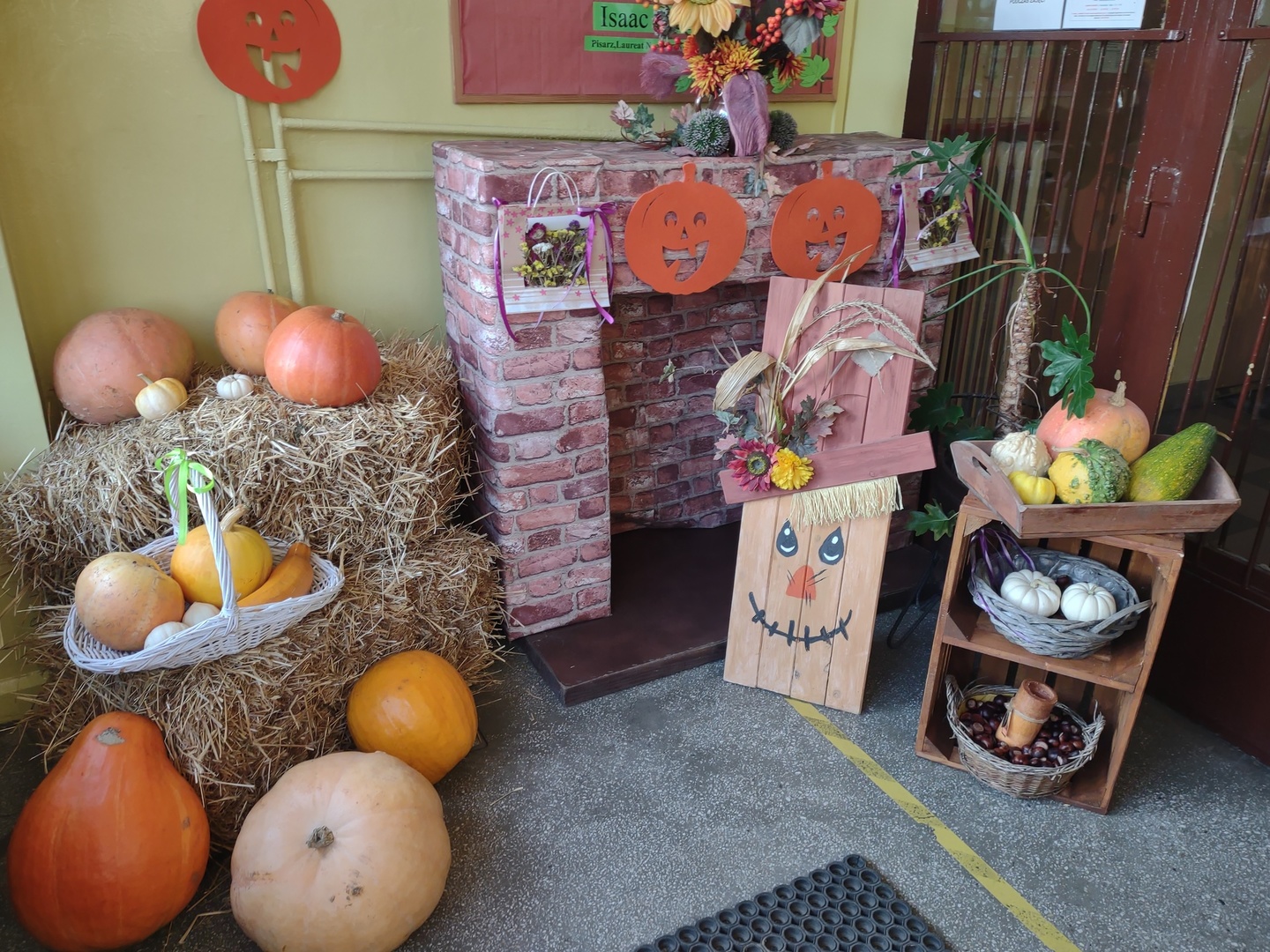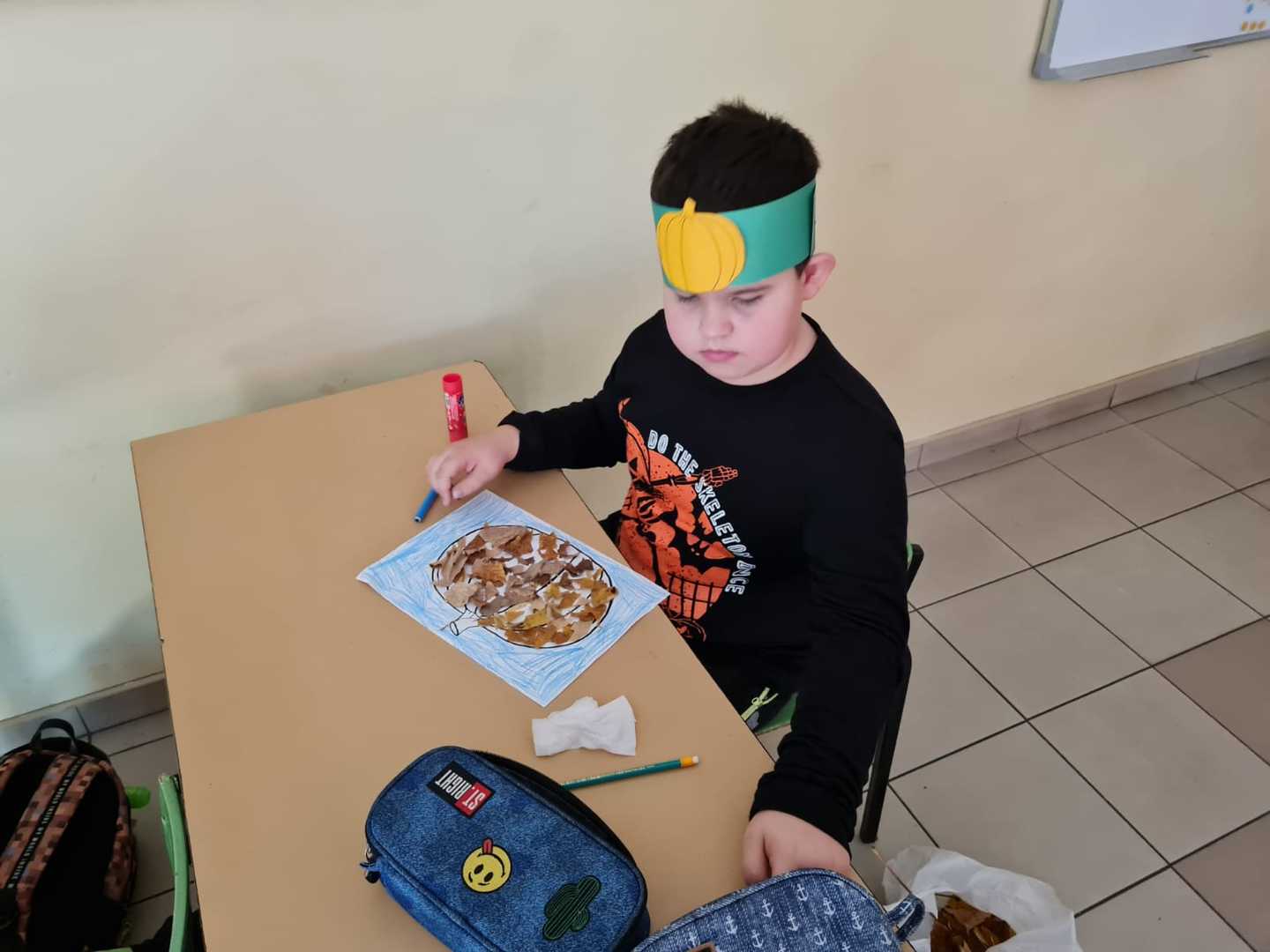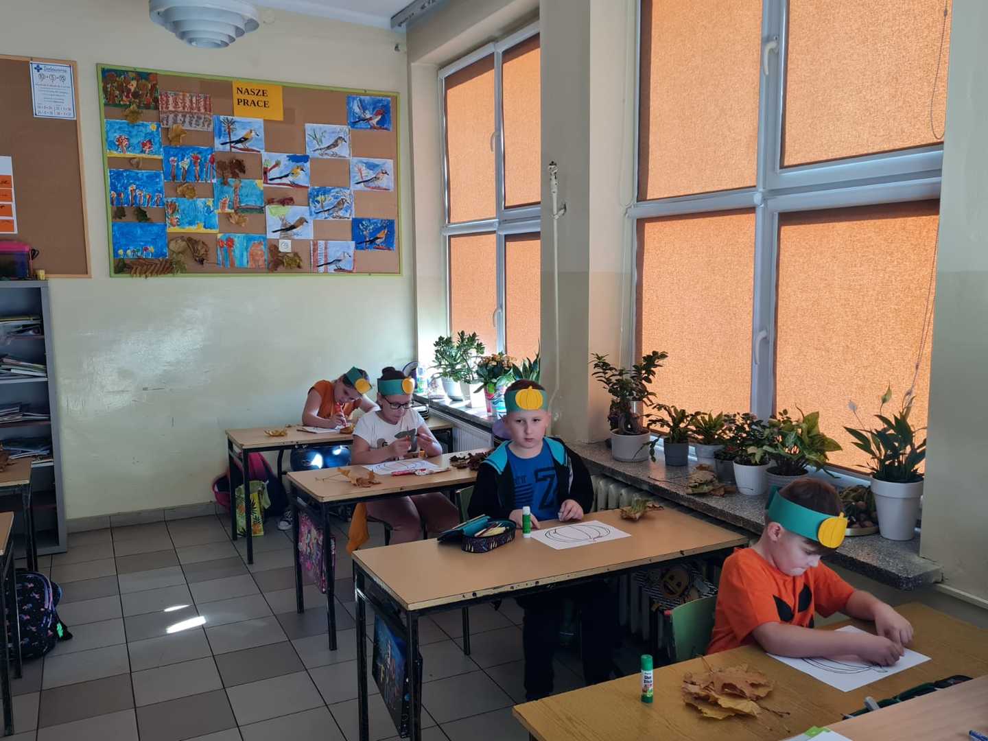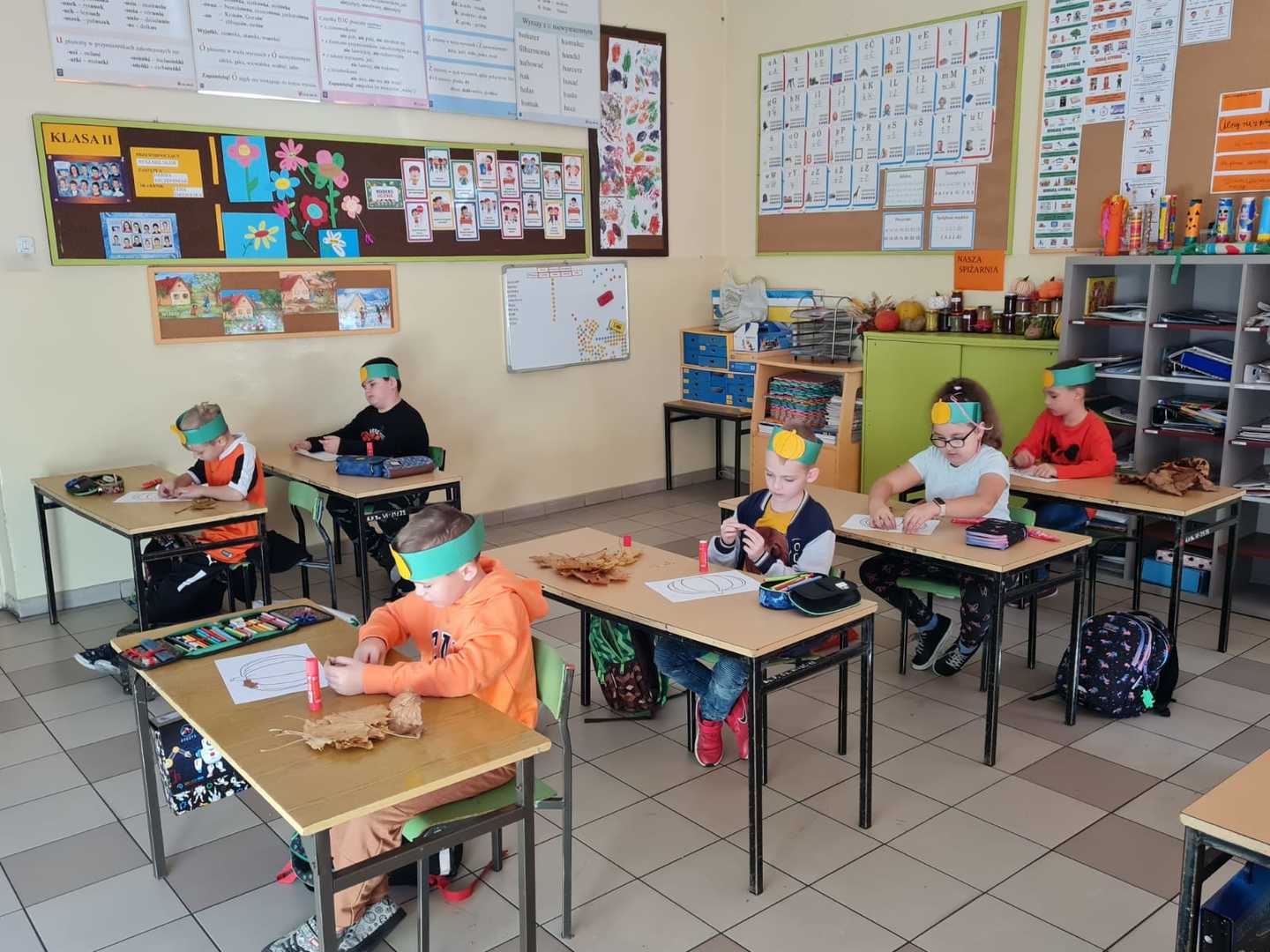 z klas wykonała dyniowe prace plastyczne. Dzieci chętnie korzystały z dyniowej fotobudki