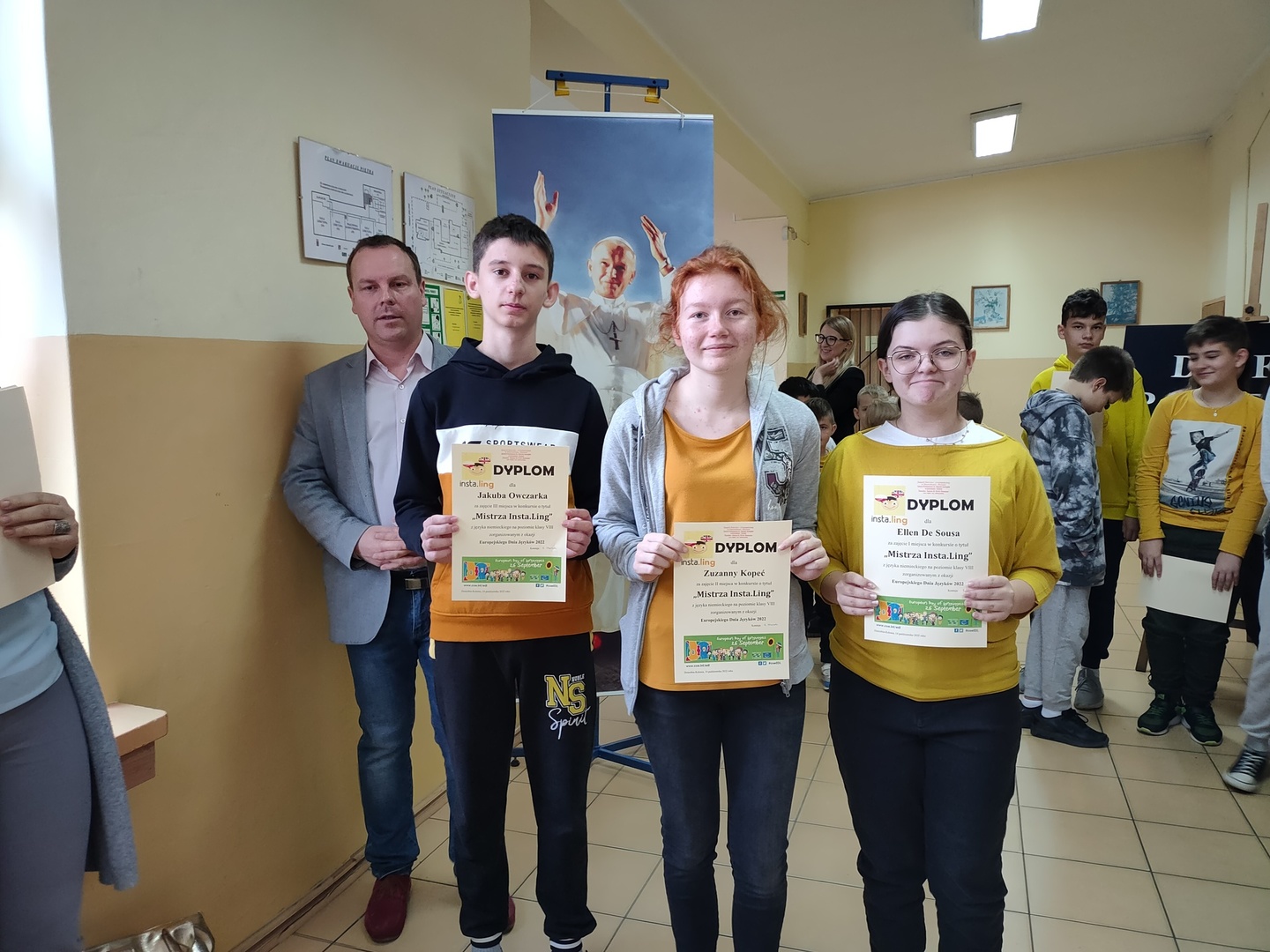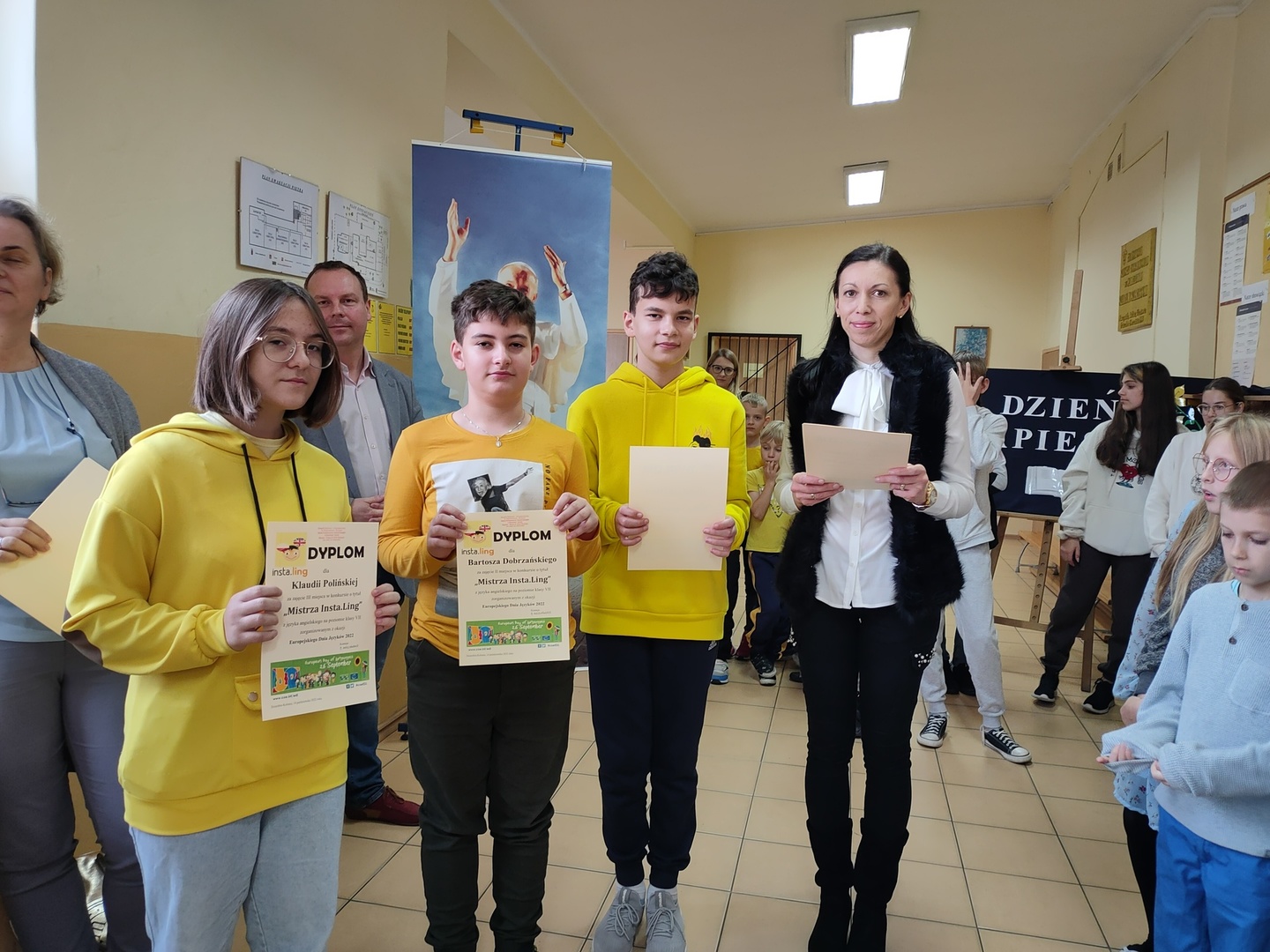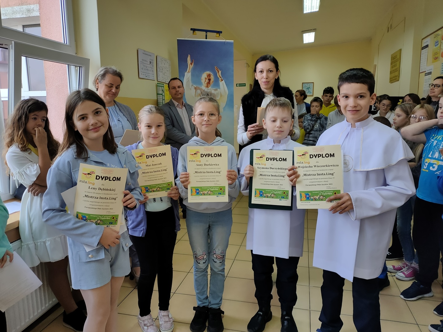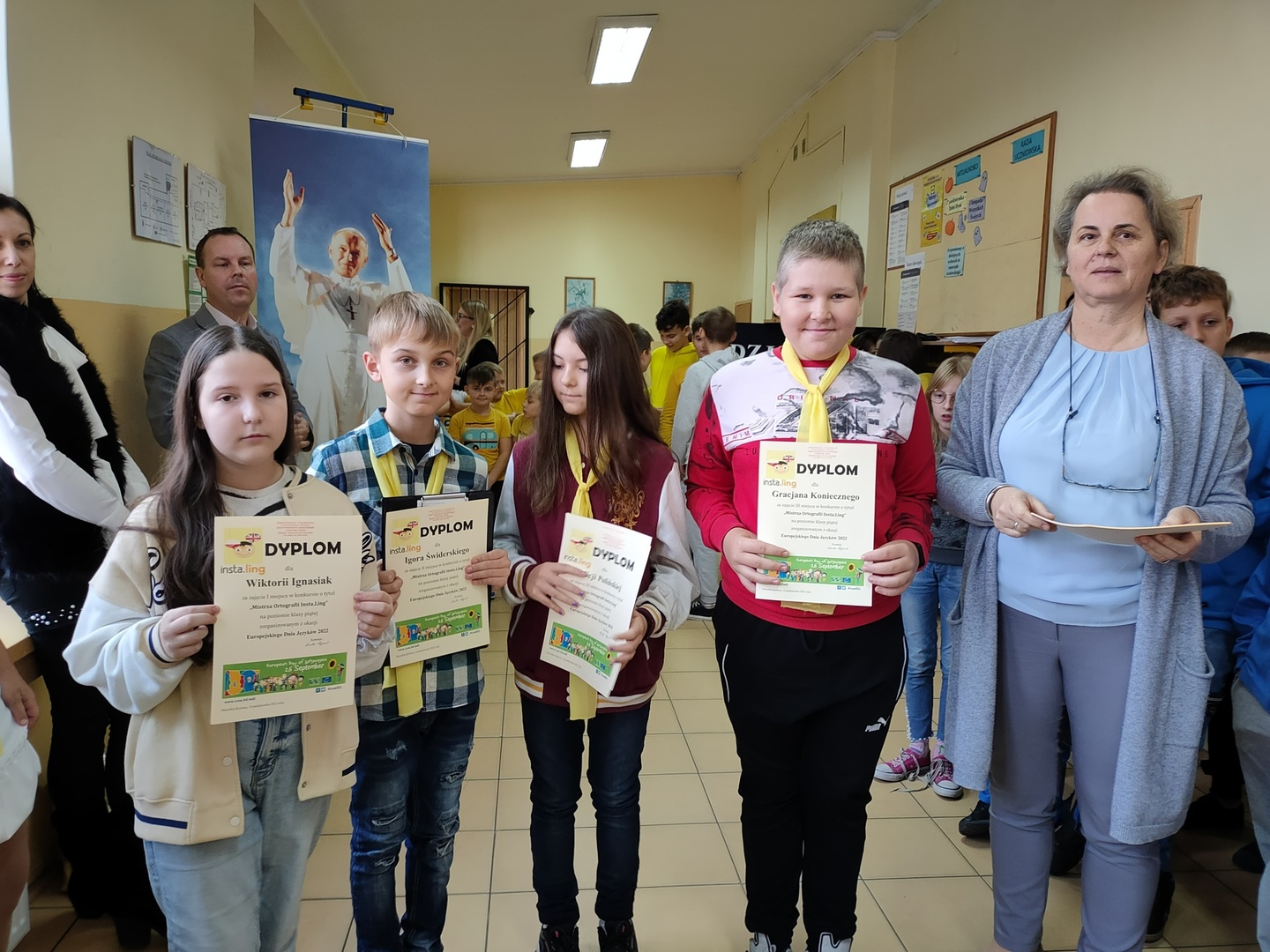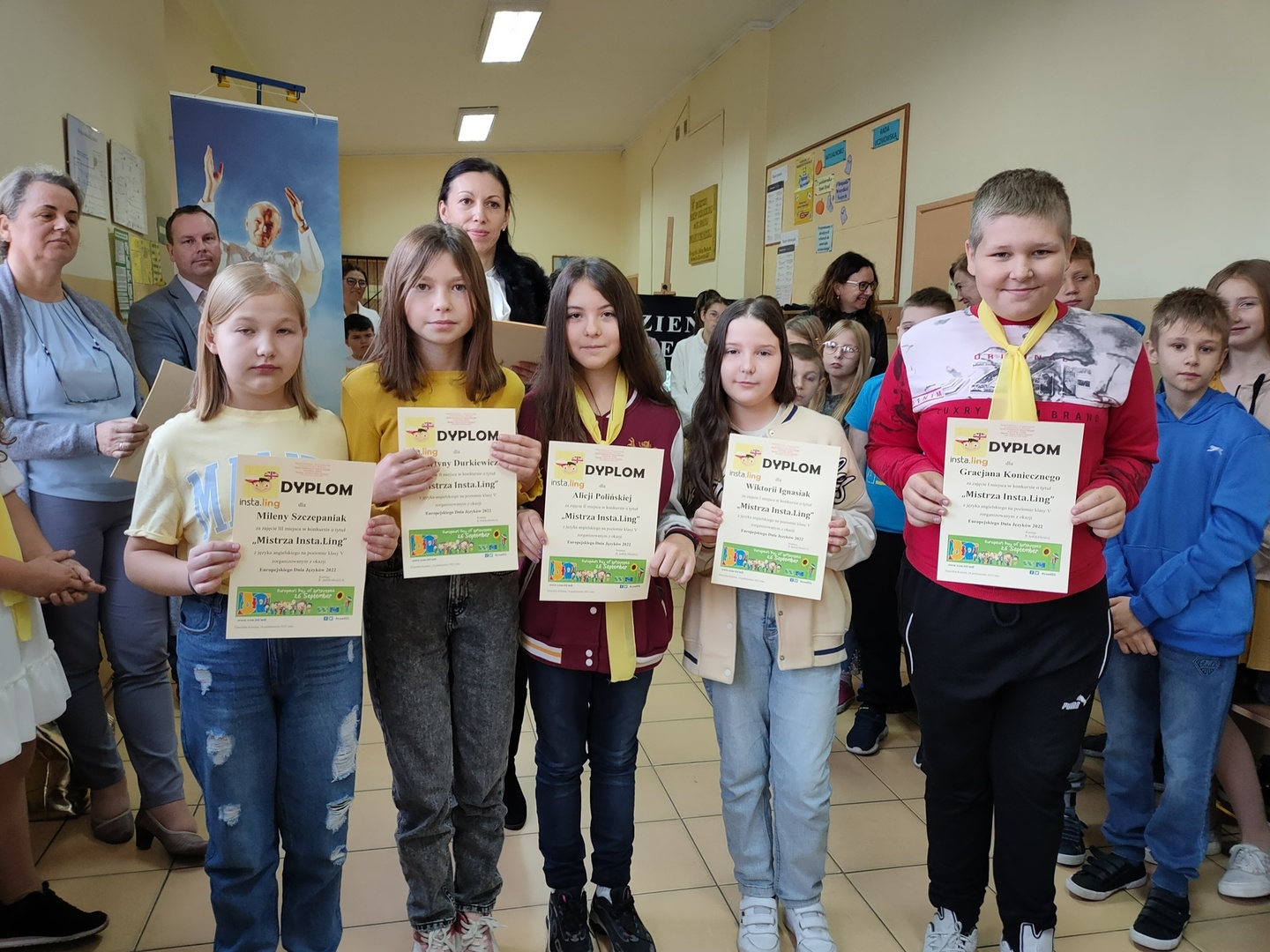 Obchody Europejskiego Dnia Języków składały się z dwóch części. W pierwszej uczniowie klas II-VIII rywalizowali o tytuł Mistrza Insta.Ling z Języka Angielskiego; klas IV-VIII o tytuł Mistrza Insta.Ling Ortografii Polskiej, a uczniowie kl. VII-VIII o tytuł Mistrza Insta.Ling z Języka Niemieckiego. W drugiej części obchodów Europejskiego Dnia Języków wszyscy uczniowie losowali karteczki ze zwrotami grzecznościowymi zapisanymi w językach państw należących do Unii Europejskiej i je odczytywali. Następnie wybierali słowa będące tłumaczeniem polskiego zwrotu „Dzień dobry” i zapisywali go na wyciętych wcześniej łapkach. Po zakończeniu tej czynności uczniowie kolorowali łapkę w taki sposób, by przypominała ona flagę wylosowanego wcześniej państwa. Wyniki konkursów na Mistrza Insta.Ling zostały ogłoszone 26 października podczas uroczystości z okazji Dnia Papieskiego.