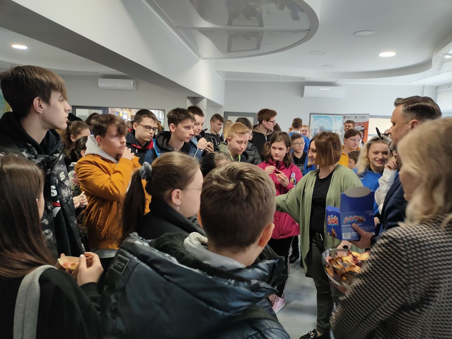 W dniu 1 kwietnia 2023 roku uczniowie klasy siódmej i ósmej naszej szkoły wraz z opiekunami : p. Mirosławem Dymkowskim i p. Mileną Musiałowską oraz z kolegami i koleżankami ze szkoły w Mycielinie i Korzeniewie wybrali się na „Drzwi otwarte” do kaliskich szkół ponadpodstawowych. Grupa licząca 26 osób zwiedziła 6 szkół ponadpodstawowych w Kaliszu, które z wielkim entuzjazmem witały naszych uczniów w swoich progach. Zwiedziliśmy 6 szkół: