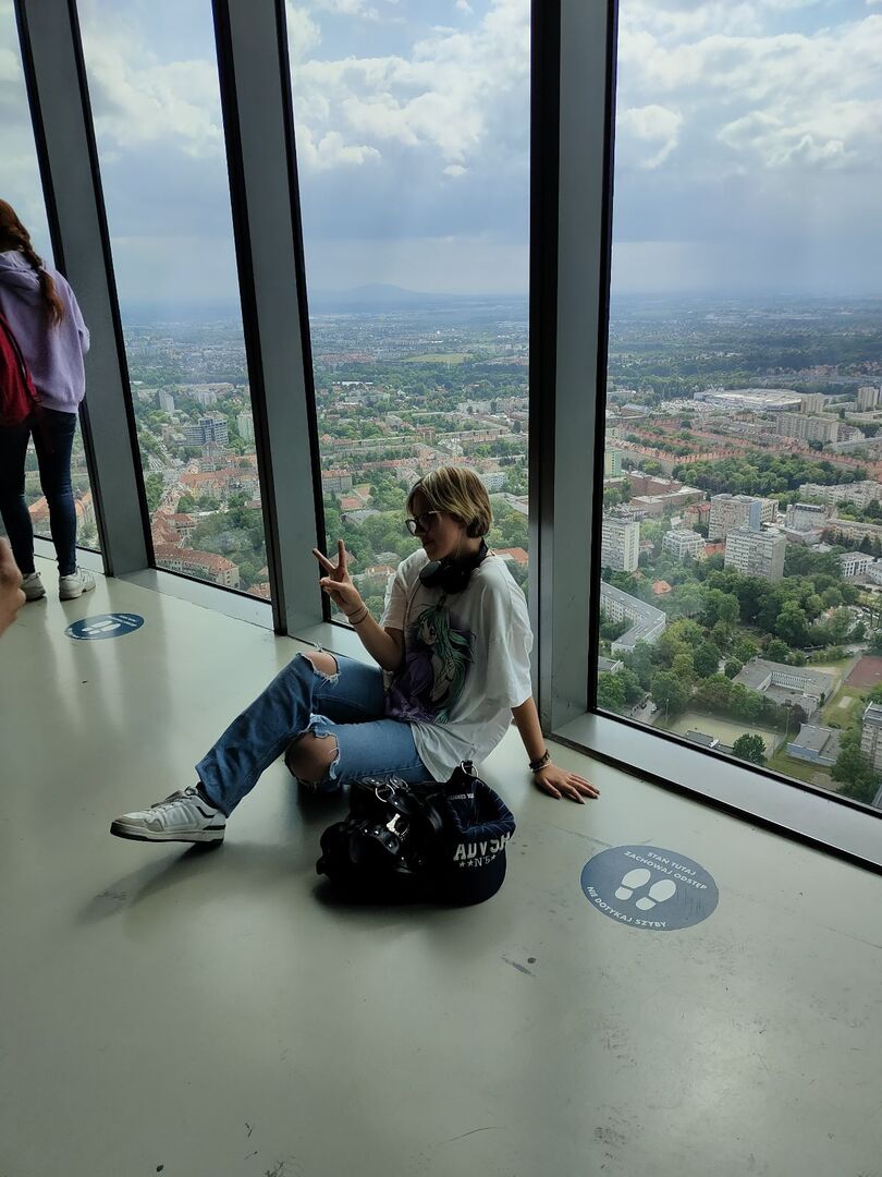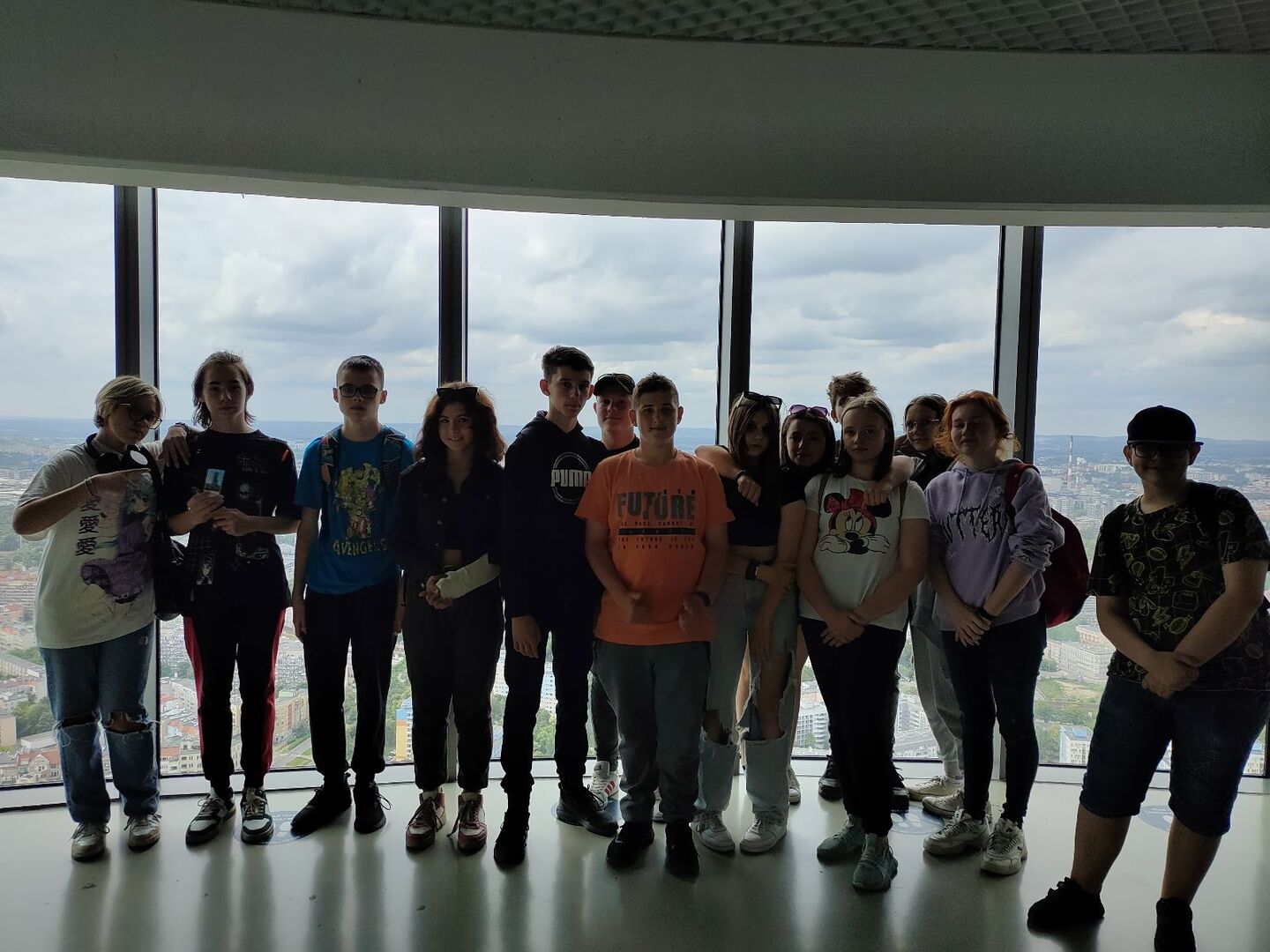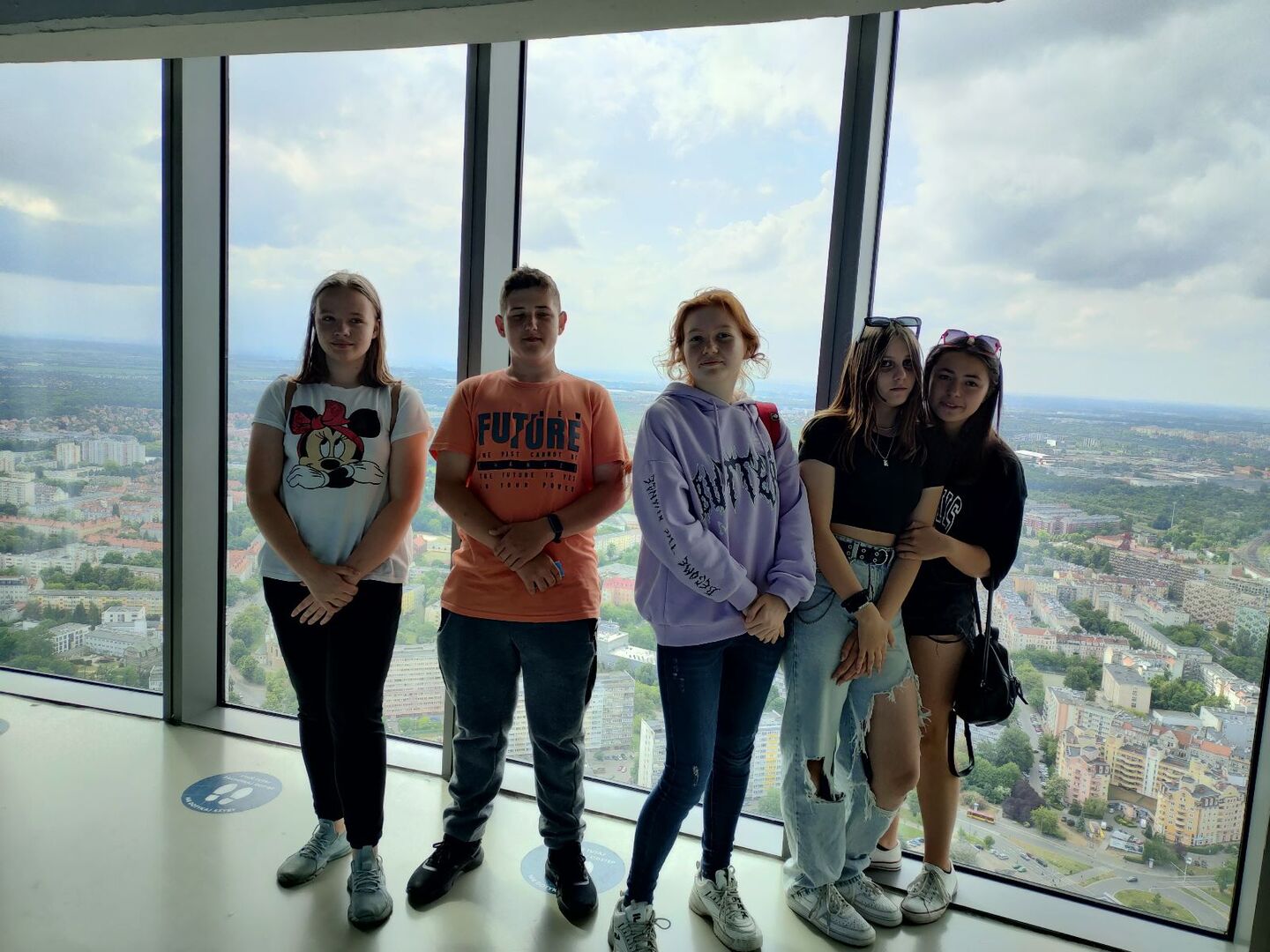 Następnie udaliśmy się do kompleksu budynków SKY TOWER. 50 sekund windą i byliśmy na 49 piętrze wieży SKY TOWER - najwyżej położonym punkcie widokowym w Polsce. Widok zapierał dech w piersiach, ogromne szyby, a za nimi niezwykła panorama miasta. Największe zabytki miały zaledwie dwa centymetry.