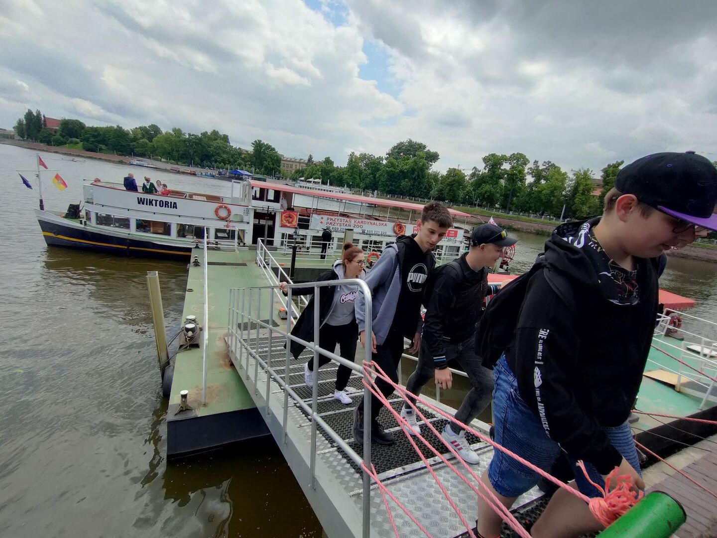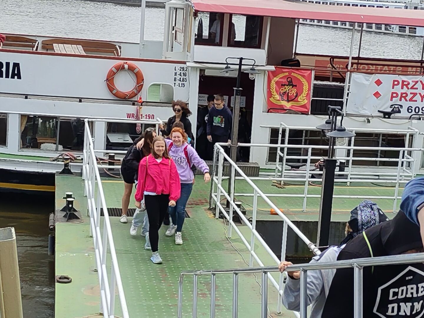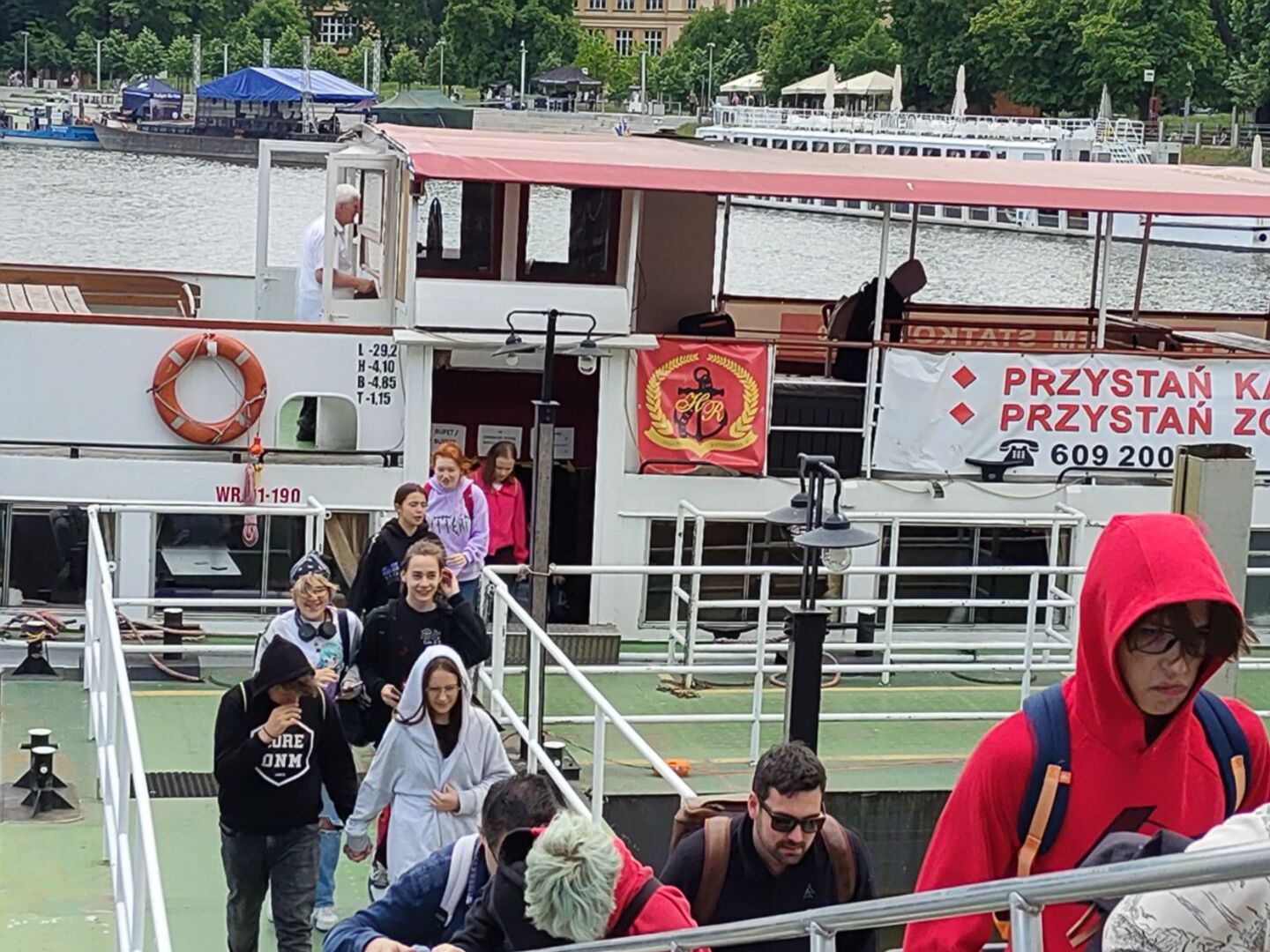 Uczniowie pod opieką nauczycieli Mirosława Dymkowskiego, Mileny Musiałowskiej rozpoczęli zwiedzanie miasta od rejsu statkiem po rzece Odrze, w trakcie którego podziwialiśmy panoramę Wrocławia.