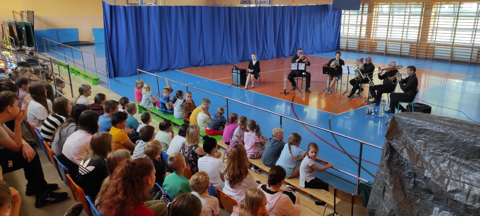 11 września 2023 r. Dziś odwiedzili nas muzycy Filharmonii Kaliskiej. Wysłuchaliśmy wielu utworów muzycznych na najwyższym poziomie, a także poznaliśmy nazwy, brzmienie i budowę instrumentów dętych blaszanych.