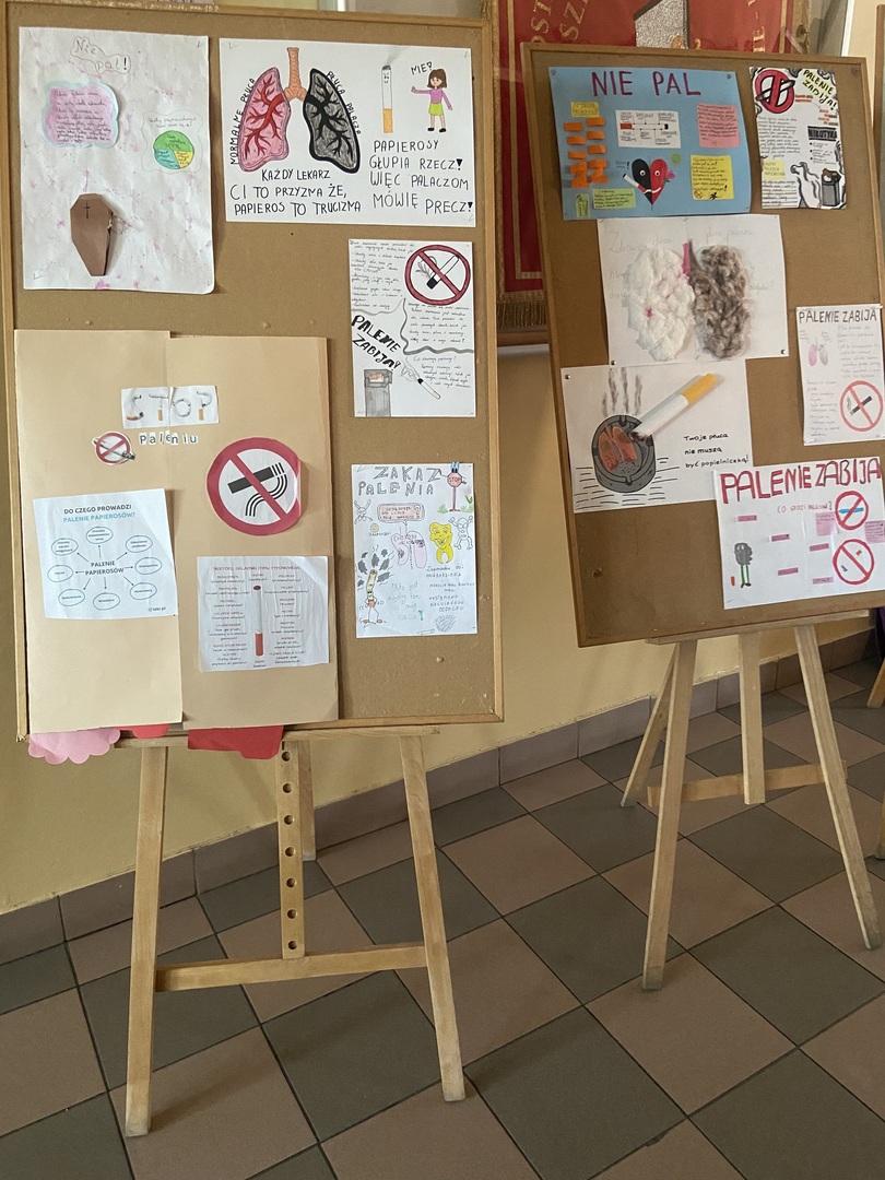 W dniu 16 lisopada 2023 roku, w ramach Krajowego Programu Ograniczania Zdrowotnych Następstw Palenia Tytoniu w Polsce uczniowie wykonali prace plastyczne związane z profilaktyką i skutkami palenia tytoniu. Prace uczniów zaprezentowane był w szkole w "Dniu Światowego Rzucania Palenia". Prace uczniów zostały wykonanne w ramach działalności SK PCK - koordynator Remigiusz Wieczorek.