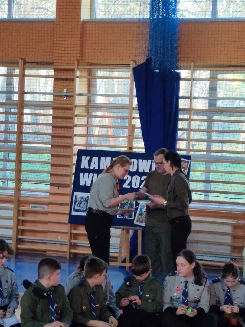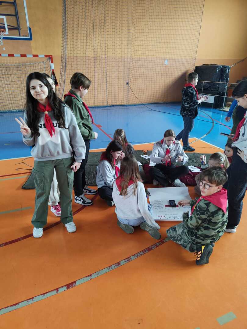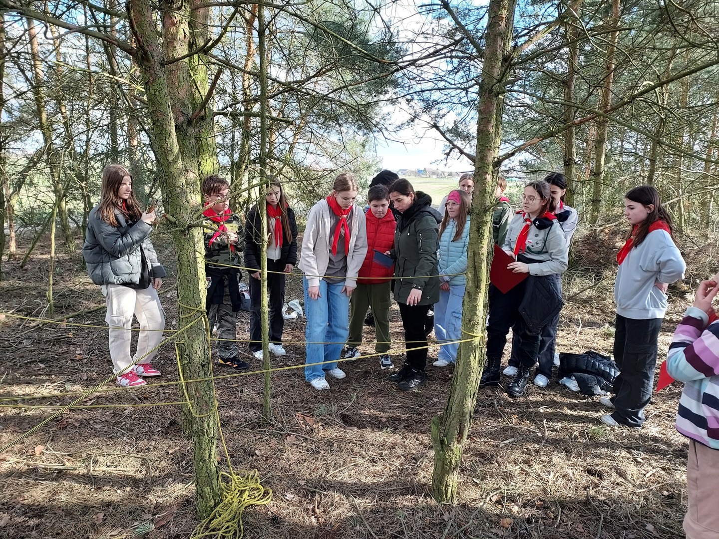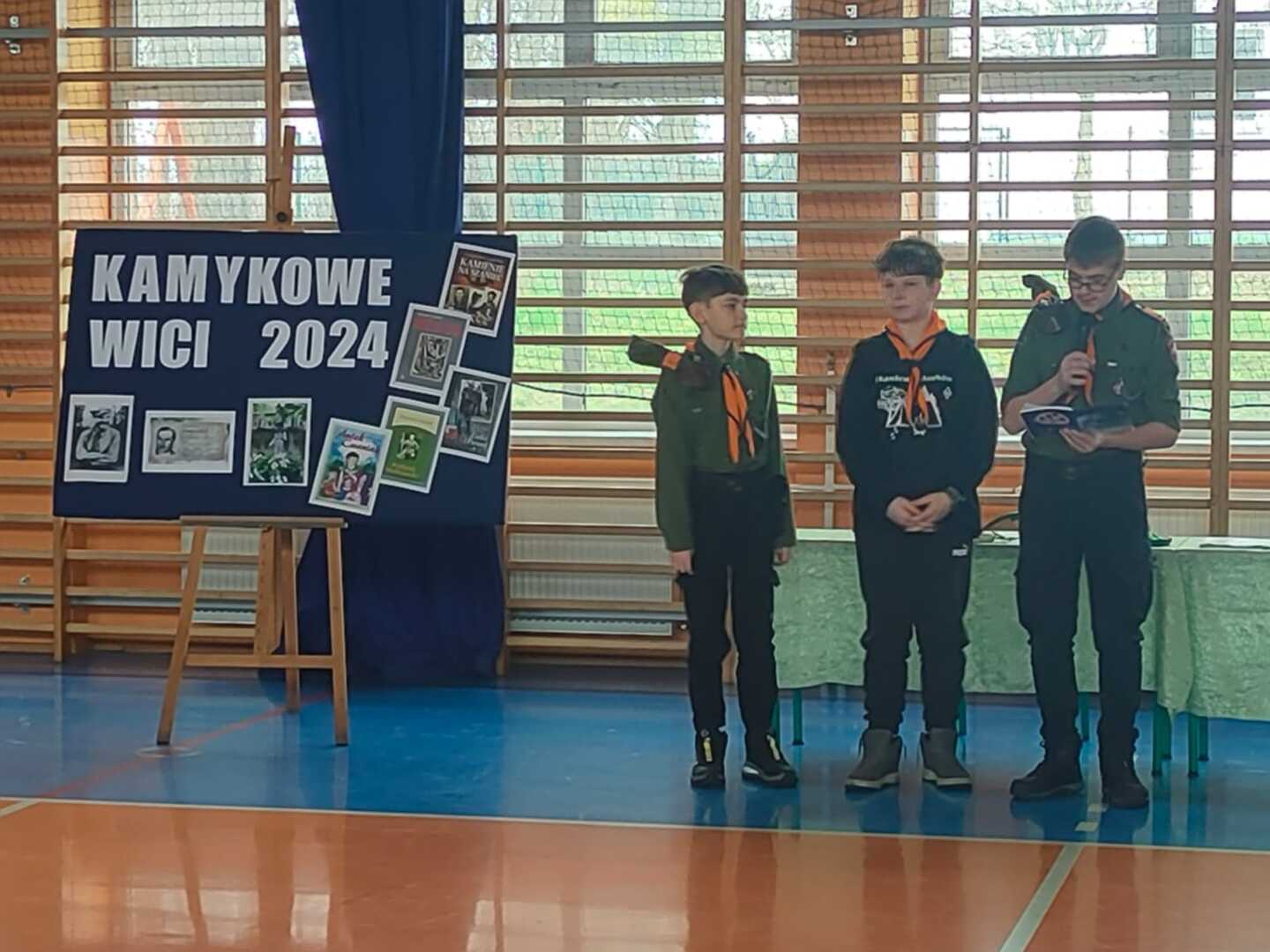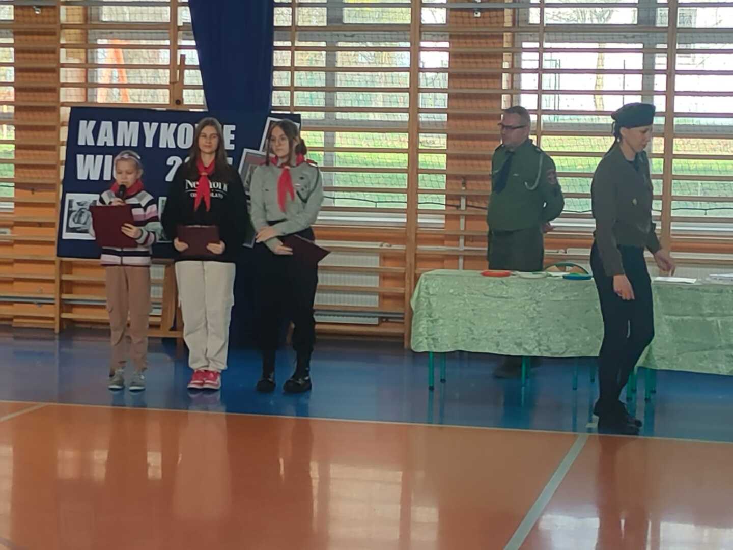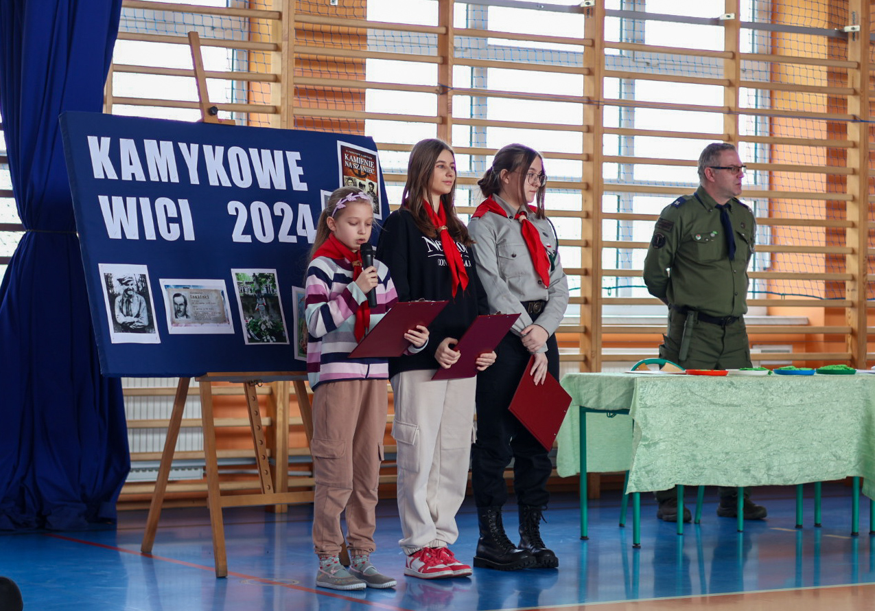 W sobotę 16 marca harcerze z drużyn działających na terenie powiatu kaliskiego spotkali się w Dzierzbinie-Kolonii, aby uczcić kolejną rocznicę śmierci swojego patrona - hm. Aleksandra Kamińskiego. Wybór Szkoły Podstawowej im. Szarych Szeregów na obchody tej uroczystości nie był przypadkowy. Szare Szeregi to bardzo ważny rozdział w życiu Druha „Kamyka”. To właśnie on był inicjatorem powstania harcerstwa podziemnego, współtwórcą i jednym z dowódców Szarych Szeregów. Uroczystość rozpoczął apel przy tablicy pamiątkowej poświęconej Szarym Szeregom, podczas którego Dyrektor Zespołu Szkolno-Przedszkolnego w Dzierzbinie-Kolonii powitał przybyłych harcerzy i gości, Zastępca Komendanta Hufca ZHP Powiatu Kaliskiego odczytał rozkaz dzienny, a Komendantka rajdu wprowadziła zebranych w tematykę spotkania i zapoznała ze szczegółowym harmonogramem obchodów „Kamykowych Wici”. Na zakończenie apelu delegacje drużyn złożyły pod tablicą pamiątkową specjalnie przygotowane i udekorowane znicze. Kolejna część rajdu odbyła się w budynku szkoły. Harcerze zgromadzili się na sali gimnastycznej, gdzie nauczyli się piosenki „Kamyk” oraz zaprezentowali przygotowane wcześniej ciekawostki z życia Aleksandra Kamińskiego. Następnie obejrzeli film i prezentację multimedialną poświęcone życiu, działalności i twórczości patrona Hufca, na podstawie których wykonali w drużynach plakaty. W południe rozpoczął się bieg patrolowy przygotowany przez Komendę Hufca. Patrole uczestniczące w biegu musiały wykazać się znajomością życiorysu Druha „Kamyka”, umiejętnością korzystania z mapy, wyznaczania azymutu, stosowania szyfrów harcerskich i alfabetu Morse’a, wyszukiwania ukrytych w polu metali, budowania ogniska harcerskiego, rozpalania ognia, strzelania z wiatrówki oraz sprawnością fizyczną podczas przeprawy przez „pajęczynę”. Harcerze doskonale się spisali na wszystkich punktach i wspaniale się bawili na całej trasie biegu. Po powrocie do szkoły czekała na nich ciepła grochówka oraz domowe ciasto i herbata przygotowane przez pracowników obsługi szkoły i przedszkola. Kolejnym punktem programu było świeczowisko, podczas którego harcerze śpiewali znane piosenki harcerskie i turystyczne przy akompaniamencie gitar. Grali na nich zarówno harcerze, jak i instruktorzy. Piosenki zostały zebrane w śpiewniczkach opracowanych na tę okazję przez organizatorów rajdu i wręczonych wszystkim uczestnikom. Na zakończenie dokonano podsumowania rajdu. Wszystkie drużyny wywiązały się z przygotowanych zadań. Najwięcej punktów zdobyła 36 SDH „Drapieżniki” z Korzeniewa, drugie miejsce zajęła 4 DH „Dzierzby” z Dzierzbina-Kolonii, a trzecie 14 DH „Białe Orły” z Godziesz. Wszystkie drużyny otrzymały dyplomy uczestnictwa w rajdzie „Kamykowe Wici”, ich opiekunowie podziękowania, a każdy uczestnik dodatkowo krzyż harcerski wydrukowany na szkolnej drukarce 3D. Po uroczystym podsumowaniu harcerze zawiązali krąg, puścili iskierkę przyjaźni i opuścili naszą szkołę. Na pewno wkrótce spotkają się ponownie na harcerskim szlaku…