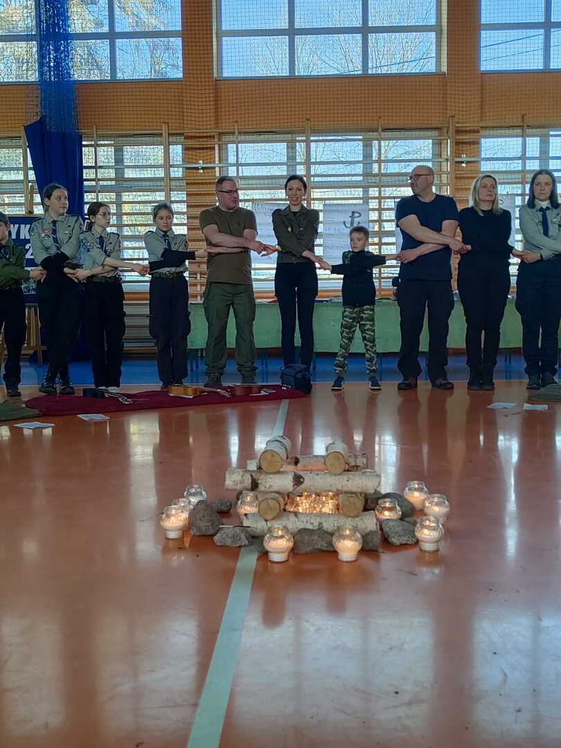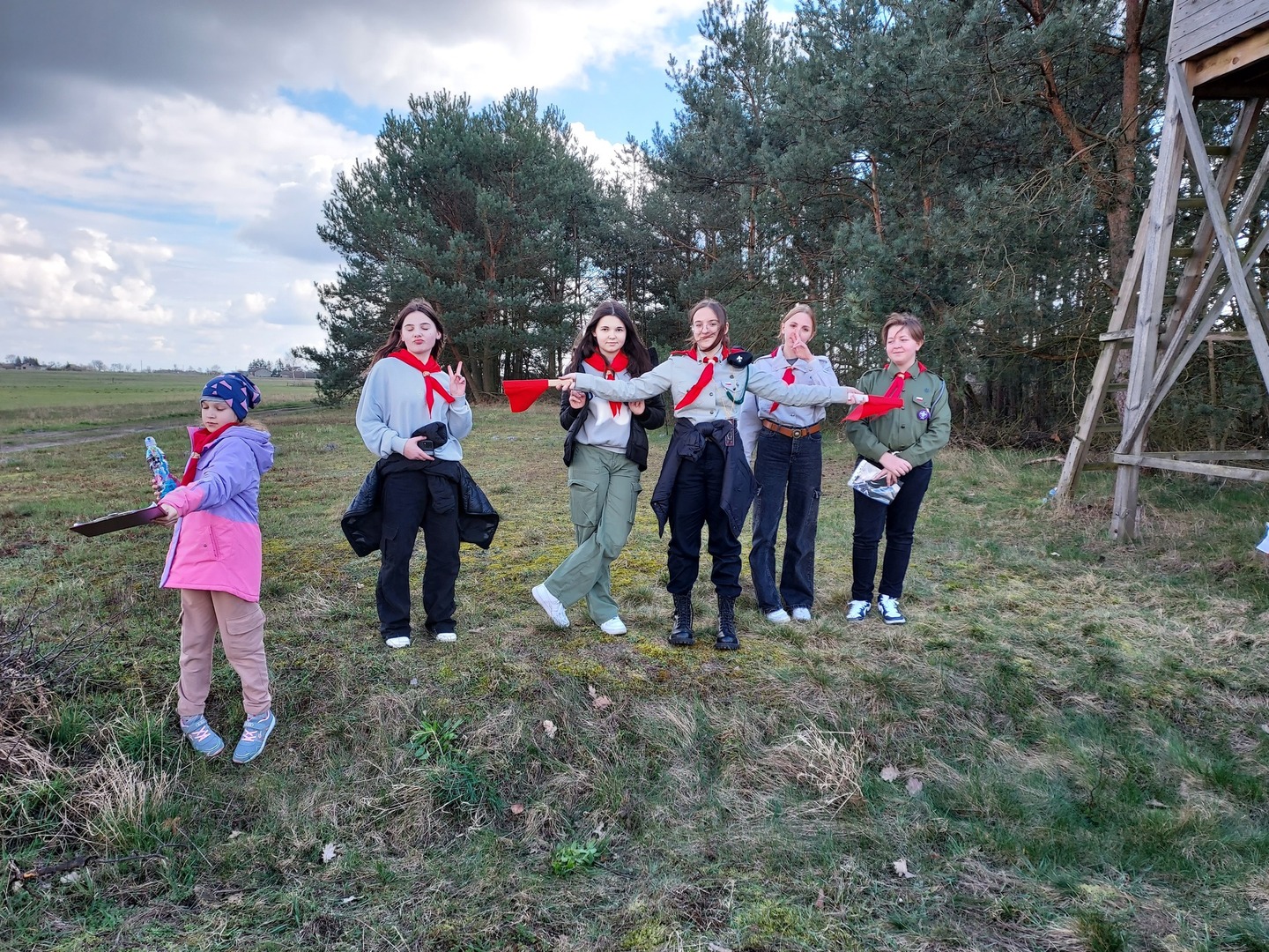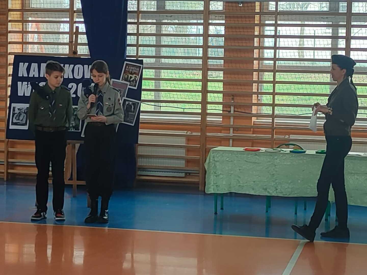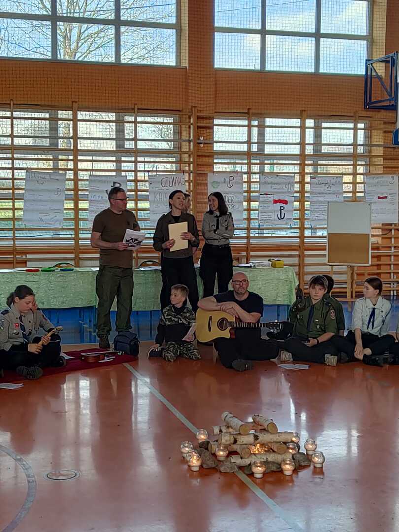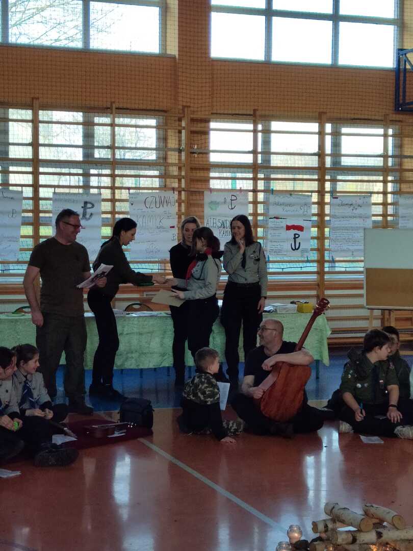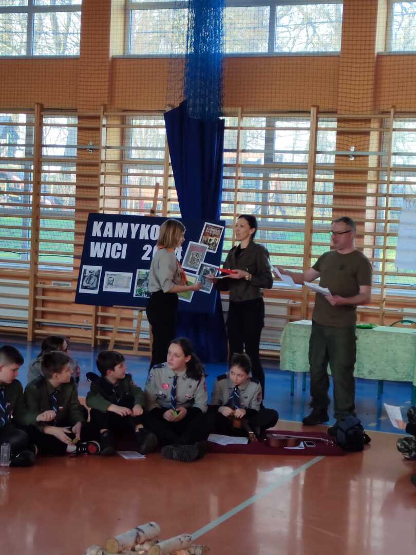 W sobotę 16 marca harcerze z drużyn działających na terenie powiatu kaliskiego spotkali się w Dzierzbinie-Kolonii, aby uczcić kolejną rocznicę śmierci swojego patrona - hm. Aleksandra Kamińskiego. Wybór Szkoły Podstawowej im. Szarych Szeregów na obchody tej uroczystości nie był przypadkowy. Szare Szeregi to bardzo ważny rozdział w życiu Druha „Kamyka”. To właśnie on był inicjatorem powstania harcerstwa podziemnego, współtwórcą i jednym z dowódców Szarych Szeregów. Uroczystość rozpoczął apel przy tablicy pamiątkowej poświęconej Szarym Szeregom, podczas którego Dyrektor Zespołu Szkolno-Przedszkolnego w Dzierzbinie-Kolonii powitał przybyłych harcerzy i gości, Zastępca Komendanta Hufca ZHP Powiatu Kaliskiego odczytał rozkaz dzienny, a Komendantka rajdu wprowadziła zebranych w tematykę spotkania i zapoznała ze szczegółowym harmonogramem obchodów „Kamykowych Wici”. Na zakończenie apelu delegacje drużyn złożyły pod tablicą pamiątkową specjalnie przygotowane i udekorowane znicze. Kolejna część rajdu odbyła się w budynku szkoły. Harcerze zgromadzili się na sali gimnastycznej, gdzie nauczyli się piosenki „Kamyk” oraz zaprezentowali przygotowane wcześniej ciekawostki z życia Aleksandra Kamińskiego. Następnie obejrzeli film i prezentację multimedialną poświęcone życiu, działalności i twórczości patrona Hufca, na podstawie których wykonali w drużynach plakaty. W południe rozpoczął się bieg patrolowy przygotowany przez Komendę Hufca. Patrole uczestniczące w biegu musiały wykazać się znajomością życiorysu Druha „Kamyka”, umiejętnością korzystania z mapy, wyznaczania azymutu, stosowania szyfrów harcerskich i alfabetu Morse’a, wyszukiwania ukrytych w polu metali, budowania ogniska harcerskiego, rozpalania ognia, strzelania z wiatrówki oraz sprawnością fizyczną podczas przeprawy przez „pajęczynę”. Harcerze doskonale się spisali na wszystkich punktach i wspaniale się bawili na całej trasie biegu. Po powrocie do szkoły czekała na nich ciepła grochówka oraz domowe ciasto i herbata przygotowane przez pracowników obsługi szkoły i przedszkola. Kolejnym punktem programu było świeczowisko, podczas którego harcerze śpiewali znane piosenki harcerskie i turystyczne przy akompaniamencie gitar. Grali na nich zarówno harcerze, jak i instruktorzy. Piosenki zostały zebrane w śpiewniczkach opracowanych na tę okazję przez organizatorów rajdu i wręczonych wszystkim uczestnikom. Na zakończenie dokonano podsumowania rajdu. Wszystkie drużyny wywiązały się z przygotowanych zadań. Najwięcej punktów zdobyła 36 SDH „Drapieżniki” z Korzeniewa, drugie miejsce zajęła 4 DH „Dzierzby” z Dzierzbina-Kolonii, a trzecie 14 DH „Białe Orły” z Godziesz. Wszystkie drużyny otrzymały dyplomy uczestnictwa w rajdzie „Kamykowe Wici”, ich opiekunowie podziękowania, a każdy uczestnik dodatkowo krzyż harcerski wydrukowany na szkolnej drukarce 3D. Po uroczystym podsumowaniu harcerze zawiązali krąg, puścili iskierkę przyjaźni i opuścili naszą szkołę. Na pewno wkrótce spotkają się ponownie na harcerskim szlaku…