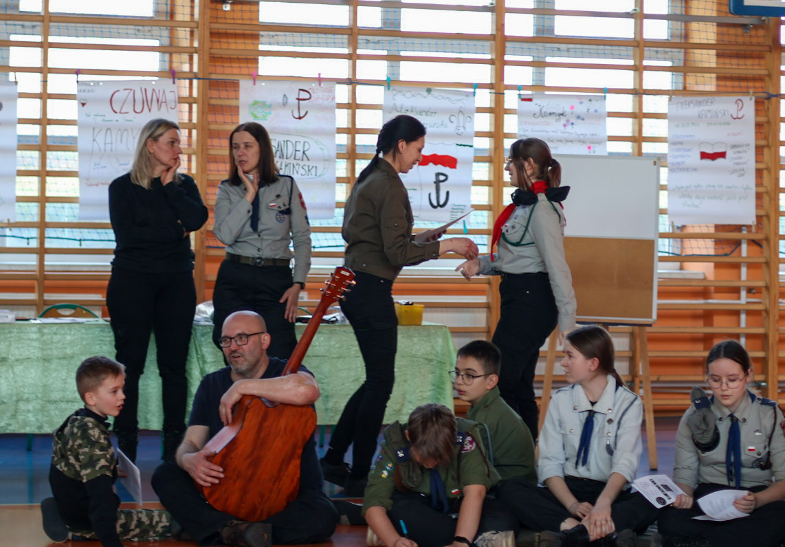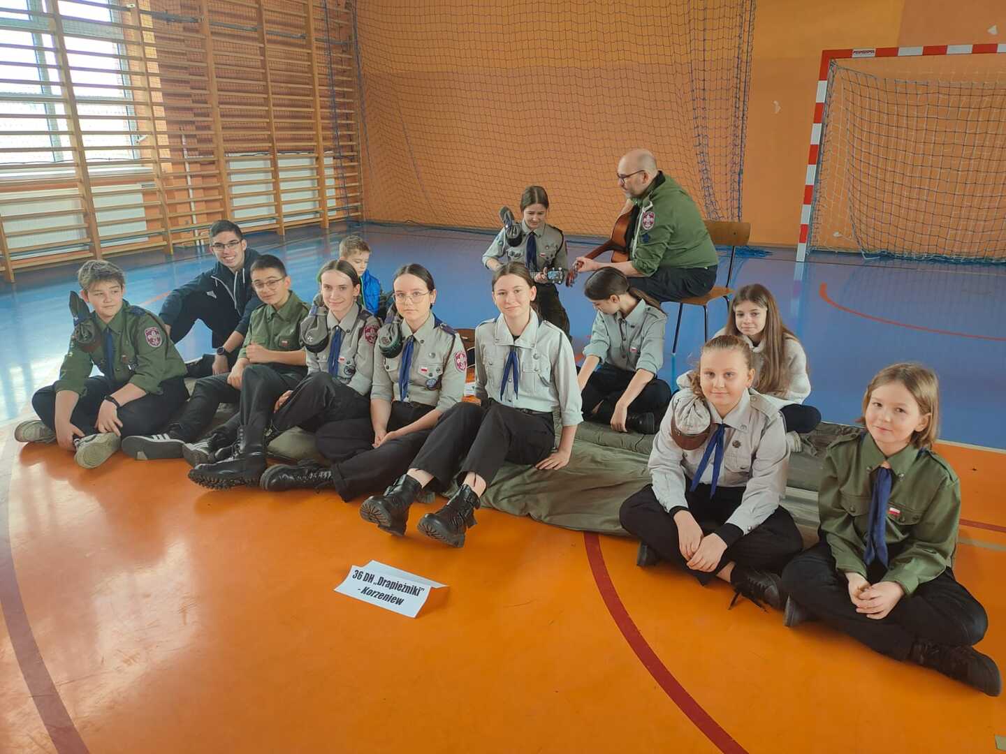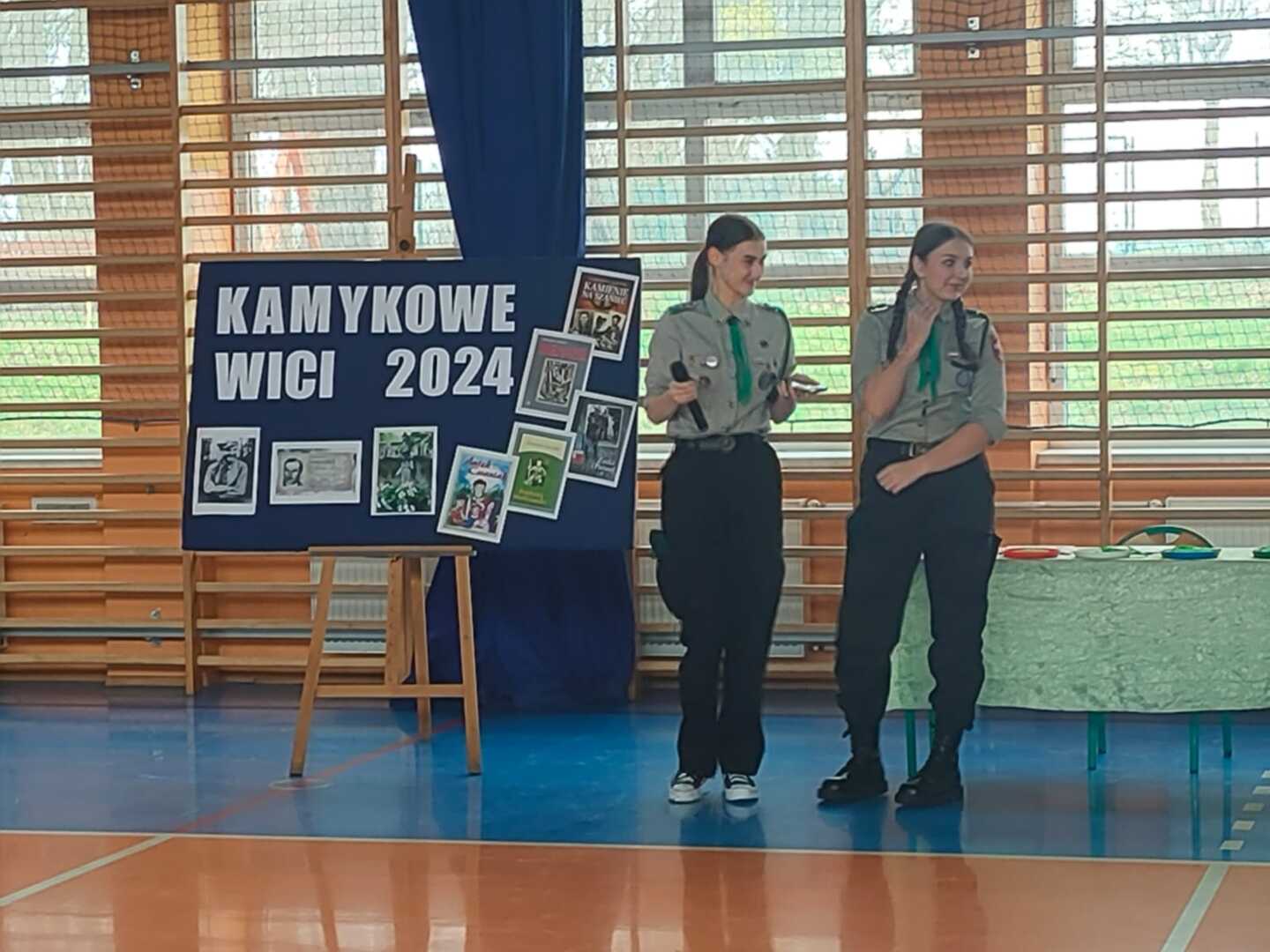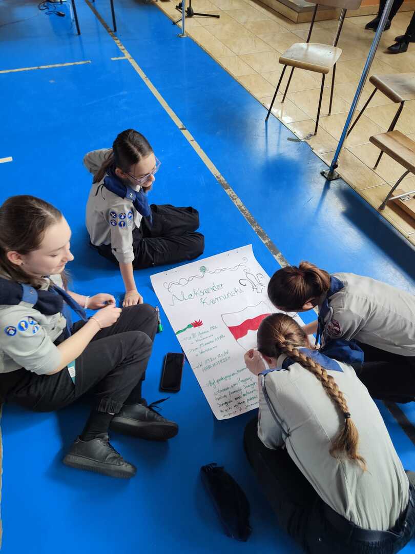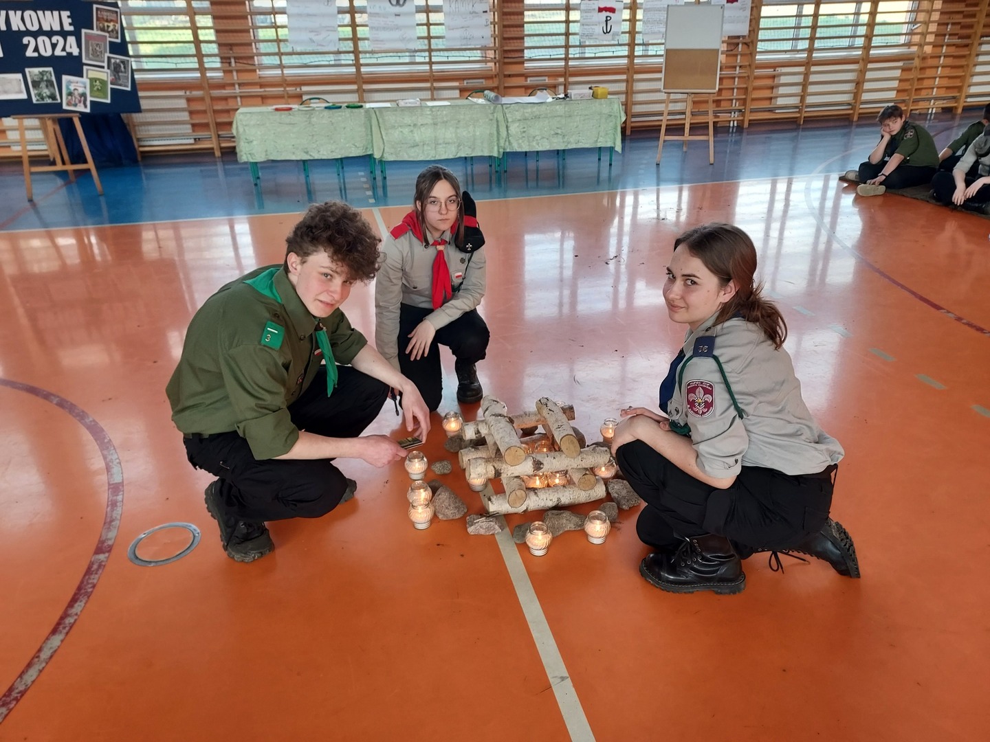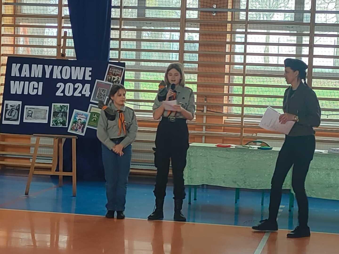 W sobotę 16 marca harcerze z drużyn działających na terenie powiatu kaliskiego spotkali się w Dzierzbinie-Kolonii, aby uczcić kolejną rocznicę śmierci swojego patrona - hm. Aleksandra Kamińskiego. Wybór Szkoły Podstawowej im. Szarych Szeregów na obchody tej uroczystości nie był przypadkowy. Szare Szeregi to bardzo ważny rozdział w życiu Druha „Kamyka”. To właśnie on był inicjatorem powstania harcerstwa podziemnego, współtwórcą i jednym z dowódców Szarych Szeregów. Uroczystość rozpoczął apel przy tablicy pamiątkowej poświęconej Szarym Szeregom, podczas którego Dyrektor Zespołu Szkolno-Przedszkolnego w Dzierzbinie-Kolonii powitał przybyłych harcerzy i gości, Zastępca Komendanta Hufca ZHP Powiatu Kaliskiego odczytał rozkaz dzienny, a Komendantka rajdu wprowadziła zebranych w tematykę spotkania i zapoznała ze szczegółowym harmonogramem obchodów „Kamykowych Wici”. Na zakończenie apelu delegacje drużyn złożyły pod tablicą pamiątkową specjalnie przygotowane i udekorowane znicze. Kolejna część rajdu odbyła się w budynku szkoły. Harcerze zgromadzili się na sali gimnastycznej, gdzie nauczyli się piosenki „Kamyk” oraz zaprezentowali przygotowane wcześniej ciekawostki z życia Aleksandra Kamińskiego. Następnie obejrzeli film i prezentację multimedialną poświęcone życiu, działalności i twórczości patrona Hufca, na podstawie których wykonali w drużynach plakaty. W południe rozpoczął się bieg patrolowy przygotowany przez Komendę Hufca. Patrole uczestniczące w biegu musiały wykazać się znajomością życiorysu Druha „Kamyka”, umiejętnością korzystania z mapy, wyznaczania azymutu, stosowania szyfrów harcerskich i alfabetu Morse’a, wyszukiwania ukrytych w polu metali, budowania ogniska harcerskiego, rozpalania ognia, strzelania z wiatrówki oraz sprawnością fizyczną podczas przeprawy przez „pajęczynę”. Harcerze doskonale się spisali na wszystkich punktach i wspaniale się bawili na całej trasie biegu. Po powrocie do szkoły czekała na nich ciepła grochówka oraz domowe ciasto i herbata przygotowane przez pracowników obsługi szkoły i przedszkola. Kolejnym punktem programu było świeczowisko, podczas którego harcerze śpiewali znane piosenki harcerskie i turystyczne przy akompaniamencie gitar. Grali na nich zarówno harcerze, jak i instruktorzy. Piosenki zostały zebrane w śpiewniczkach opracowanych na tę okazję przez organizatorów rajdu i wręczonych wszystkim uczestnikom. Na zakończenie dokonano podsumowania rajdu. Wszystkie drużyny wywiązały się z przygotowanych zadań. Najwięcej punktów zdobyła 36 SDH „Drapieżniki” z Korzeniewa, drugie miejsce zajęła 4 DH „Dzierzby” z Dzierzbina-Kolonii, a trzecie 14 DH „Białe Orły” z Godziesz. Wszystkie drużyny otrzymały dyplomy uczestnictwa w rajdzie „Kamykowe Wici”, ich opiekunowie podziękowania, a każdy uczestnik dodatkowo krzyż harcerski wydrukowany na szkolnej drukarce 3D. Po uroczystym podsumowaniu harcerze zawiązali krąg, puścili iskierkę przyjaźni i opuścili naszą szkołę. Na pewno wkrótce spotkają się ponownie na harcerskim szlaku…