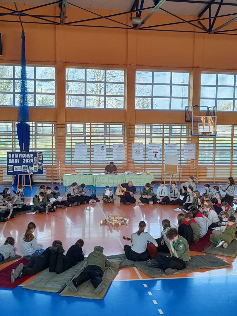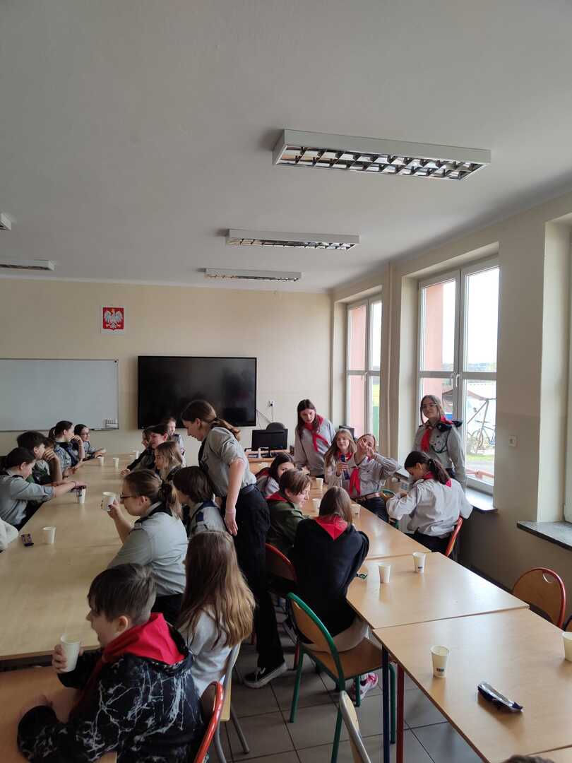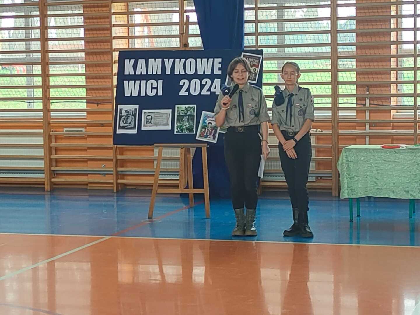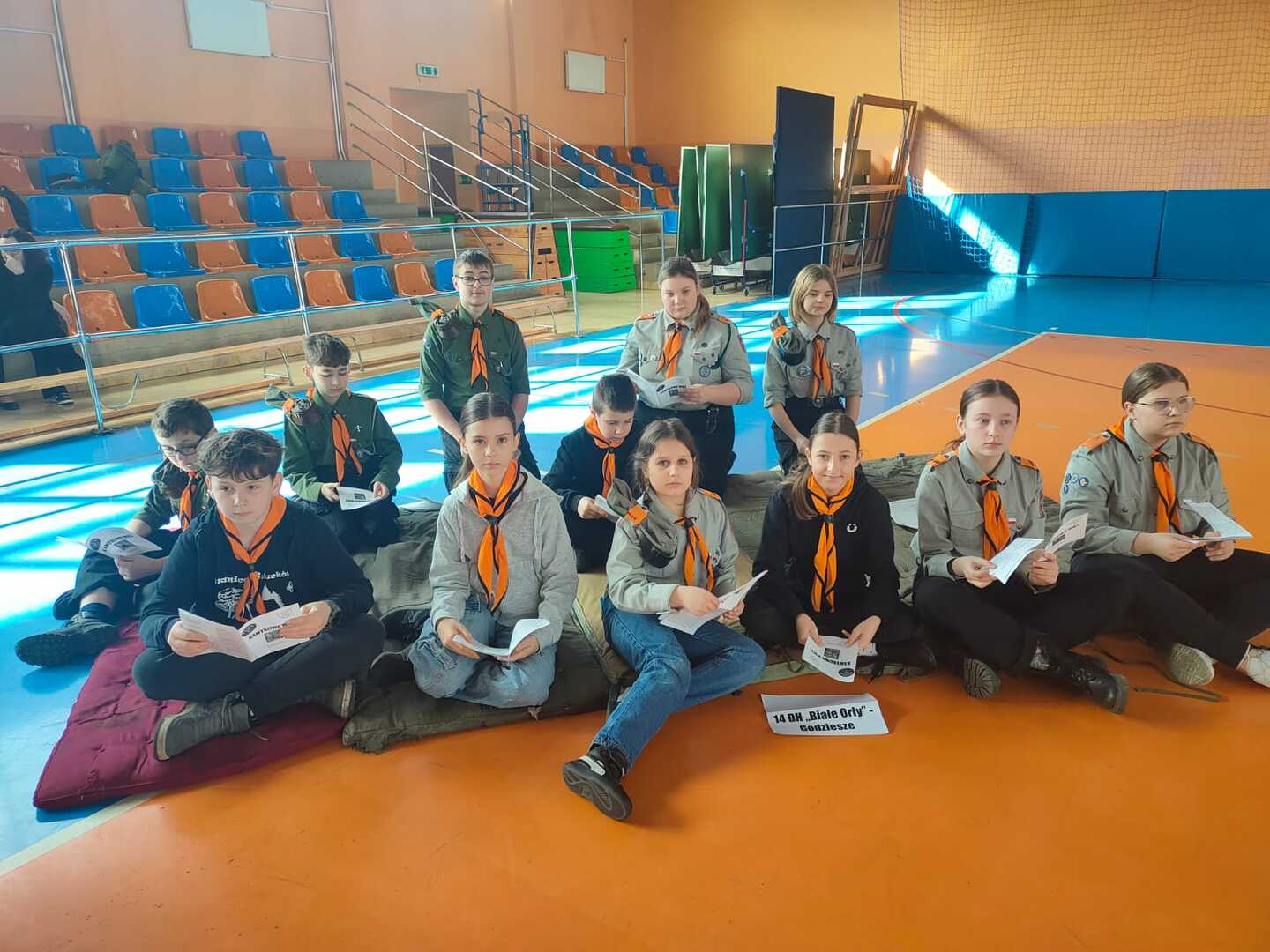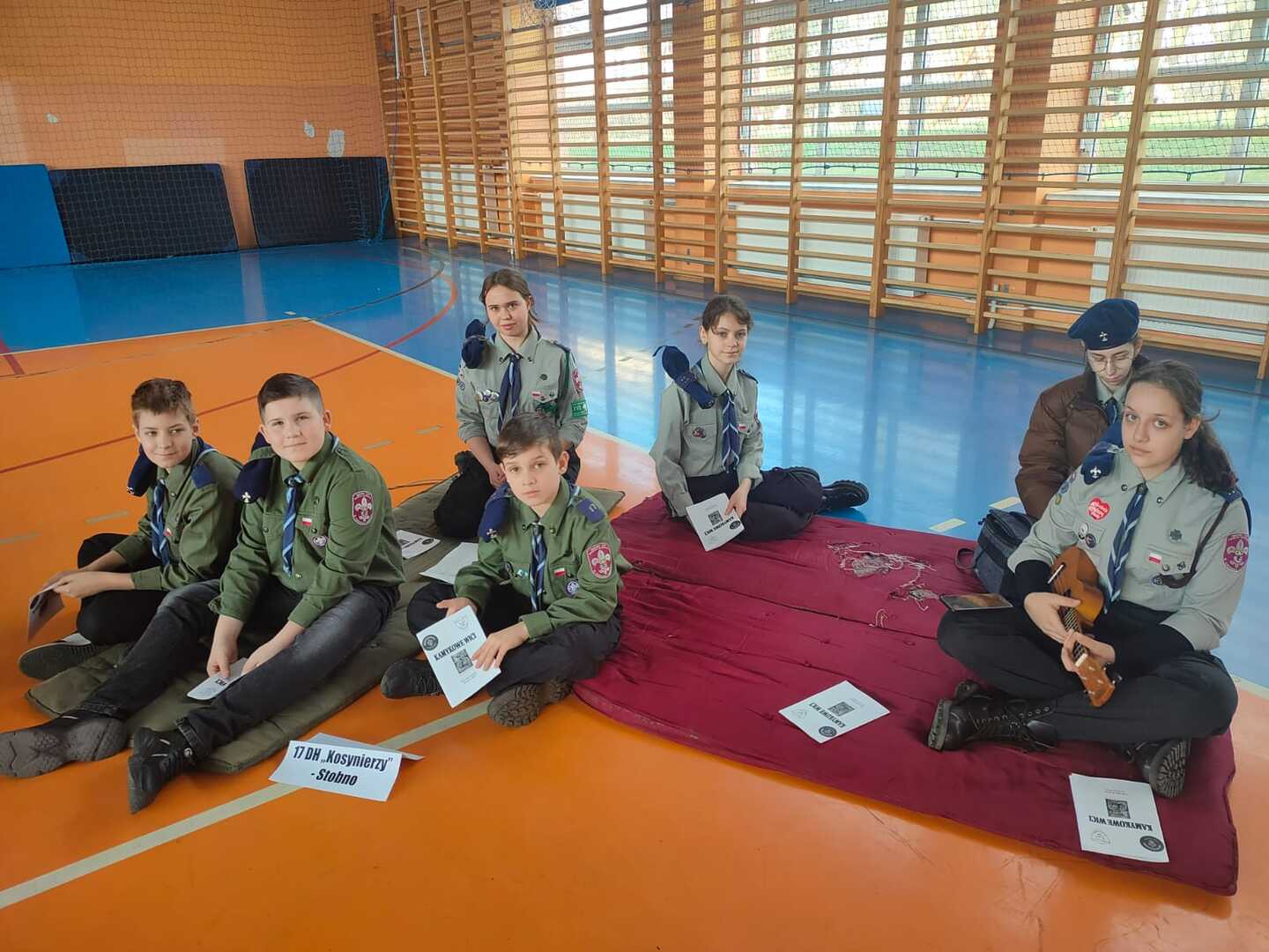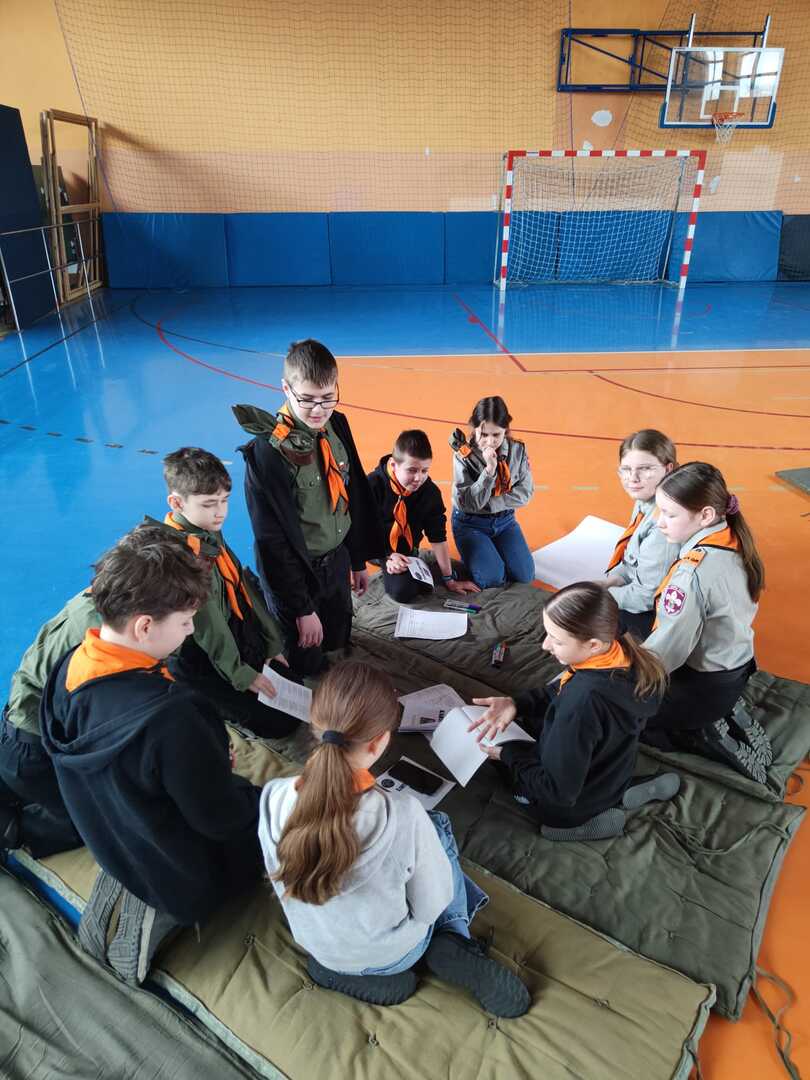 W sobotę 16 marca harcerze z drużyn działających na terenie powiatu kaliskiego spotkali się w Dzierzbinie-Kolonii, aby uczcić kolejną rocznicę śmierci swojego patrona - hm. Aleksandra Kamińskiego. Wybór Szkoły Podstawowej im. Szarych Szeregów na obchody tej uroczystości nie był przypadkowy. Szare Szeregi to bardzo ważny rozdział w życiu Druha „Kamyka”. To właśnie on był inicjatorem powstania harcerstwa podziemnego, współtwórcą i jednym z dowódców Szarych Szeregów. Uroczystość rozpoczął apel przy tablicy pamiątkowej poświęconej Szarym Szeregom, podczas którego Dyrektor Zespołu Szkolno-Przedszkolnego w Dzierzbinie-Kolonii powitał przybyłych harcerzy i gości, Zastępca Komendanta Hufca ZHP Powiatu Kaliskiego odczytał rozkaz dzienny, a Komendantka rajdu wprowadziła zebranych w tematykę spotkania i zapoznała ze szczegółowym harmonogramem obchodów „Kamykowych Wici”. Na zakończenie apelu delegacje drużyn złożyły pod tablicą pamiątkową specjalnie przygotowane i udekorowane znicze. Kolejna część rajdu odbyła się w budynku szkoły. Harcerze zgromadzili się na sali gimnastycznej, gdzie nauczyli się piosenki „Kamyk” oraz zaprezentowali przygotowane wcześniej ciekawostki z życia Aleksandra Kamińskiego. Następnie obejrzeli film i prezentację multimedialną poświęcone życiu, działalności i twórczości patrona Hufca, na podstawie których wykonali w drużynach plakaty. W południe rozpoczął się bieg patrolowy przygotowany przez Komendę Hufca. Patrole uczestniczące w biegu musiały wykazać się znajomością życiorysu Druha „Kamyka”, umiejętnością korzystania z mapy, wyznaczania azymutu, stosowania szyfrów harcerskich i alfabetu Morse’a, wyszukiwania ukrytych w polu metali, budowania ogniska harcerskiego, rozpalania ognia, strzelania z wiatrówki oraz sprawnością fizyczną podczas przeprawy przez „pajęczynę”. Harcerze doskonale się spisali na wszystkich punktach i wspaniale się bawili na całej trasie biegu. Po powrocie do szkoły czekała na nich ciepła grochówka oraz domowe ciasto i herbata przygotowane przez pracowników obsługi szkoły i przedszkola. Kolejnym punktem programu było świeczowisko, podczas którego harcerze śpiewali znane piosenki harcerskie i turystyczne przy akompaniamencie gitar. Grali na nich zarówno harcerze, jak i instruktorzy. Piosenki zostały zebrane w śpiewniczkach opracowanych na tę okazję przez organizatorów rajdu i wręczonych wszystkim uczestnikom. Na zakończenie dokonano podsumowania rajdu. Wszystkie drużyny wywiązały się z przygotowanych zadań. Najwięcej punktów zdobyła 36 SDH „Drapieżniki” z Korzeniewa, drugie miejsce zajęła 4 DH „Dzierzby” z Dzierzbina-Kolonii, a trzecie 14 DH „Białe Orły” z Godziesz. Wszystkie drużyny otrzymały dyplomy uczestnictwa w rajdzie „Kamykowe Wici”, ich opiekunowie podziękowania, a każdy uczestnik dodatkowo krzyż harcerski wydrukowany na szkolnej drukarce 3D. Po uroczystym podsumowaniu harcerze zawiązali krąg, puścili iskierkę przyjaźni i opuścili naszą szkołę. Na pewno wkrótce spotkają się ponownie na harcerskim szlaku…