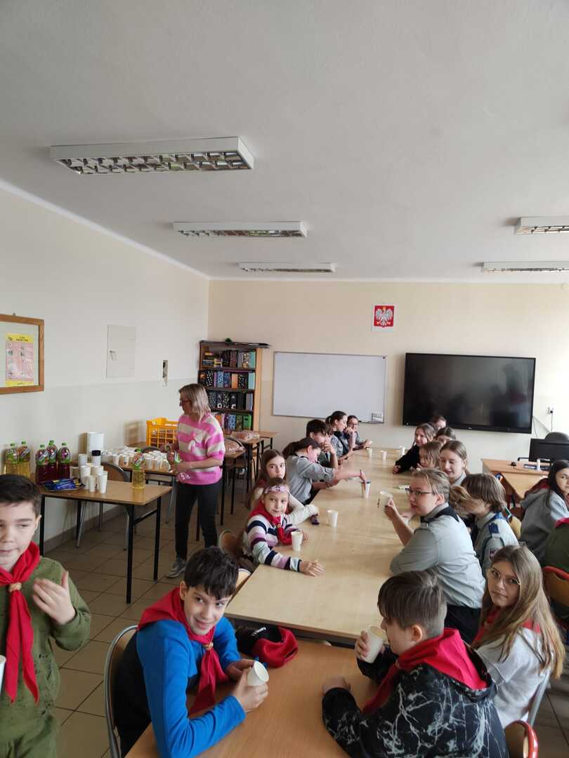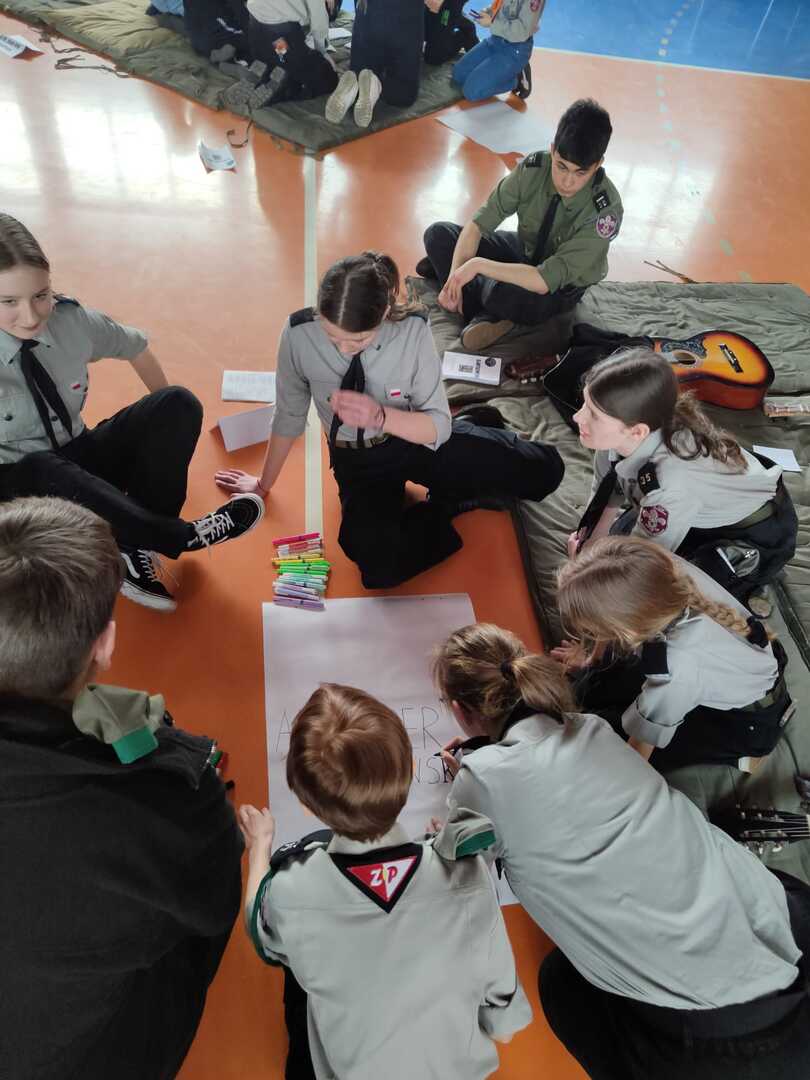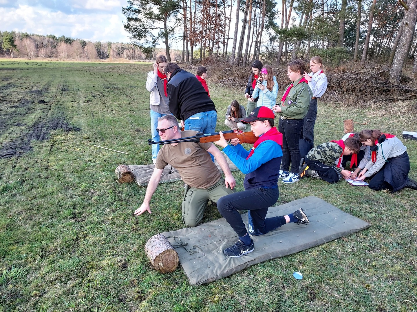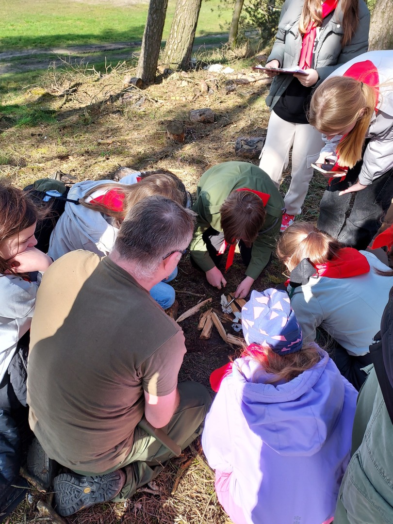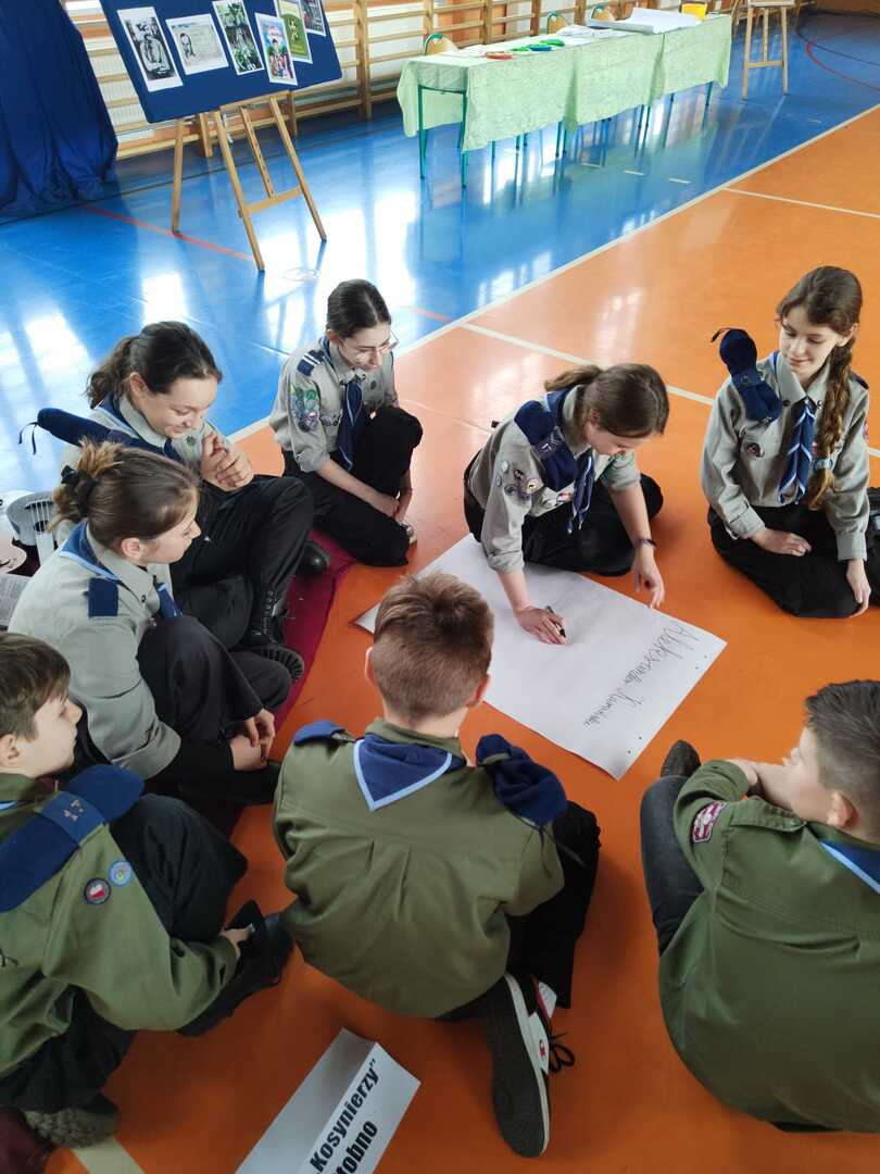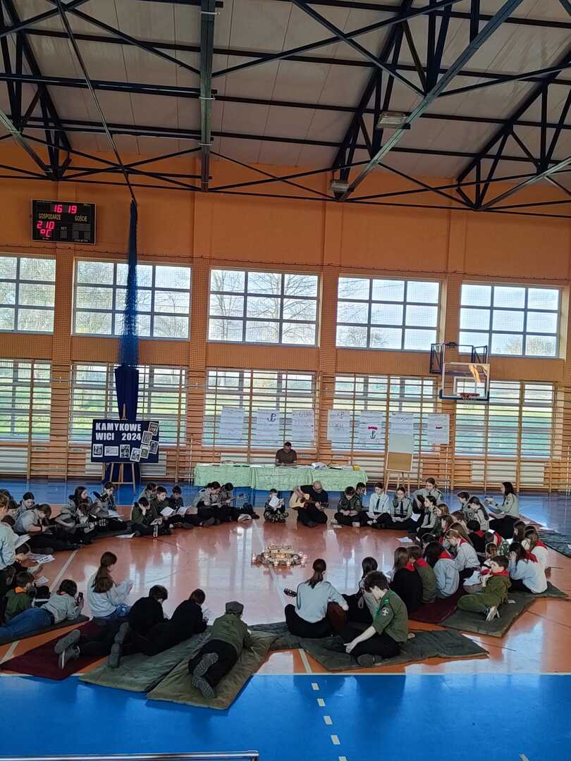 W sobotę 16 marca harcerze z drużyn działających na terenie powiatu kaliskiego spotkali się w Dzierzbinie-Kolonii, aby uczcić kolejną rocznicę śmierci swojego patrona - hm. Aleksandra Kamińskiego. Wybór Szkoły Podstawowej im. Szarych Szeregów na obchody tej uroczystości nie był przypadkowy. Szare Szeregi to bardzo ważny rozdział w życiu Druha „Kamyka”. To właśnie on był inicjatorem powstania harcerstwa podziemnego, współtwórcą i jednym z dowódców Szarych Szeregów. Uroczystość rozpoczął apel przy tablicy pamiątkowej poświęconej Szarym Szeregom, podczas którego Dyrektor Zespołu Szkolno-Przedszkolnego w Dzierzbinie-Kolonii powitał przybyłych harcerzy i gości, Zastępca Komendanta Hufca ZHP Powiatu Kaliskiego odczytał rozkaz dzienny, a Komendantka rajdu wprowadziła zebranych w tematykę spotkania i zapoznała ze szczegółowym harmonogramem obchodów „Kamykowych Wici”. Na zakończenie apelu delegacje drużyn złożyły pod tablicą pamiątkową specjalnie przygotowane i udekorowane znicze. Kolejna część rajdu odbyła się w budynku szkoły. Harcerze zgromadzili się na sali gimnastycznej, gdzie nauczyli się piosenki „Kamyk” oraz zaprezentowali przygotowane wcześniej ciekawostki z życia Aleksandra Kamińskiego. Następnie obejrzeli film i prezentację multimedialną poświęcone życiu, działalności i twórczości patrona Hufca, na podstawie których wykonali w drużynach plakaty. W południe rozpoczął się bieg patrolowy przygotowany przez Komendę Hufca. Patrole uczestniczące w biegu musiały wykazać się znajomością życiorysu Druha „Kamyka”, umiejętnością korzystania z mapy, wyznaczania azymutu, stosowania szyfrów harcerskich i alfabetu Morse’a, wyszukiwania ukrytych w polu metali, budowania ogniska harcerskiego, rozpalania ognia, strzelania z wiatrówki oraz sprawnością fizyczną podczas przeprawy przez „pajęczynę”. Harcerze doskonale się spisali na wszystkich punktach i wspaniale się bawili na całej trasie biegu. Po powrocie do szkoły czekała na nich ciepła grochówka oraz domowe ciasto i herbata przygotowane przez pracowników obsługi szkoły i przedszkola. Kolejnym punktem programu było świeczowisko, podczas którego harcerze śpiewali znane piosenki harcerskie i turystyczne przy akompaniamencie gitar. Grali na nich zarówno harcerze, jak i instruktorzy. Piosenki zostały zebrane w śpiewniczkach opracowanych na tę okazję przez organizatorów rajdu i wręczonych wszystkim uczestnikom. Na zakończenie dokonano podsumowania rajdu. Wszystkie drużyny wywiązały się z przygotowanych zadań. Najwięcej punktów zdobyła 36 SDH „Drapieżniki” z Korzeniewa, drugie miejsce zajęła 4 DH „Dzierzby” z Dzierzbina-Kolonii, a trzecie 14 DH „Białe Orły” z Godziesz. Wszystkie drużyny otrzymały dyplomy uczestnictwa w rajdzie „Kamykowe Wici”, ich opiekunowie podziękowania, a każdy uczestnik dodatkowo krzyż harcerski wydrukowany na szkolnej drukarce 3D. Po uroczystym podsumowaniu harcerze zawiązali krąg, puścili iskierkę przyjaźni i opuścili naszą szkołę. Na pewno wkrótce spotkają się ponownie na harcerskim szlaku…