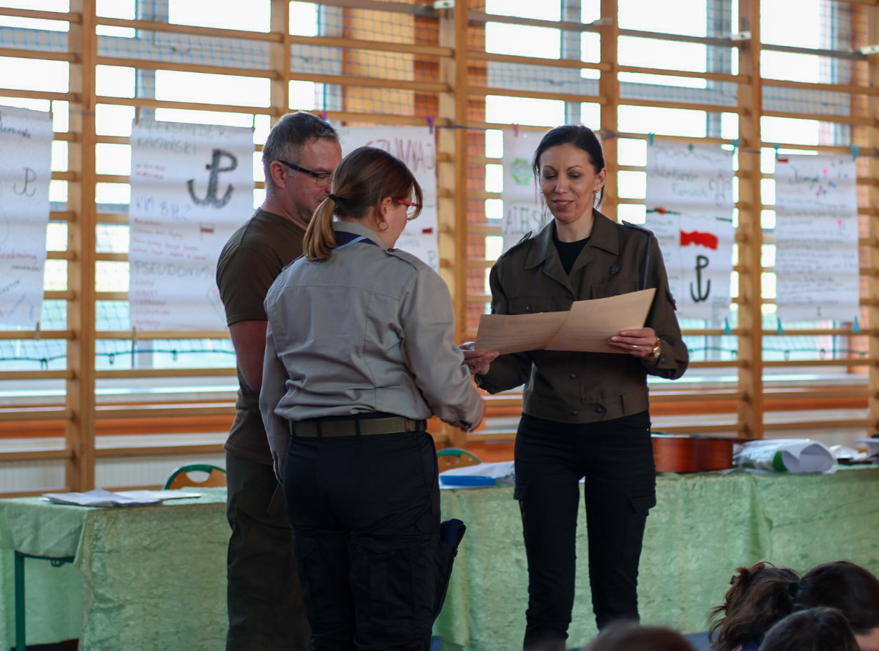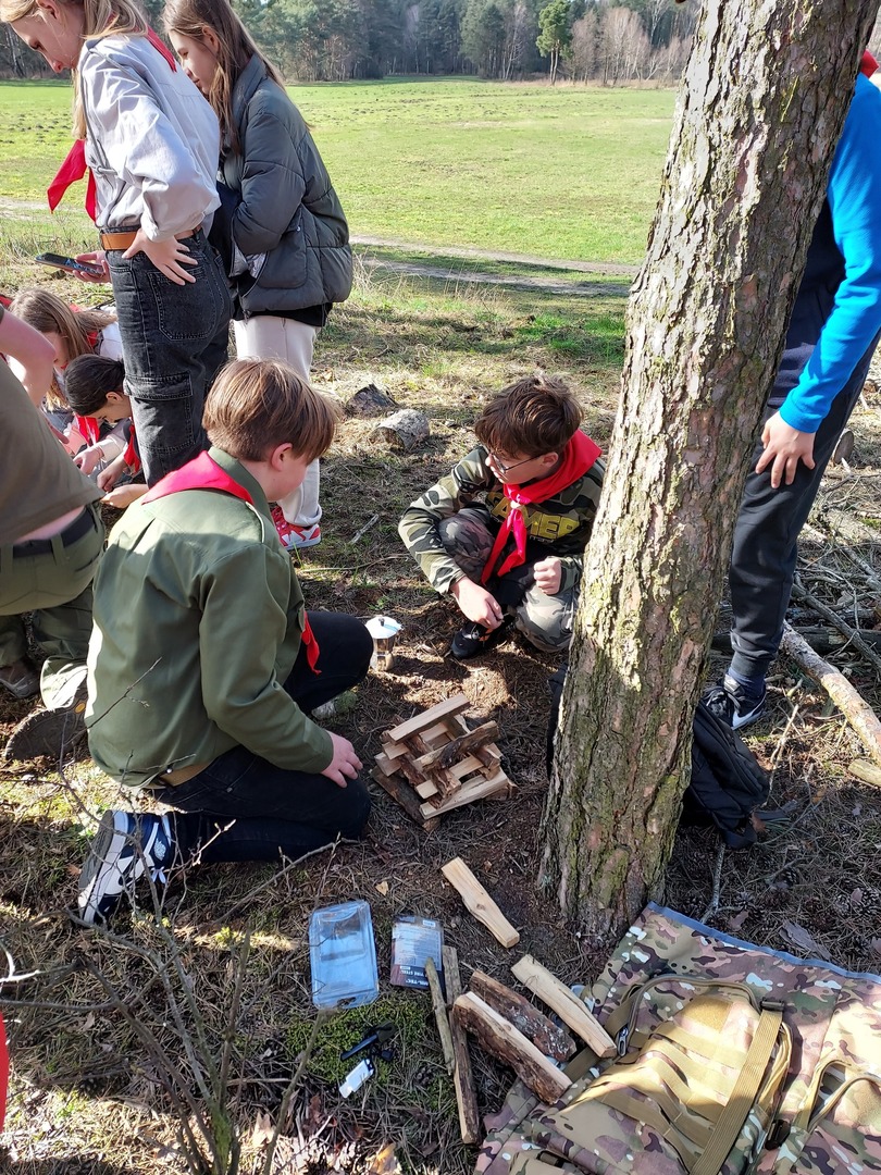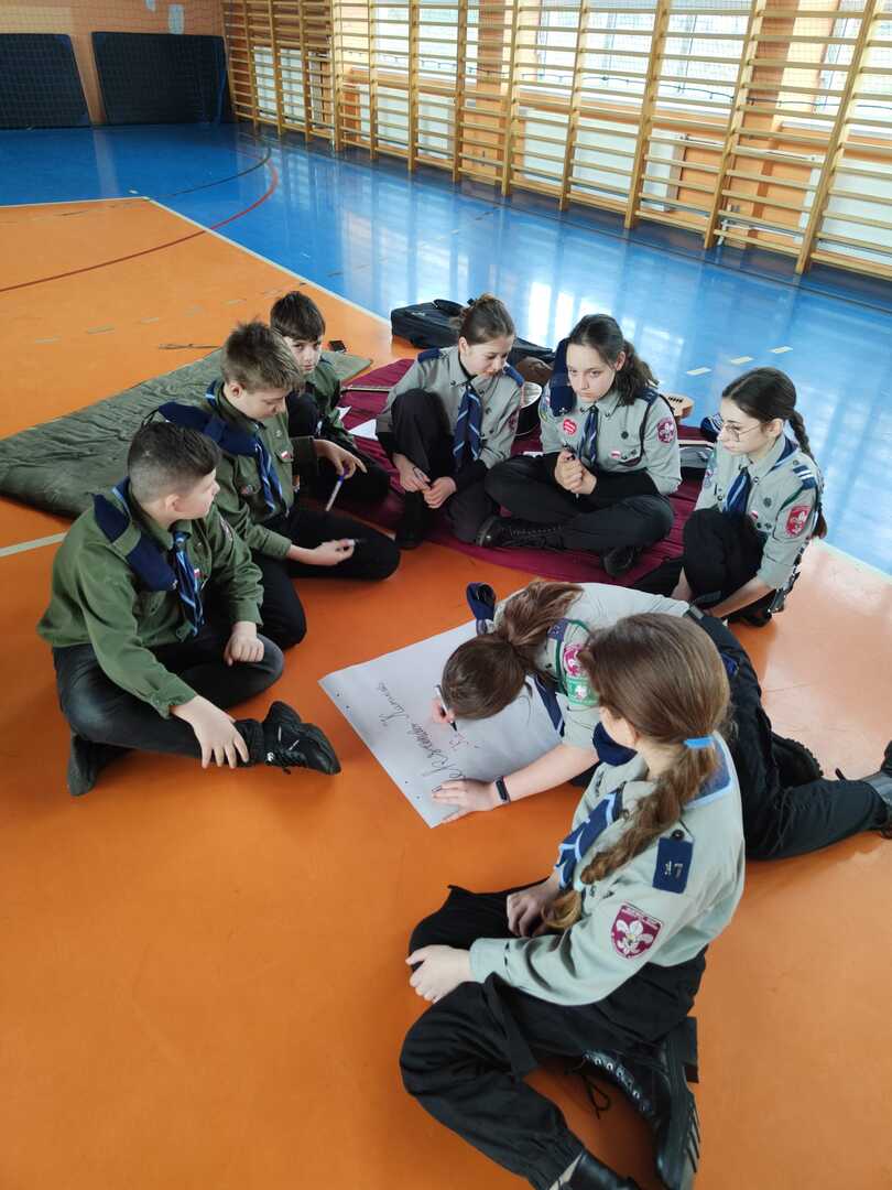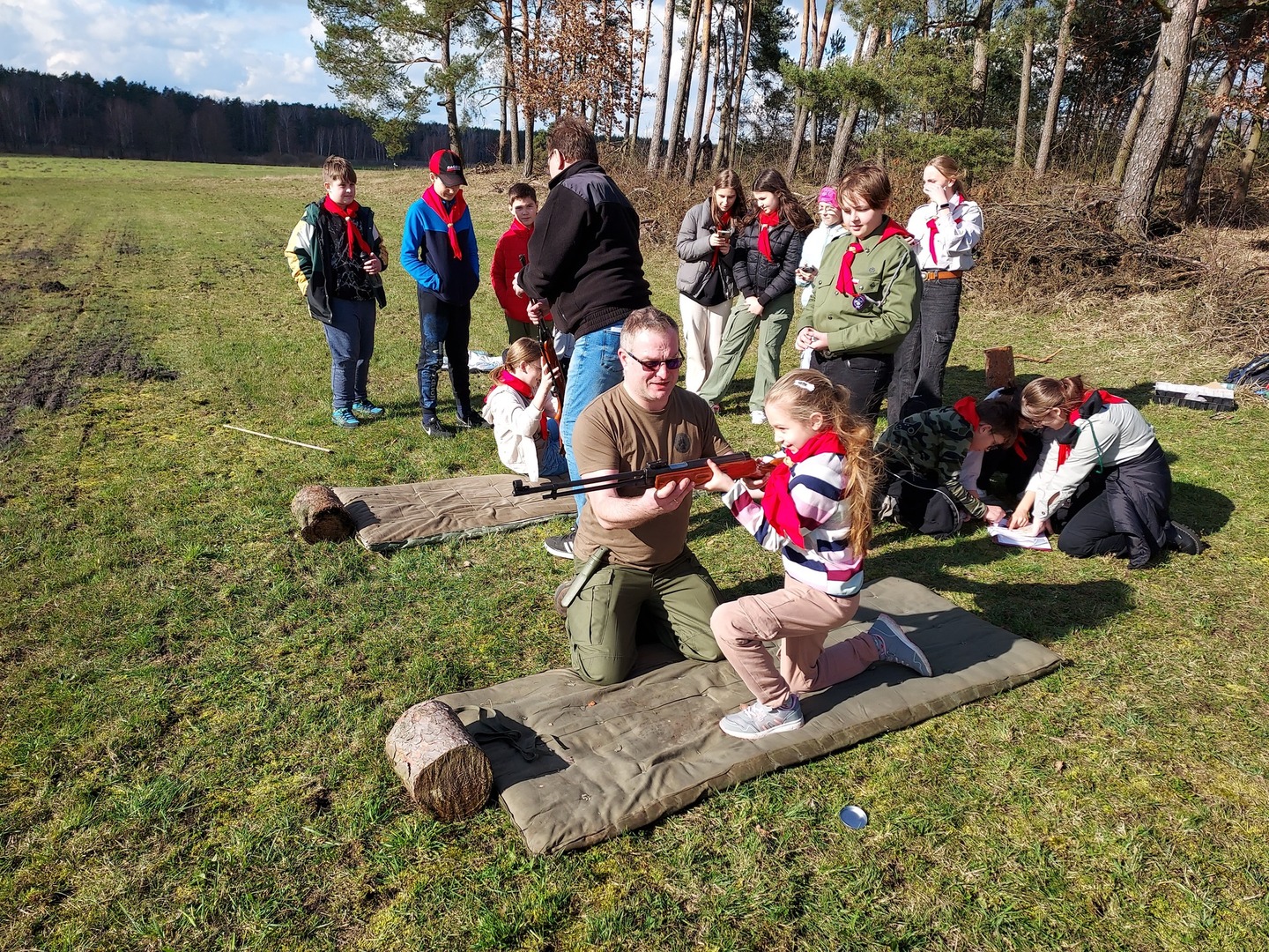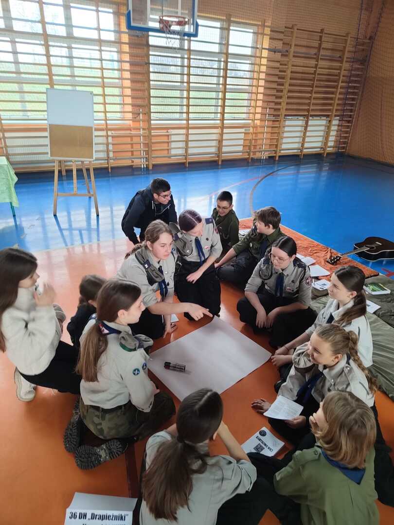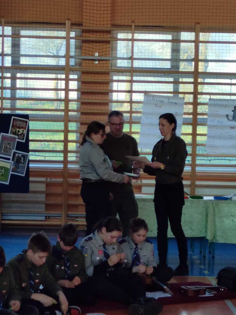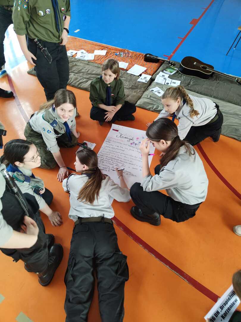 W sobotę 16 marca harcerze z drużyn działających na terenie powiatu kaliskiego spotkali się w Dzierzbinie-Kolonii, aby uczcić kolejną rocznicę śmierci swojego patrona - hm. Aleksandra Kamińskiego. Wybór Szkoły Podstawowej im. Szarych Szeregów na obchody tej uroczystości nie był przypadkowy. Szare Szeregi to bardzo ważny rozdział w życiu Druha „Kamyka”. To właśnie on był inicjatorem powstania harcerstwa podziemnego, współtwórcą i jednym z dowódców Szarych Szeregów. Uroczystość rozpoczął apel przy tablicy pamiątkowej poświęconej Szarym Szeregom, podczas którego Dyrektor Zespołu Szkolno-Przedszkolnego w Dzierzbinie-Kolonii powitał przybyłych harcerzy i gości, Zastępca Komendanta Hufca ZHP Powiatu Kaliskiego odczytał rozkaz dzienny, a Komendantka rajdu wprowadziła zebranych w tematykę spotkania i zapoznała ze szczegółowym harmonogramem obchodów „Kamykowych Wici”. Na zakończenie apelu delegacje drużyn złożyły pod tablicą pamiątkową specjalnie przygotowane i udekorowane znicze. Kolejna część rajdu odbyła się w budynku szkoły. Harcerze zgromadzili się na sali gimnastycznej, gdzie nauczyli się piosenki „Kamyk” oraz zaprezentowali przygotowane wcześniej ciekawostki z życia Aleksandra Kamińskiego. Następnie obejrzeli film i prezentację multimedialną poświęcone życiu, działalności i twórczości patrona Hufca, na podstawie których wykonali w drużynach plakaty. W południe rozpoczął się bieg patrolowy przygotowany przez Komendę Hufca. Patrole uczestniczące w biegu musiały wykazać się znajomością życiorysu Druha „Kamyka”, umiejętnością korzystania z mapy, wyznaczania azymutu, stosowania szyfrów harcerskich i alfabetu Morse’a, wyszukiwania ukrytych w polu metali, budowania ogniska harcerskiego, rozpalania ognia, strzelania z wiatrówki oraz sprawnością fizyczną podczas przeprawy przez „pajęczynę”. Harcerze doskonale się spisali na wszystkich punktach i wspaniale się bawili na całej trasie biegu. Po powrocie do szkoły czekała na nich ciepła grochówka oraz domowe ciasto i herbata przygotowane przez pracowników obsługi szkoły i przedszkola. Kolejnym punktem programu było świeczowisko, podczas którego harcerze śpiewali znane piosenki harcerskie i turystyczne przy akompaniamencie gitar. Grali na nich zarówno harcerze, jak i instruktorzy. Piosenki zostały zebrane w śpiewniczkach opracowanych na tę okazję przez organizatorów rajdu i wręczonych wszystkim uczestnikom. Na zakończenie dokonano podsumowania rajdu. Wszystkie drużyny wywiązały się z przygotowanych zadań. Najwięcej punktów zdobyła 36 SDH „Drapieżniki” z Korzeniewa, drugie miejsce zajęła 4 DH „Dzierzby” z Dzierzbina-Kolonii, a trzecie 14 DH „Białe Orły” z Godziesz. Wszystkie drużyny otrzymały dyplomy uczestnictwa w rajdzie „Kamykowe Wici”, ich opiekunowie podziękowania, a każdy uczestnik dodatkowo krzyż harcerski wydrukowany na szkolnej drukarce 3D. Po uroczystym podsumowaniu harcerze zawiązali krąg, puścili iskierkę przyjaźni i opuścili naszą szkołę. Na pewno wkrótce spotkają się ponownie na harcerskim szlaku…