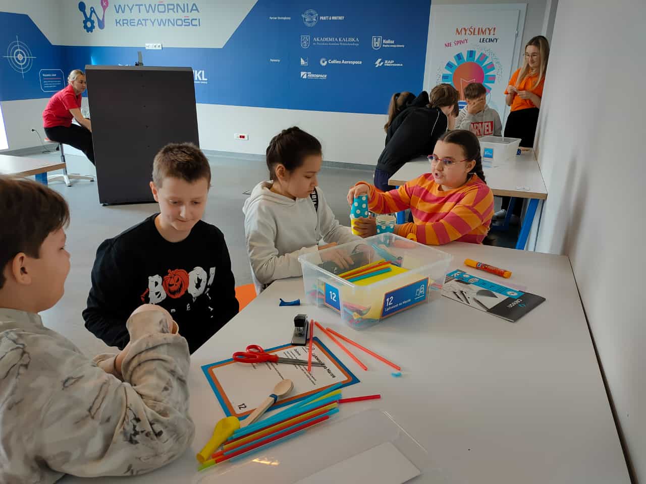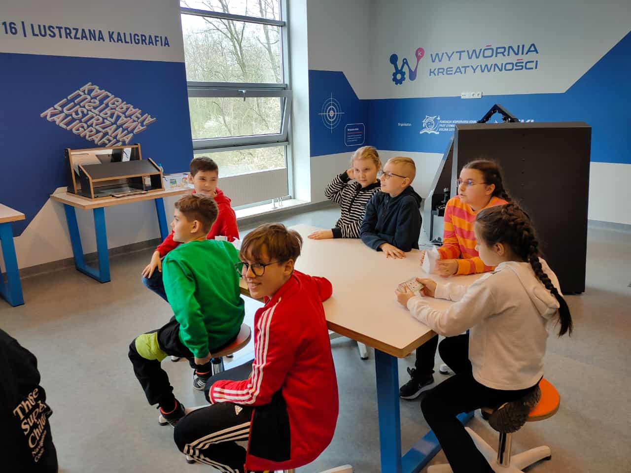 25 marca 2024 roku uczniowie klasy czwartej wzięli udział w "Warsztatach Kreatywności", które odbyły się na terenie kampusu "Akademii Kaliskiej". Właśnie tam powstała Wytwórnia Kreatywności - miejsce powstałe dzięki współpracy Fundacji Wspierania Edukacji przy Stowarzyszeniu Dolina Lotnicza. Uczniowie wzięli udział w ciekawych zajęciach, dzięki którym mogli za pomocą zmysłów wzroku i dotyku poznać prawa rządzące nauką. Dzieci mierzyły się z wieloma ciekawymi i wymagającymi zadaniami, które wymagały pracy zespołowej oraz wielu nieszablonowych rozwiązań. Duże podziękowania należą się Urzędowi Gminy Mycielin, który zorganizował i sfinalizował wyjazd.