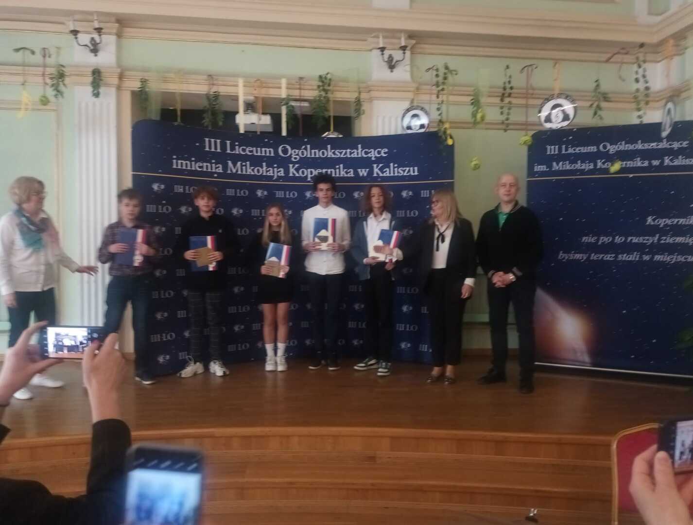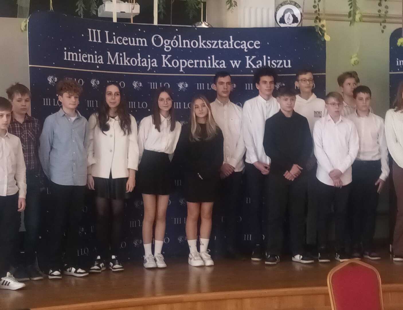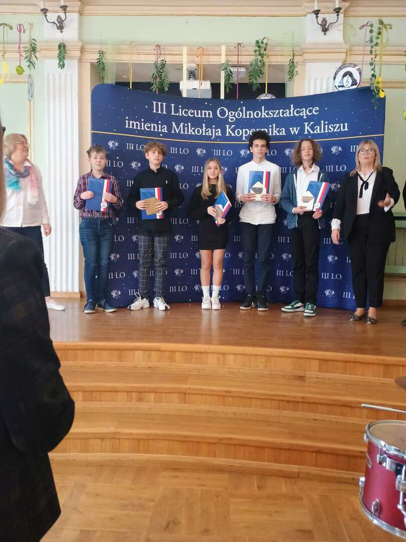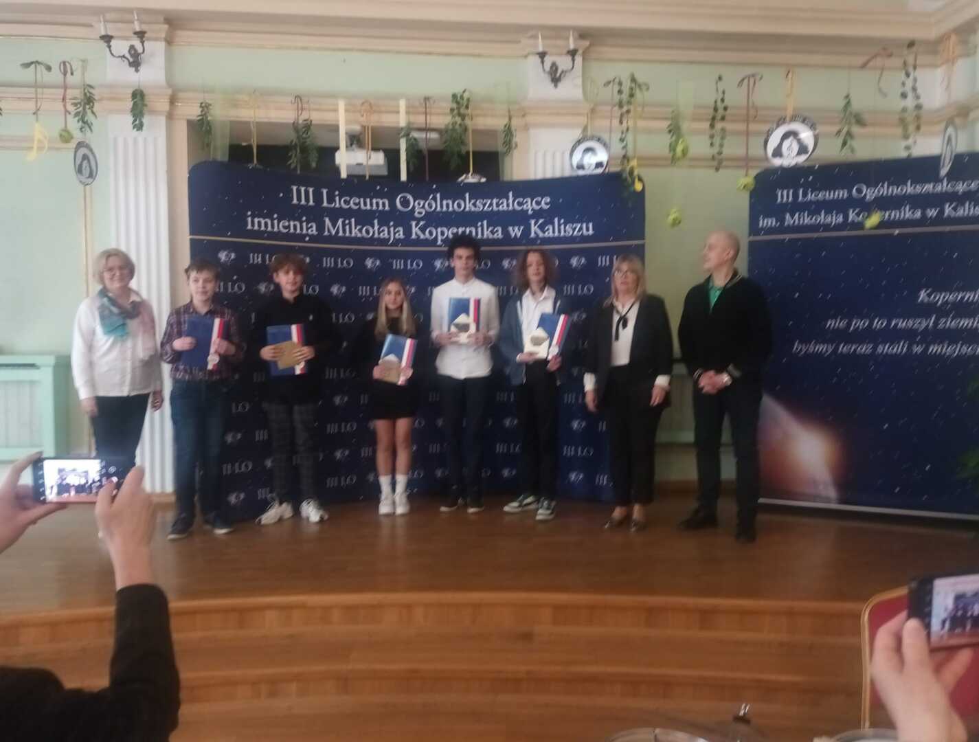 V Międzyszkolny Konkurs Matematyczny organizowany przez III Liceum Ogólnokształcące im. Mikołaja Kopernika w Kaliszu pod patronatem Kuratorium Oświaty w Poznaniu. Uczeń naszej szkoły - Mikołaj Macniak zakwalifikował się do finału, w którym osiągnął wysoki wynik i uzyskał wyróżnienie. Udział w finale zapewnia Mikołajowi gwarantowane miejsce w szeregu uczniów klas pierwszych tejże szkoły w przyszłym roku szkolnym. Gratulujemy i życzymy kolejnych sukcesów!