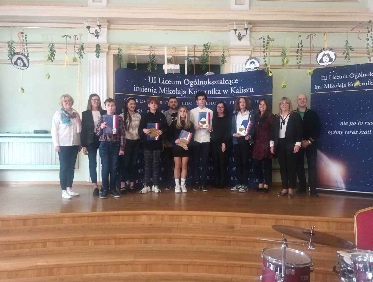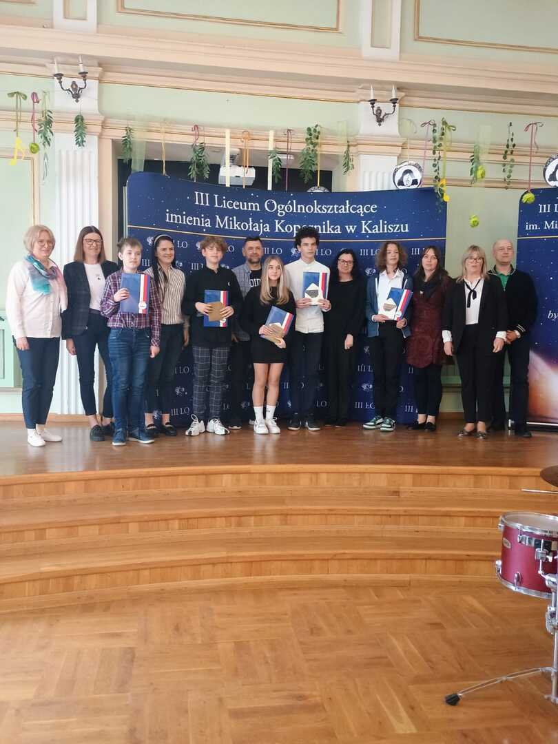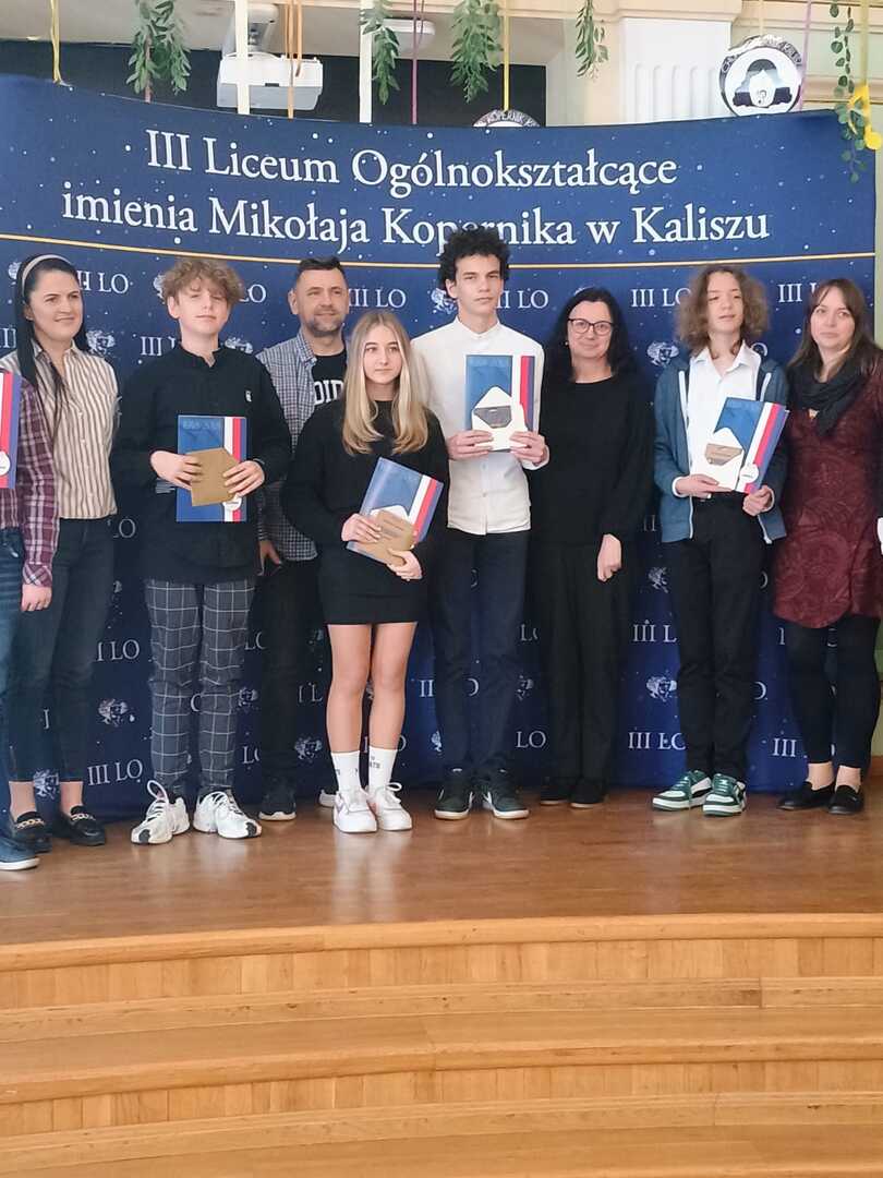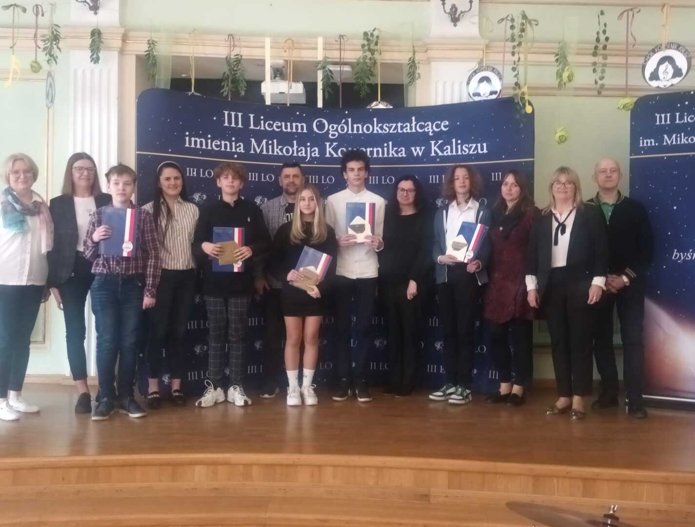 V Międzyszkolny Konkurs Matematyczny organizowany przez III Liceum Ogólnokształcące im. Mikołaja Kopernika w Kaliszu pod patronatem Kuratorium Oświaty w Poznaniu. Uczeń naszej szkoły - Mikołaj Macniak zakwalifikował się do finału, w którym osiągnął wysoki wynik i uzyskał wyróżnienie. Udział w finale zapewnia Mikołajowi gwarantowane miejsce w szeregu uczniów klas pierwszych tejże szkoły w przyszłym roku szkolnym. Gratulujemy i życzymy kolejnych sukcesów!