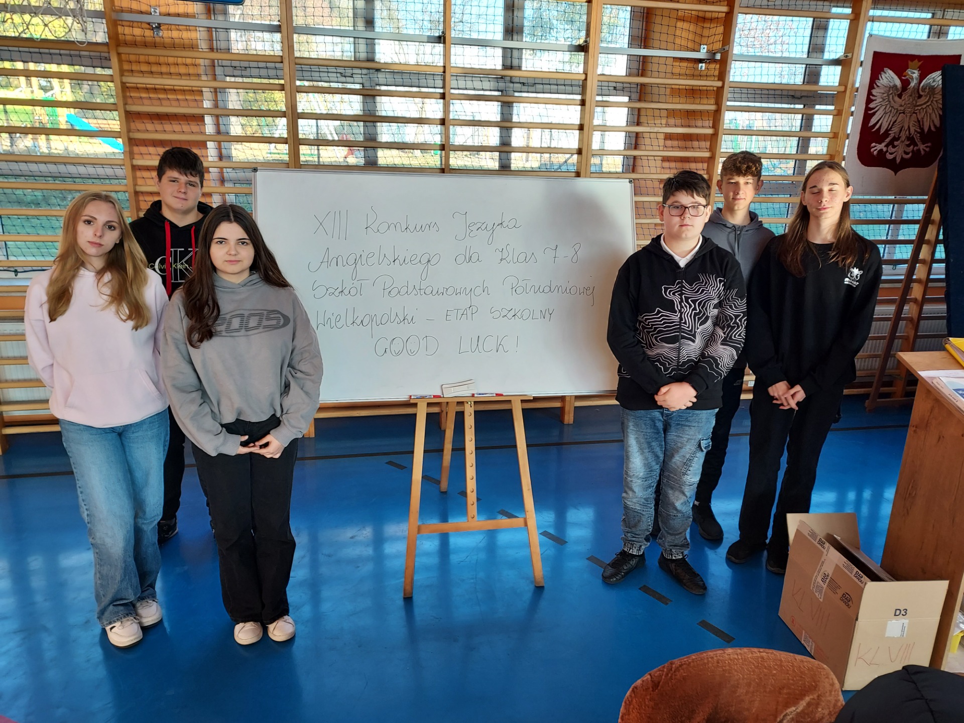 5 listopada sześcioro uczniów z klasy ósmej wzięło udział w etapie szkolnym XIII Konkursu Języka Angielskiego dla Klas 7 - 8 Południowej Wielkopolski. Ósmoklasiści musieli rozwiązać test składający się z 35 pytań. Dwie osoby, które uzyskały najwyższe wyniki będą reprezentowały naszą Szkołę w finale Konkursu, który odbędzie się 21 listopada w Ośrodku Doskonalenia Nauczycieli w Kaliszu.
