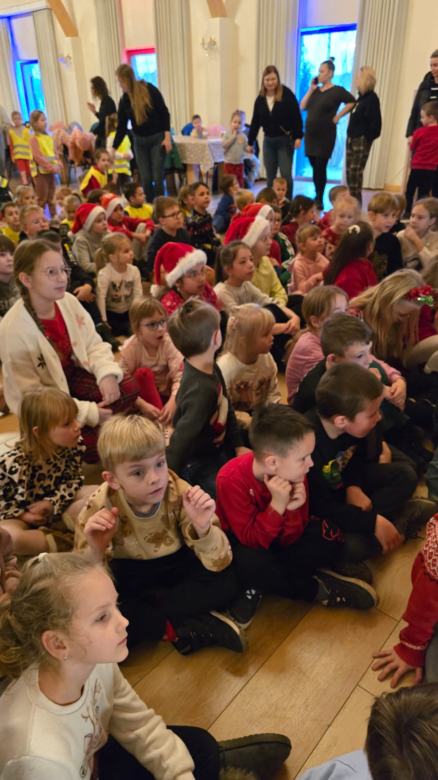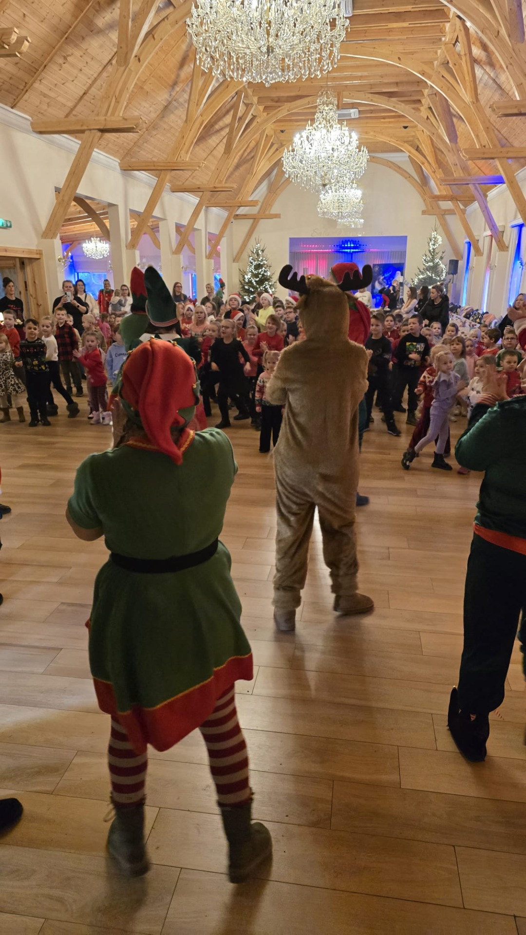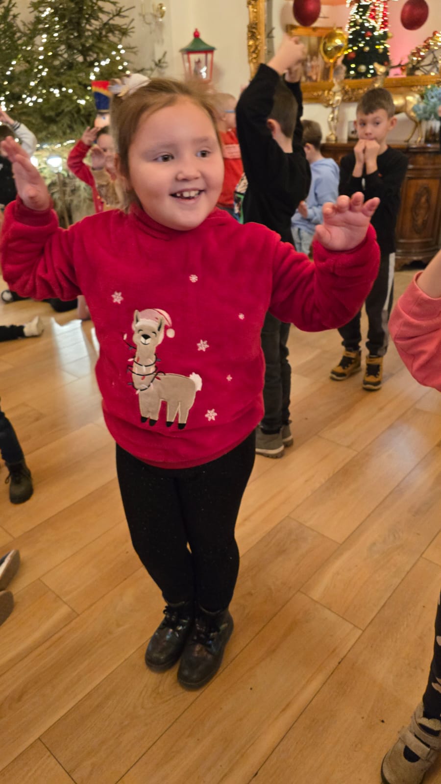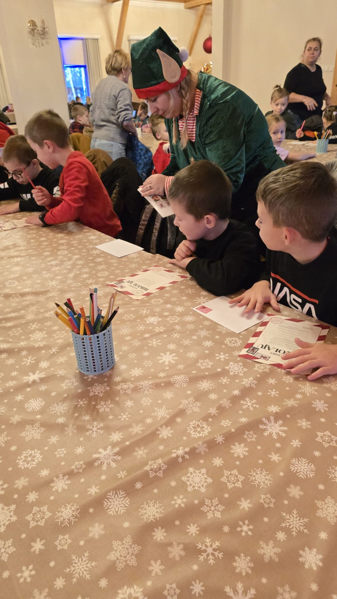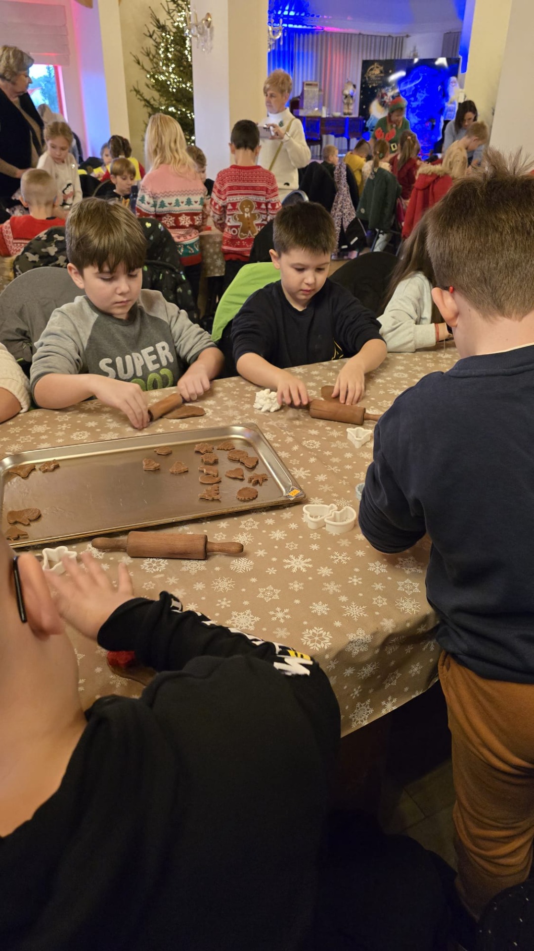 Przywitała nas Pani Mikołajowa oraz Elfy, które od tej pory towarzyszyły nam w wędrówce po magicznej krainie. Złożyliśmy wizytę w pracowni Elfów, po czym udaliśmy się do domu Mikołaja, aby zobaczyć, jak on mieszka i co porabia w wolnym czasie. Następnie udaliśmy się do Sali Diamentowej, gdzie Elfy pomogły nam napisać list do Mikołaja. Wrzuciliśmy je do skrzynki pocztowej na Poczcie Mikołaja. Mogliśmy również wykazać się talentem kulinarnym piekąc pierniczki. Oczywiście, z wielką ochotą zjedliśmy je później popijając cynamonową herbatką. Szczególną atrakcją w tym budynku było spotkanie z Mikołajem, który z nami rozmawiał, bawił się, tańczył, śpiewał kolędy i pozował do pamiątkowych zdjęć. Na zakończenie, odwiedziliśmy świąteczny sklepik, gdzie można było kupić pamiątki i gwiazdkowe prezenty dla najbliższych. w drodze powrotnej do autokaru czekała nas kolejna niespodzianka – mini ZOO...
