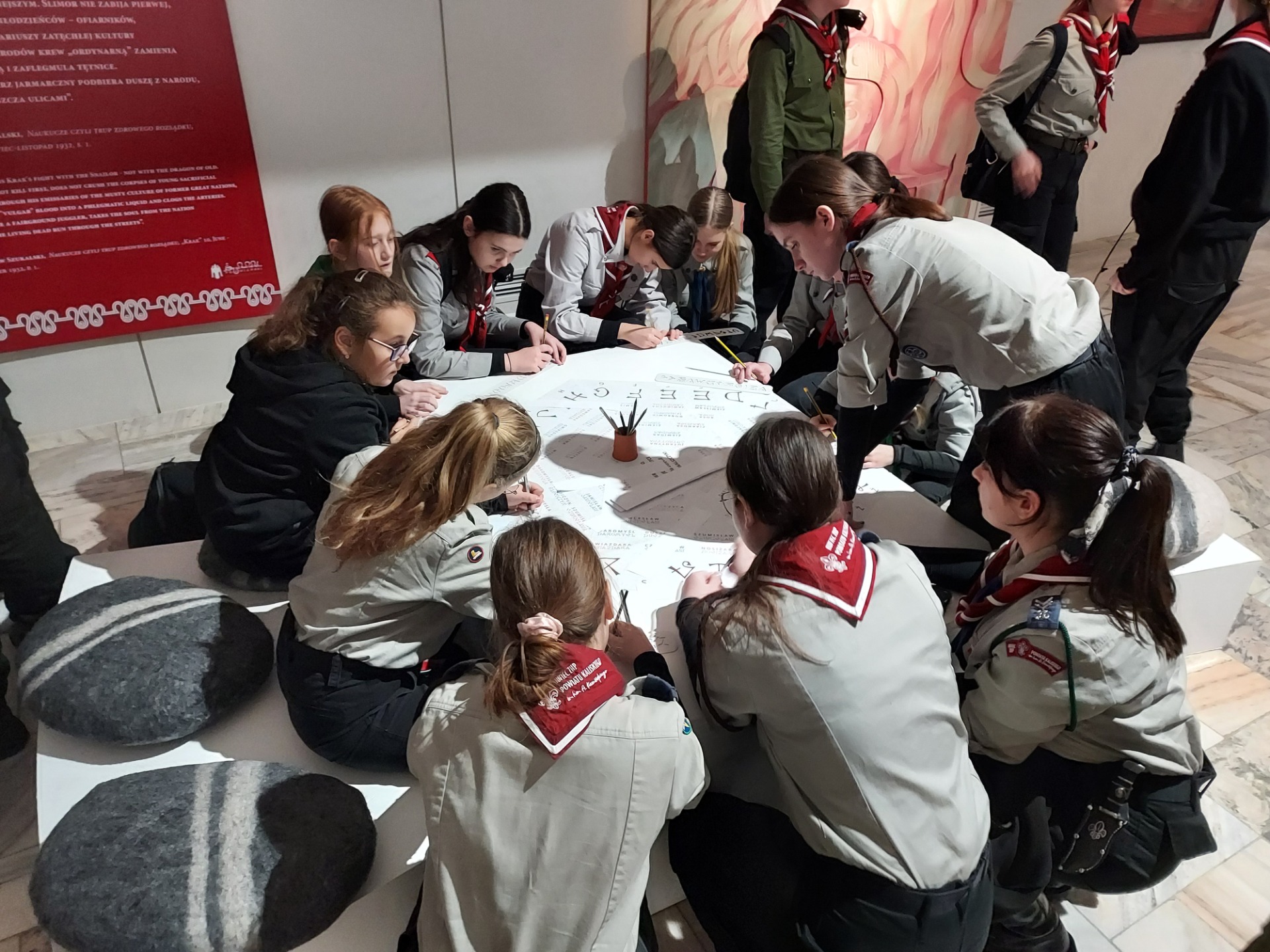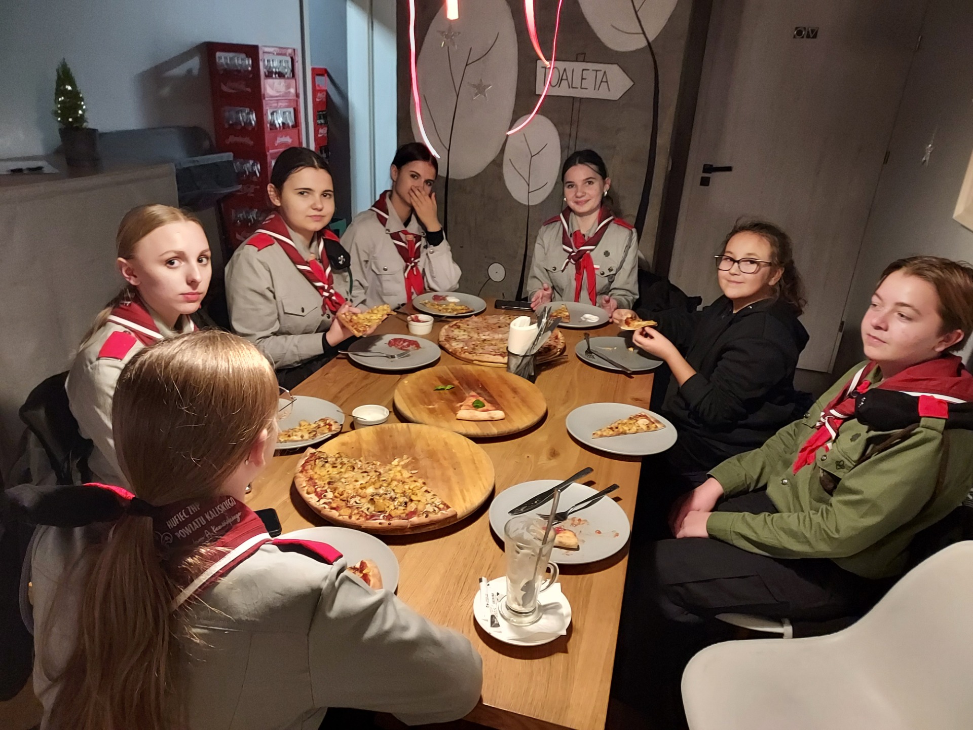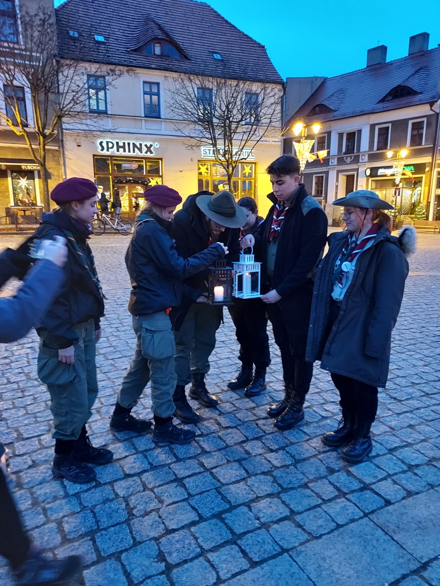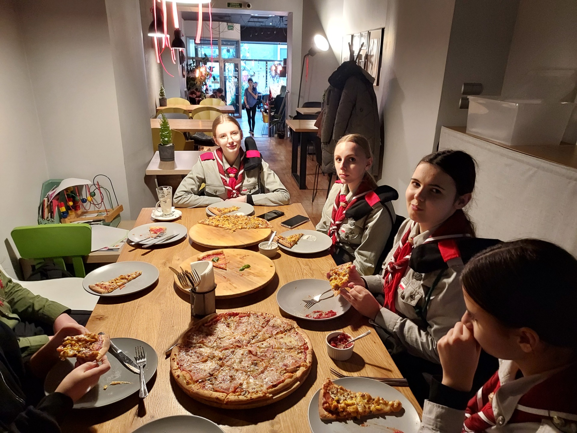 W sobotę 21 grudnia 7 harcerzy z 4 DH „Dzierzby” pod opieką drużynowej wraz z innymi drużynami Hufca ZHP Powiatu Kaliskiego wzięło udział w wycieczce do Gniezna po Betlejemskie Światło Pokoju. Podczas wycieczki harcerze poznali najciekawsze atrakcje turystyczne Gniezna. Zwiedziliśmy Katedrę Gnieźnieńską na Wzgórzu Lecha ze słynnymi Drzwiami Gnieźnieńskimi. Byliśmy również w podziemiach Katedry. Następnie udaliśmy się do Muzeum Początków Państwa Polskiego, gdzie przewodnik w bardzo ciekawy sposób przeprowadził nas przez wystawy stałe i czasowe ekspozycje. Resztę wycieczki spędziliśmy w plenerze, wędrując po mieście i zdobywając punkty z aplikacją „Królika Goń”. Zrobiliśmy sobie przerwę na ciepły posiłek w jednej z pizzerii przy Rynku, a po posiłku wraz z innymi drużynami śpiewaliśmy piosenki i pląsy w sercu Gniezna. O 15.45 wszystkie drużyny spotkały się na Rynku i wspólnie oczekiwaliśmy na przekazanie BŚP przez harcerzy z Hufca Gniezno. Komendant zarządził zbiórkę i punktualnie o 16.00 dwie harcerki zjawiły się na Rynku niosąc płomień z Betlejem. Przyjęliśmy go z radością i ruszyliśmy w drogę powrotną, aby kontynuować sztafetę Światła w naszych środowiskach…