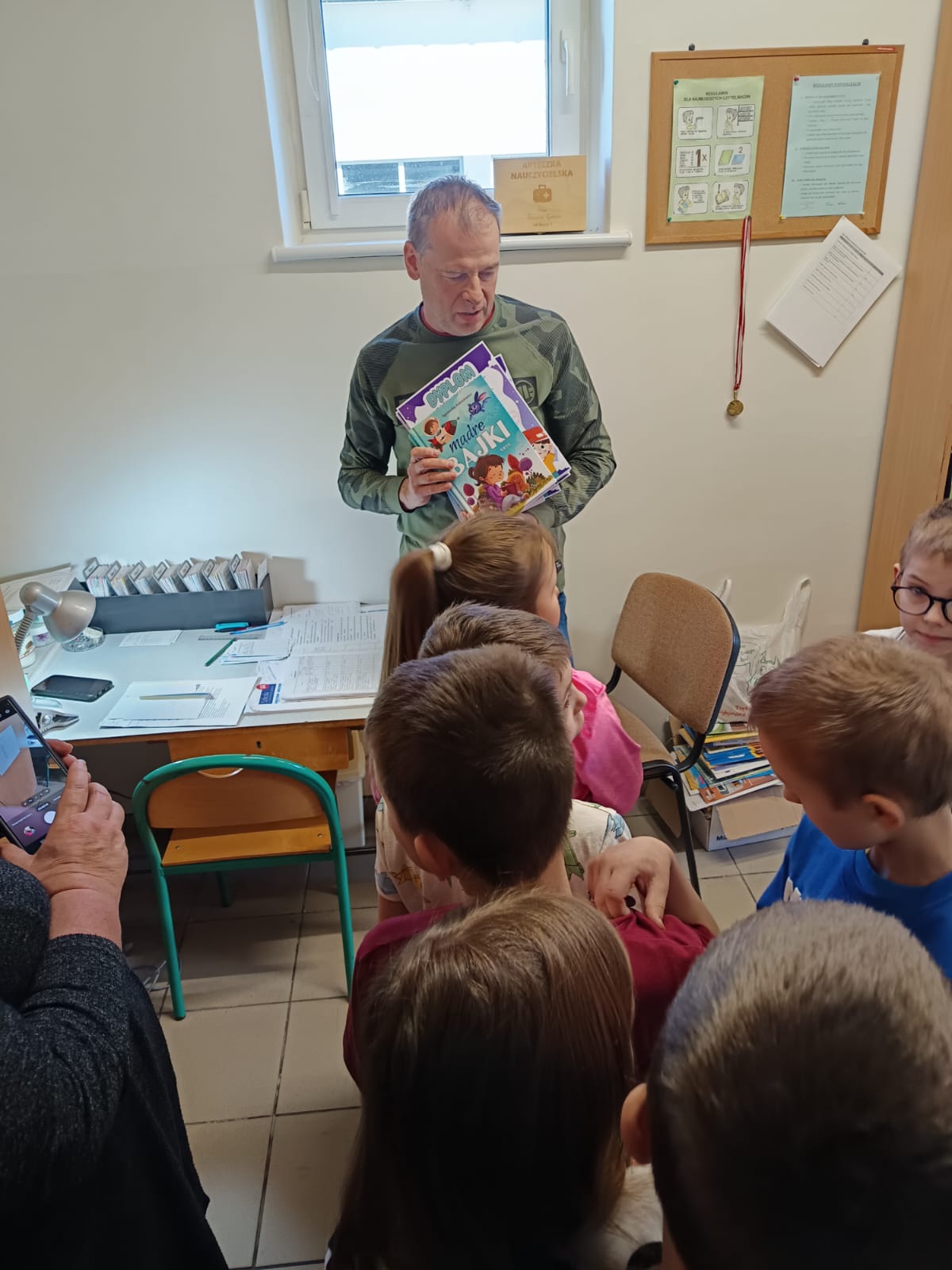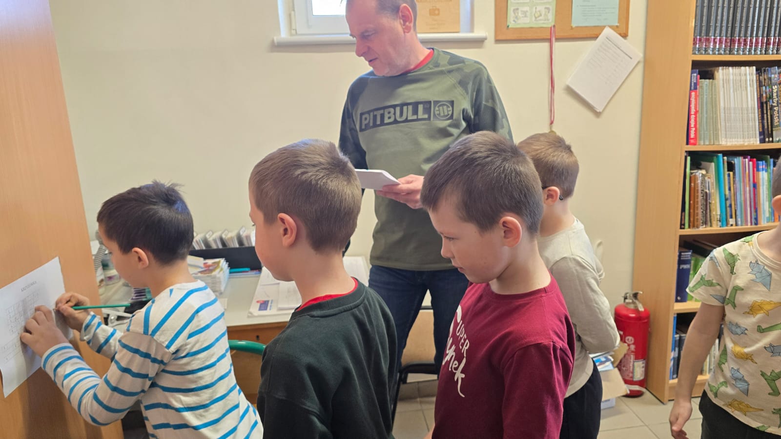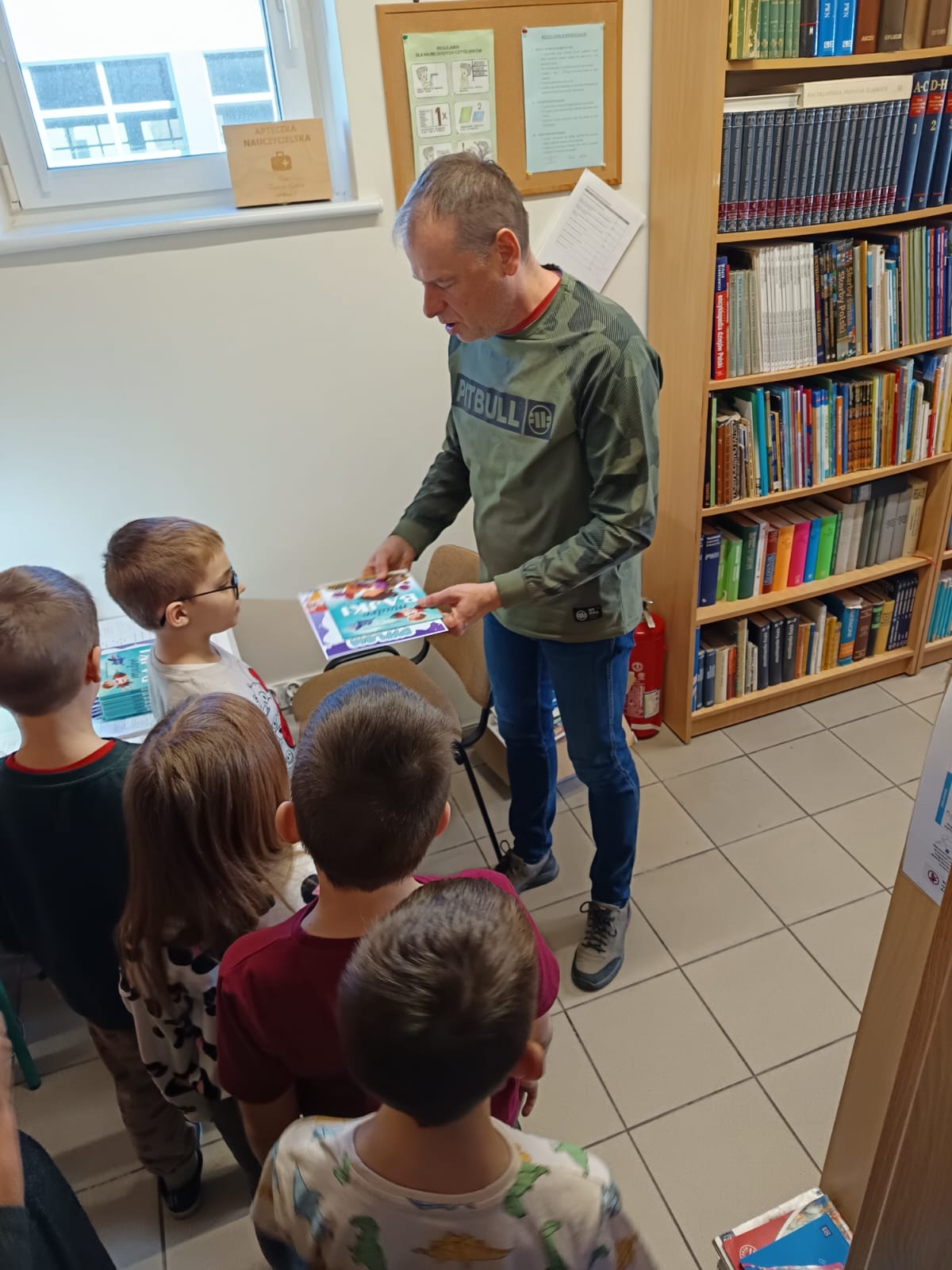 19. marca 2025 r. uczniowie klasy pierwszej po uprzednim EGZAMINIE zostali pasowani na czytelników. Pan Tomasz Korkosz przygotował mały egzamin dla kandydatów: krzyżówki, układanki, kolorowanki. Opowiedział jak powstają książki, zapoznał z zasadami wypożyczania książek i regulaminem BIBLIOTEKI. Następnie założył każdemu uczniowi kartę biblioteczną. Uczniowie na pamiątkę tego wydarzenia otrzymali Dyplom pasowania i książkę ufundowaną przez Rodziców.