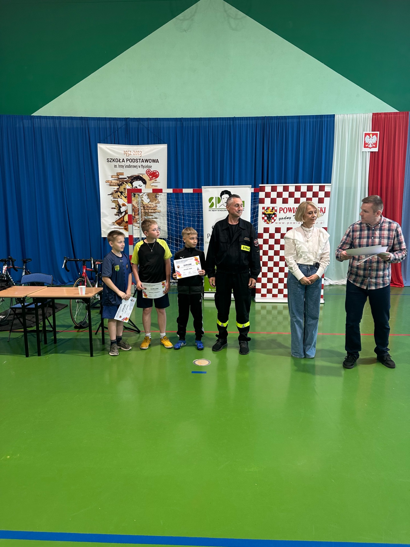 W dniu dzisiejszym, tj. 24 kwietnia 2025 r. odbył się w Szkole Podstawowej w Mycielinie "Wielki Sprawdzian na Rolce Kolarskiej". Uczniowie z klas IV i V z terenu naszej gminy starali się osiągać jak najlepsze wyniki aby zakwalifikować sie do zawodów powiatowych w jeździe indywidualnej na czas na profesjonalnych rowerach kolarskich. Wszyscy nasi uczniowie osiągneli bardzo dobre wyniki. Najlepszy wśród chłopców z klas IV był Ryszard Duhr zajmując pierwsze miejsce w gminie, a Krzysztof Durkiewicz zajął III miejsce wśród chłopców z klas V. Ponadto w zawodach udział wzięli: Zuzanna Wierzejewska, Nadia Rogowska, Wiktor Radzimski oraz Szymon Bochen. Serdeczne gratulacje i życzymy dalszych sukcesów.