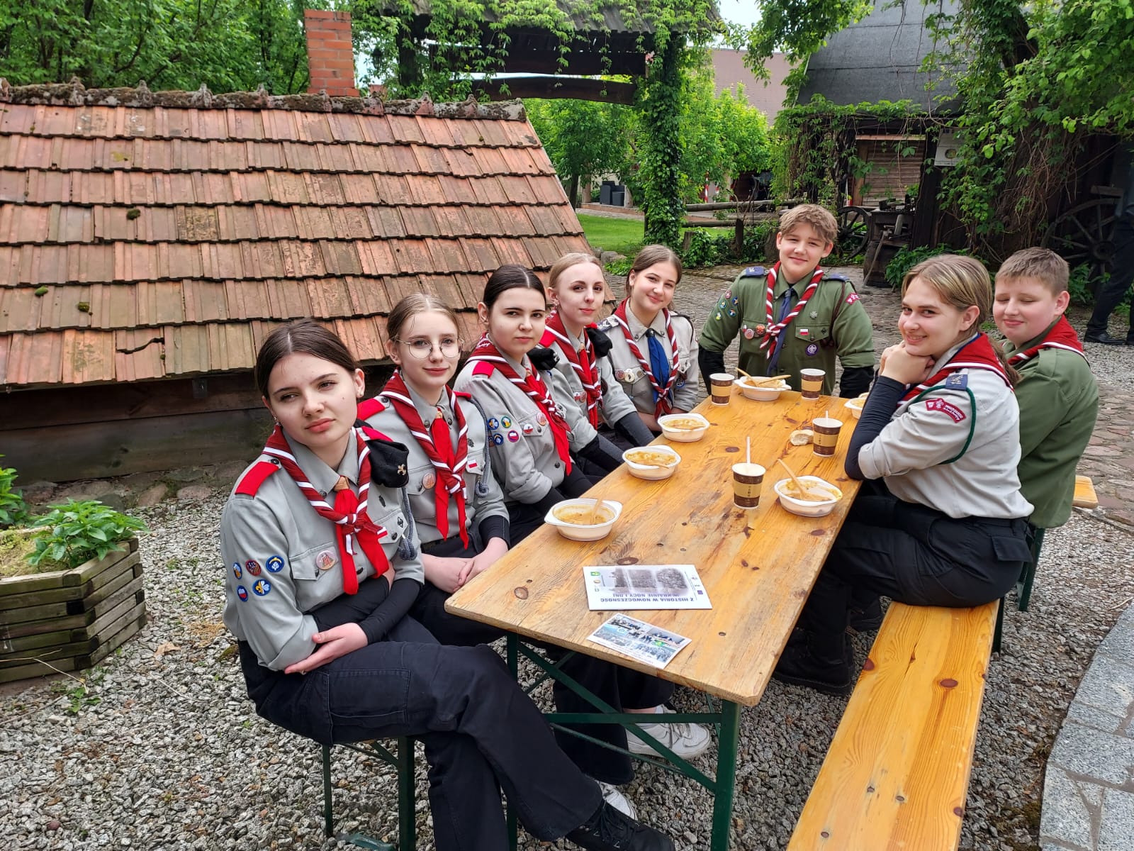 W sobotę 10 maja 4 harcerki z 4 DH "Dzierzby" wraz z drużynową wzięły udział w części wydarzeń towarzyszących Rajdowi Pamięci organizowanemu przez Starostwo Powiatowe w Kaliszu w ramach obchodów Roku Pamięci Bohaterów II Wojny Światowej. Harcerki pełniły wartę honorową oraz weszły w skład pocztu sztandarowego Hufca ZHP Powiatu Kaliskiego podczas uroczystości w Morawinie, przy pomniku pamięci 39 żołnierzy Wojska Polskiego 25. Dywizji Kaliskiej. Następnie razem z uczestnikami rajdu zostały zaproszone na poczęstunek do Agroturystyki Karczma Kaliska, gdzie wspólnie z harcerzami z 22 WDH "Oczy Lasu" zaprezentowały kilka piosenek harcerskich. Na zakończenie harcerki zwiedziły Izbę Pamięci i Grupy Rekonstrukcji Historycznej 25. Dywizji Piechoty usytuowaną na poddaszu Urzędu Gminy Ceków. Członkowie GRH osobiście oprowadzili harcerzy po swojej siedzibie, zaprezentowali najciekawsze eksponaty i opowiedzieli fascynujące historie najbardziej znanych mieszkańców Gminy Ceków.