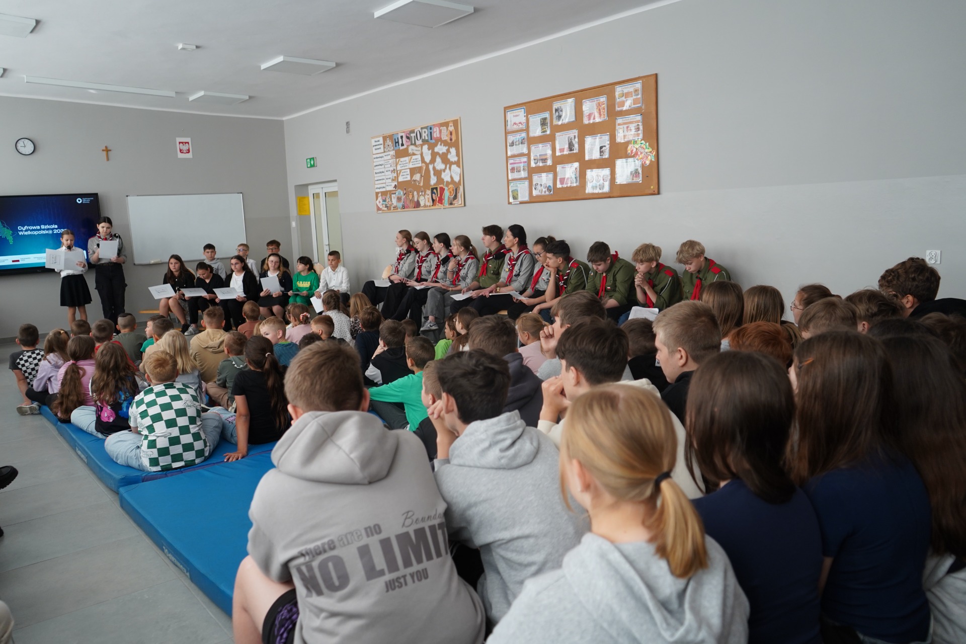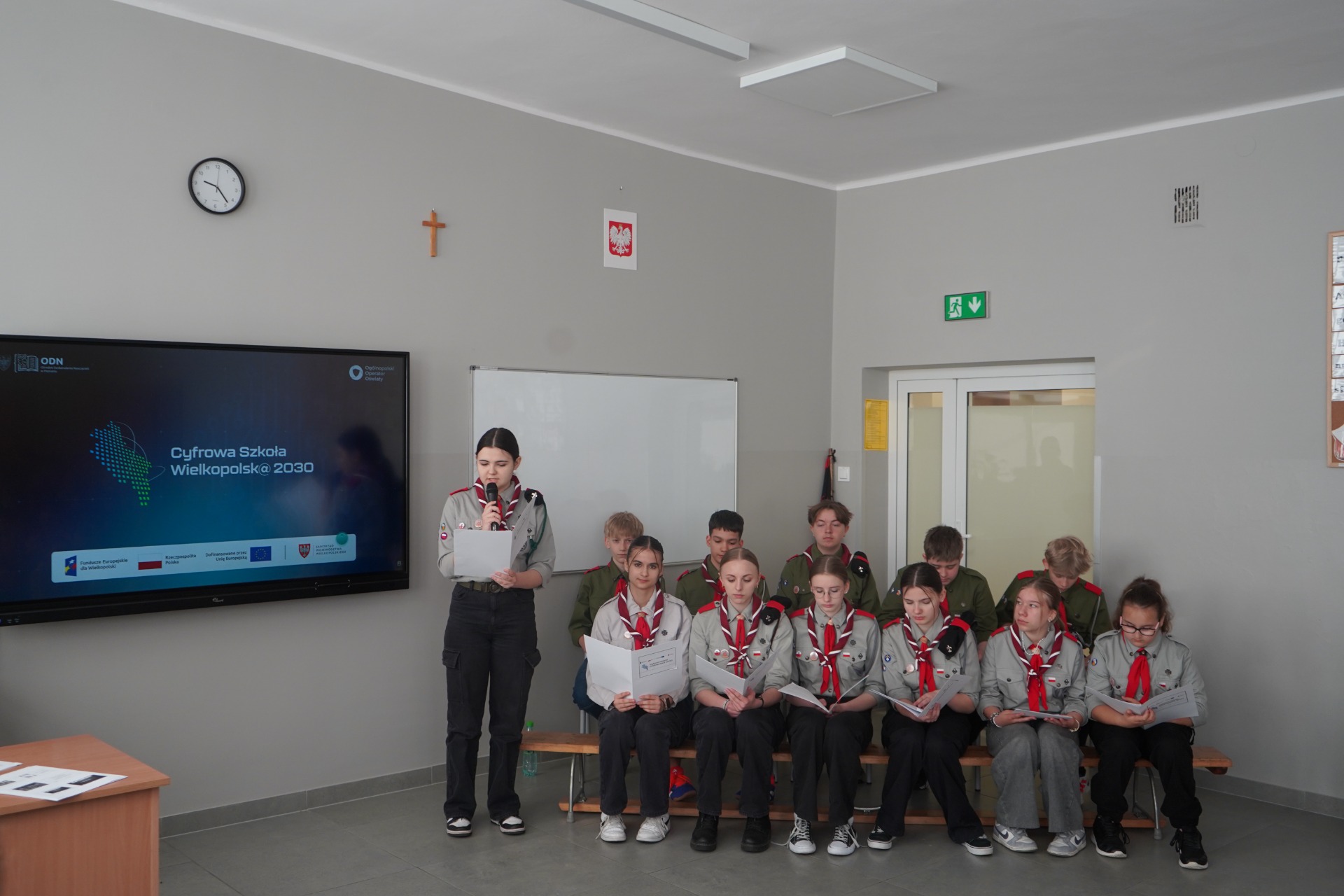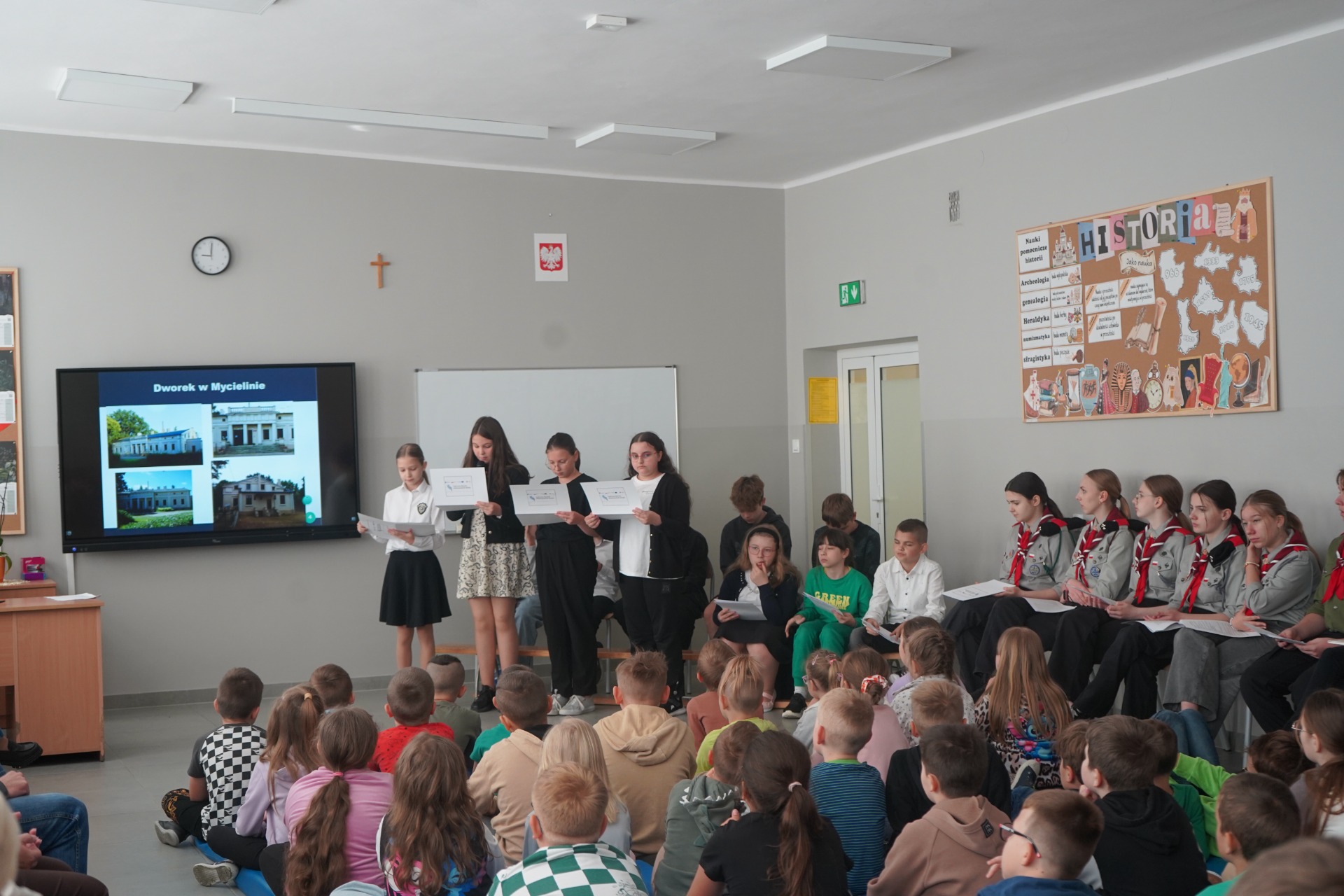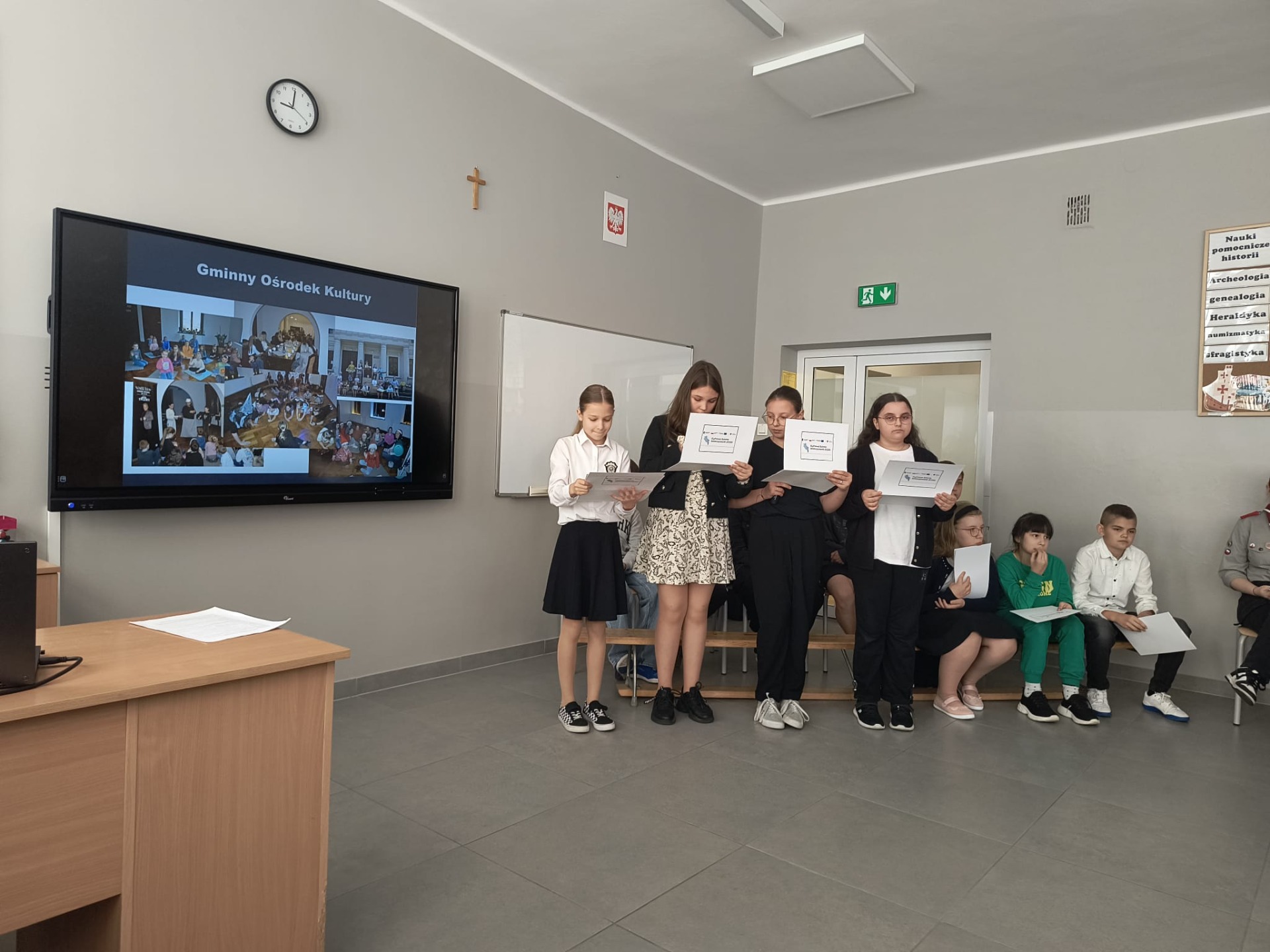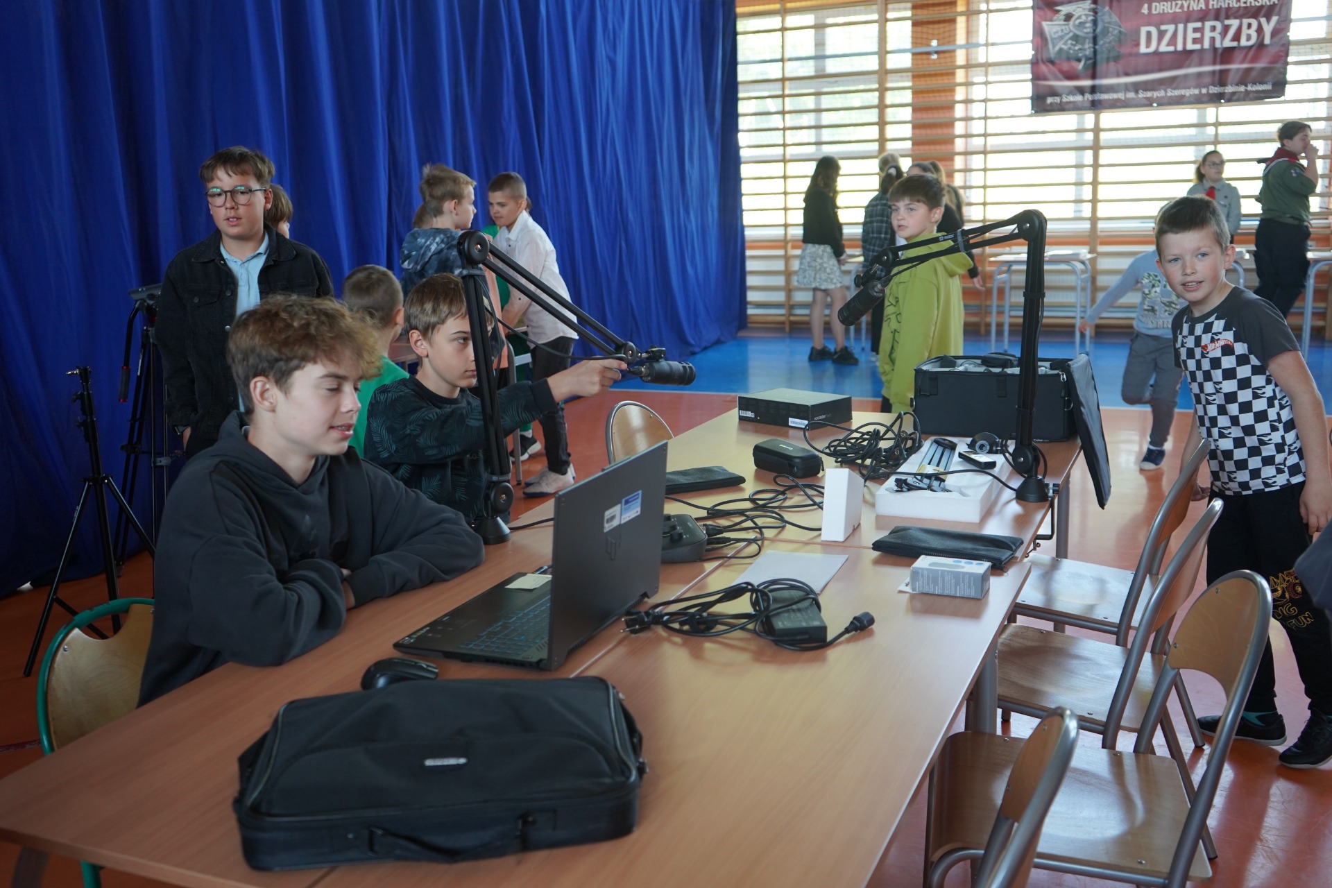 W środę 21 maja w Szkole Podstawowej im. Szarych Szeregów w Dzierzbinie-Kolonii odbyła się prezentacja projektów zrealizowanych przez dwa zespoły uczniowskie podczas zajęć dodatkowych Wielkopolska Encyklopedia Cyfrowa. Zajęcia odbywały się w szkole od listopada do maja w ramach projektu Cyfrowa Szkoła Wielkopolsk@ 2030. Opiekunem zespołu 1. był p. Mirosław Dymkowski. Zespół składał się z: dwóch uczennic z klasy IV, ośmiorga uczniów z klasy V i dwóch uczniów z klasy VII. Opiekunem zespołu 2. była p. Barbara Wieczorkiewicz, a tworzyło go trzynaścioro harcerzy z 4 Drużyny Harcerskiej „Dzierzby”: jedna czwartoklasistka, ośmioro szóstoklasistów i czworo ósmoklasistów. Podczas zajęć uczniowie starali się odnaleźć w swoim otoczeniu ciekawe miejsce, postać, organizację, a następnie opracować hasło encyklopedyczne poświęcone wybranemu zagadnieniu. Zespół 1 zrealizował projekt pod tytułem „Dworek w Mycielinie - centralny ośrodek życia społecznego wsi”. Projekt opracowany przez zespół 2 nosi tytuł „Rola 4 Drużyny Harcerskiej „Dzierzby” w historii i życiu społeczności Szkoły Podstawowej w Dzierzbinie-Kolonii”. Realizując projekty oba zespoły analizowały dokumentację, prowadziły wywiady z osobami związanymi z opracowywanymi zagadnieniami, uczestniczyły w wycieczkach do miejsc dotyczących badanej tematyki. Swoje działania dokumentowały za pomocą sprzętu otrzymanego w ramach projektu. Każdy zespół miał do dyspozycji: wysokiej jakości aparat fotograficzny z funkcją nagrywania, statyw do aparatu, gimbal, komplet dwóch mikrofonów z odbiornikiem, dyktafon z możliwością wpięcia zewnętrznego mikrofonu, zestaw do nagrywania podcastów, laptop do edycji audio-wideo oraz tablet.