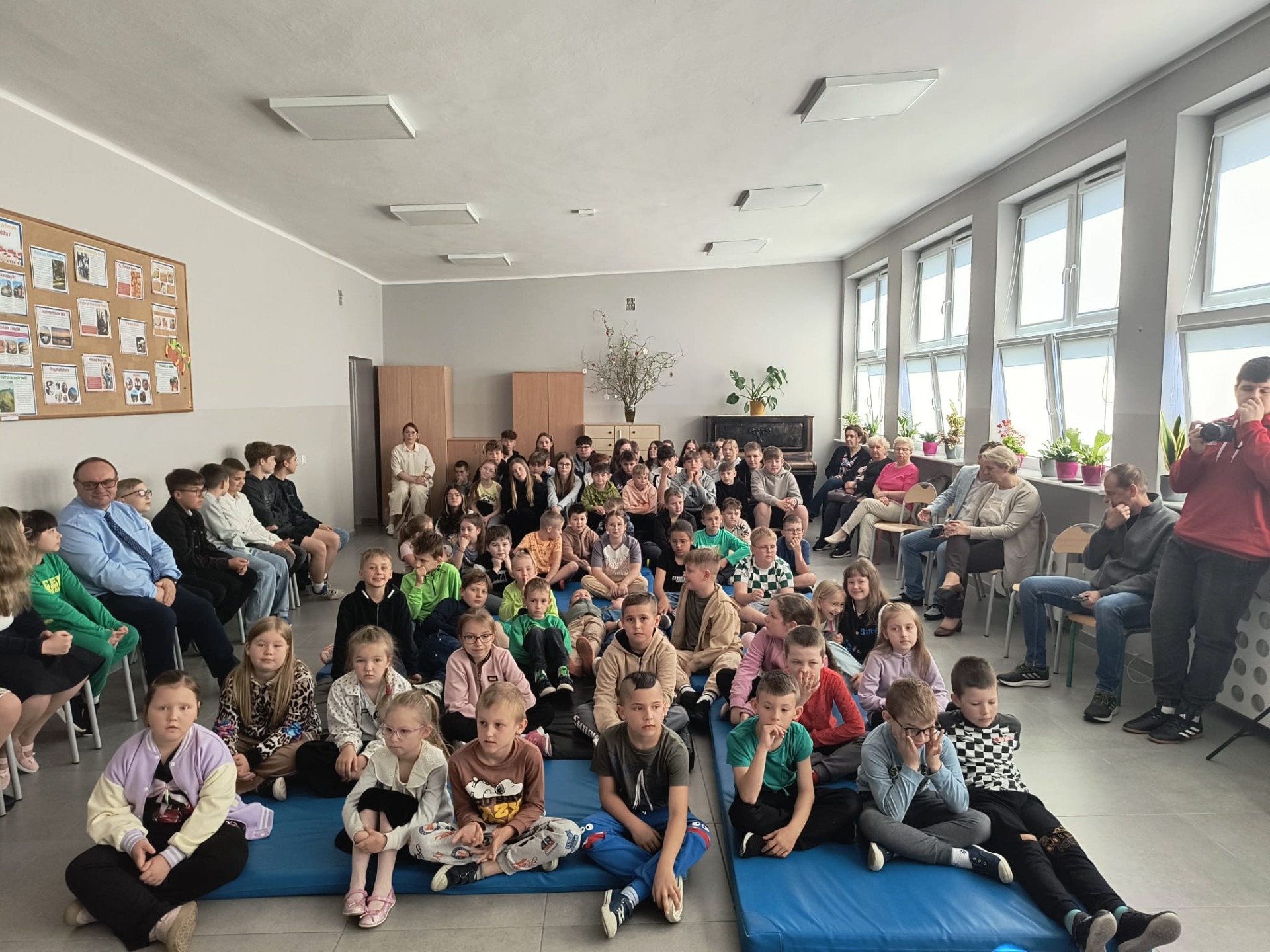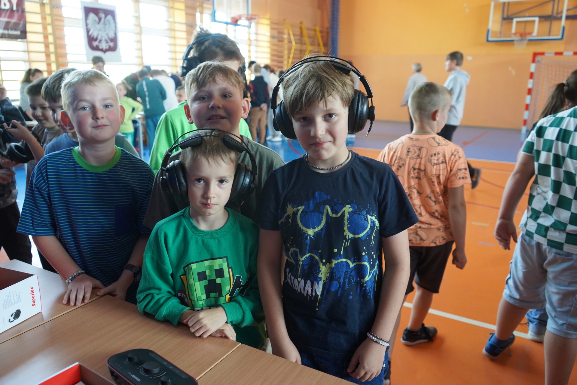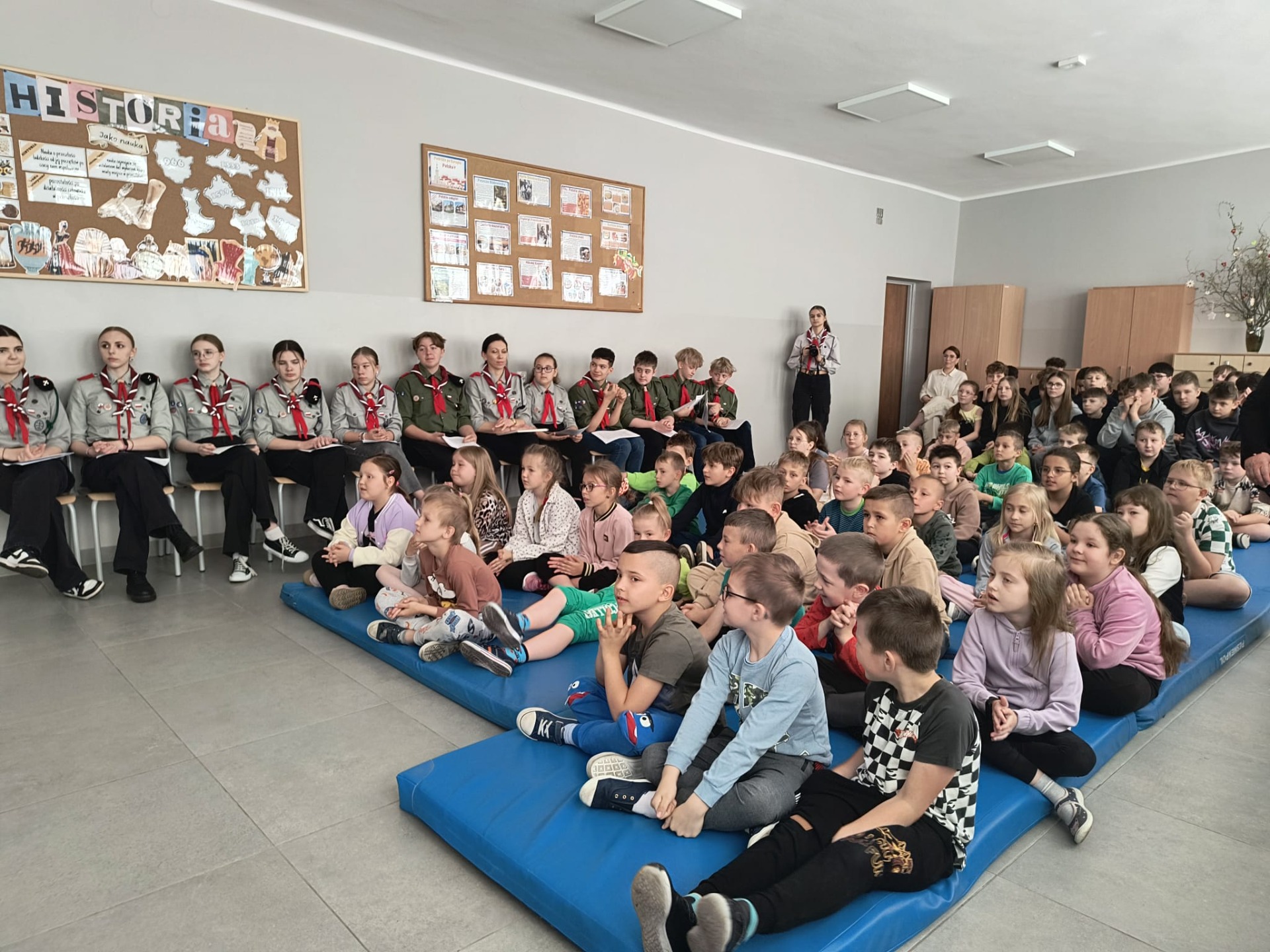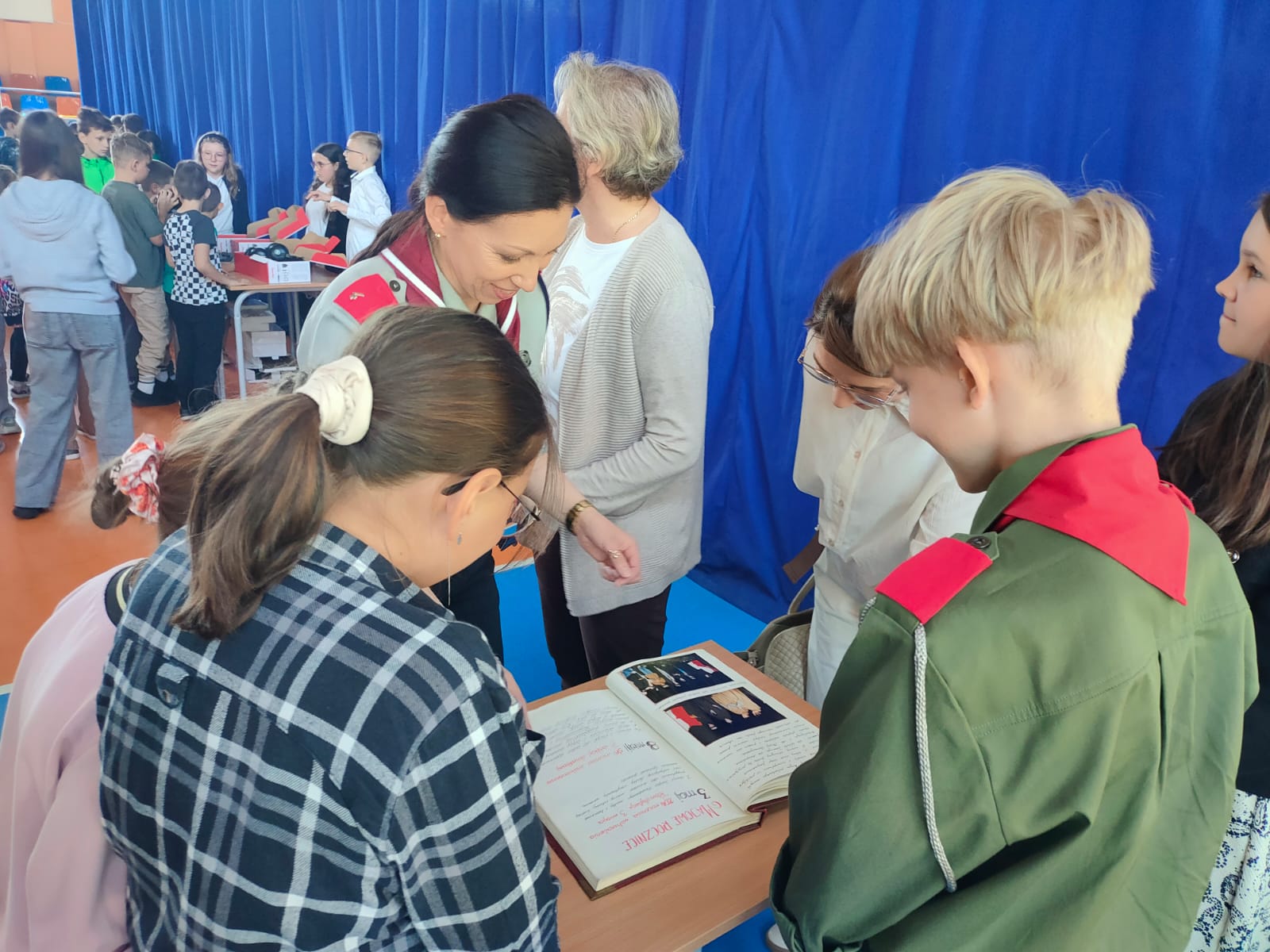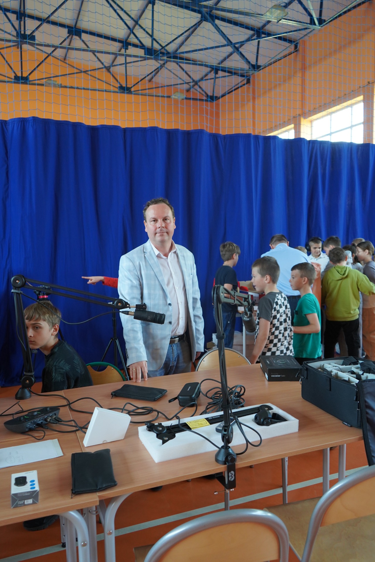 Ostatnia część podsumowania odbyła się na sali gimnastycznej, gdzie wystawiony został sprzęt pozyskany dzięki udziałowi w projekcie oraz kroniki 4 DH „Dzierzby”. Wszyscy uczniowie i nauczyciele z zainteresowaniem oglądali i testowali urządzenia, o które wzbogaciła się baza materialna szkoły. Duży entuzjazm wzbudziły również kroniki, w których uwieczniono różnorodne działania podejmowane przez szkolną drużynę harcerską.