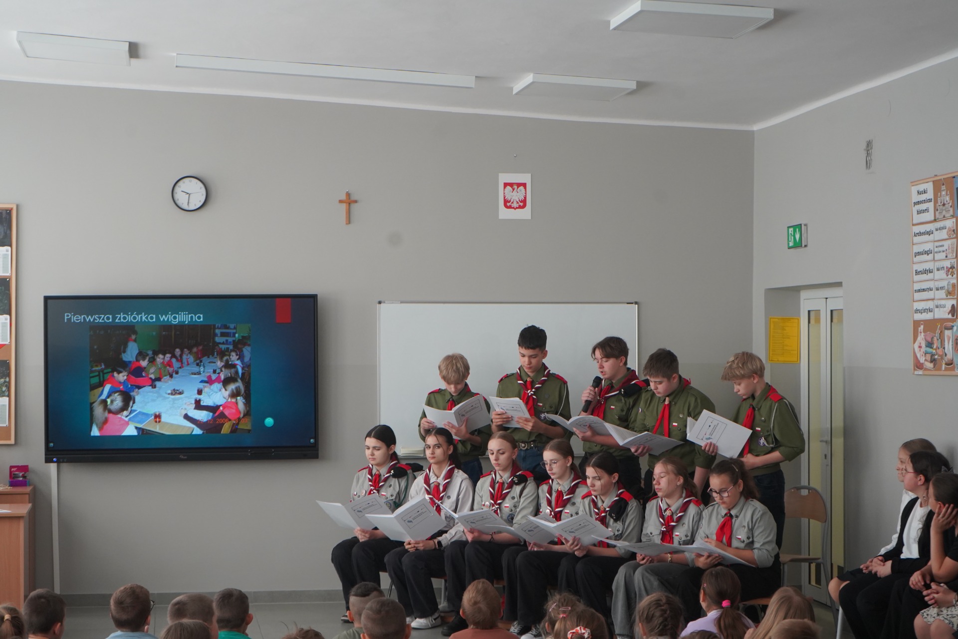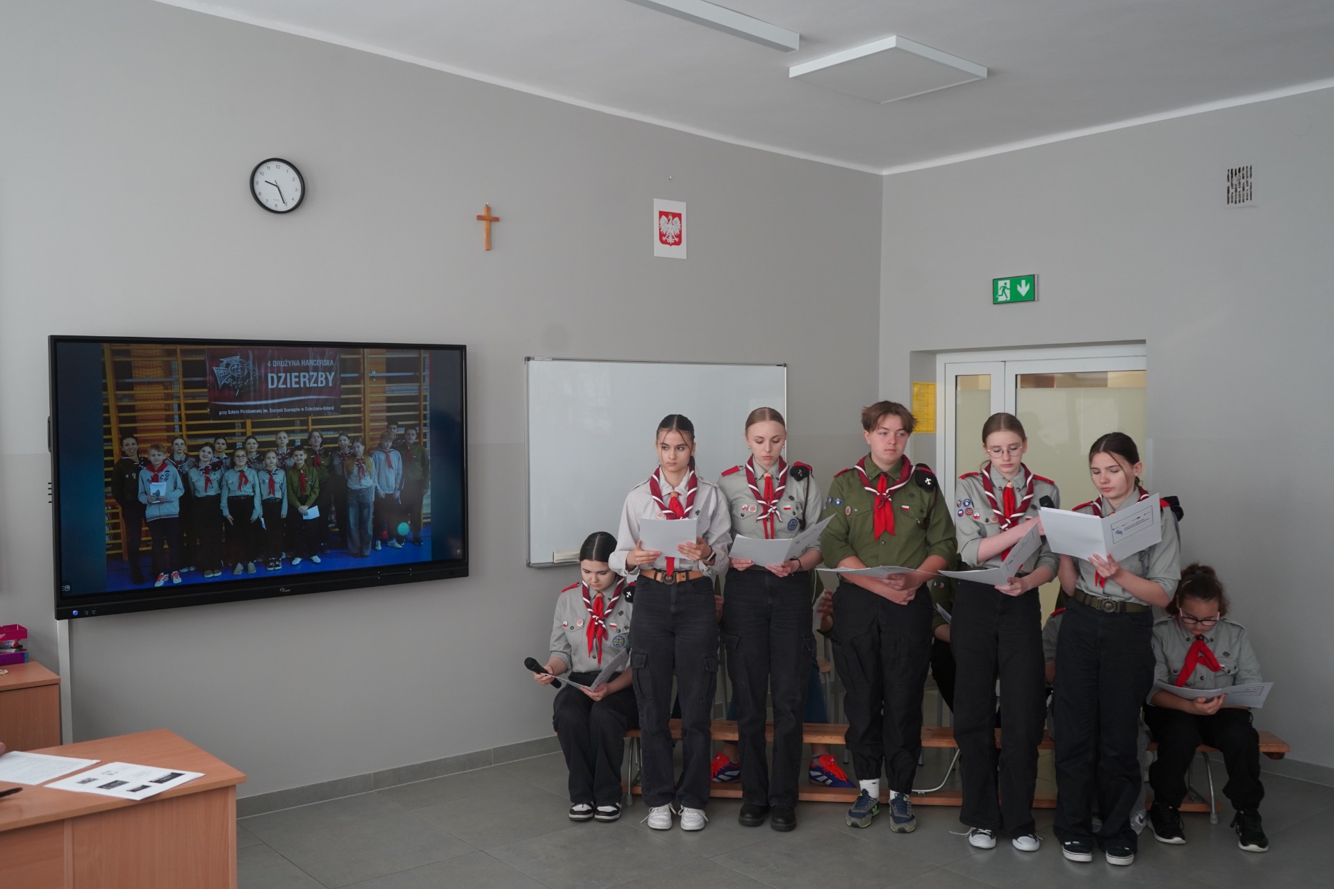 Kolejna część podsumowania projektu należała do harcerzy. Przedstawili oni swoją drużynę, wyjaśnili pochodzenie nazwy „Dzierzby” oraz opowiedzieli o tradycjach obowiązujących w 4 DH, m. in. elementach umundurowania, proporcu, nazwach zastępów, wyborze przybocznego i ulubionej zbiórce wigilijnej. Zaprezentowali również najciekawsze wydarzenia z 35-letniej historii drużyny i odniesione przez nią sukcesy. Wyjaśnili jaką rolę drużyna odegrała i nadal odgrywa w życiu społeczności szkolnej oraz jak jest postrzegana przez byłych drużynowych. Swoje wystąpienie zakończyli filmem podsumowującym sześciomiesięczną pracę w projekcie Wielkopolska Encyklopedia Cyfrowa.
