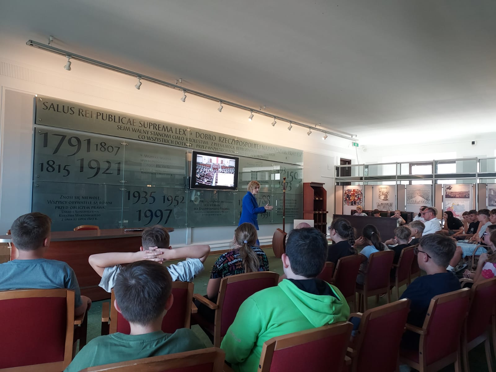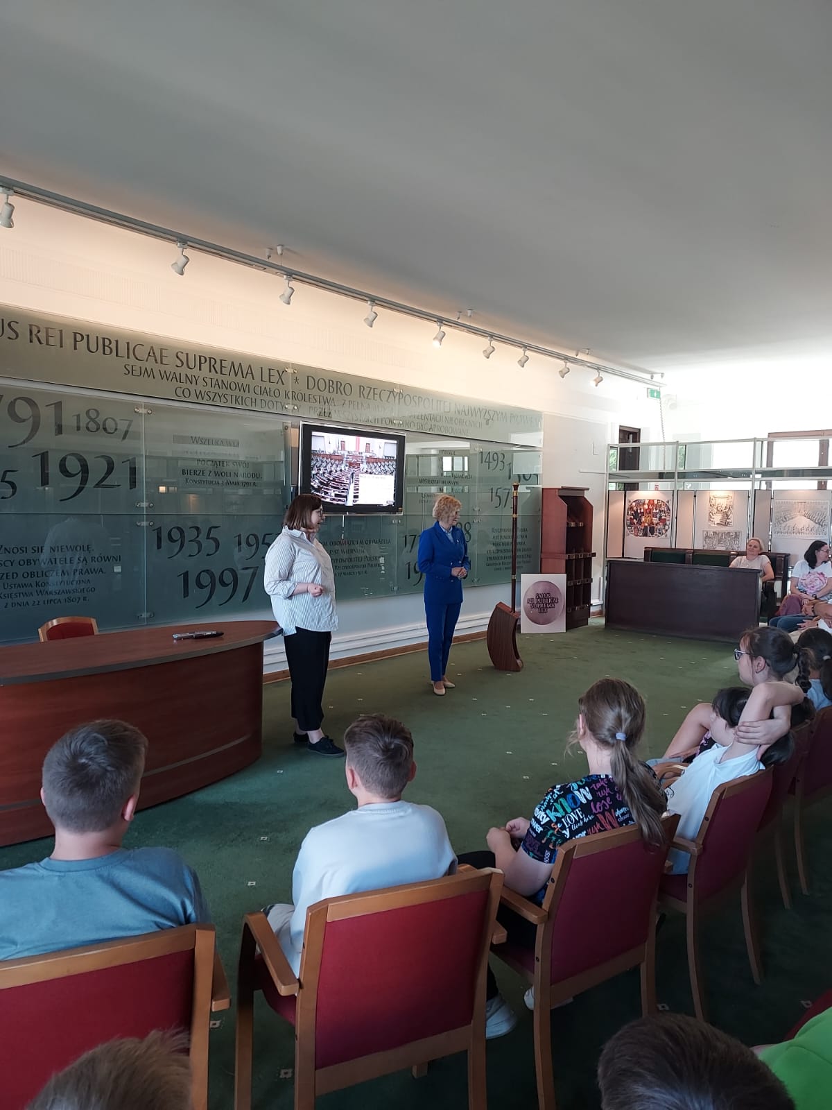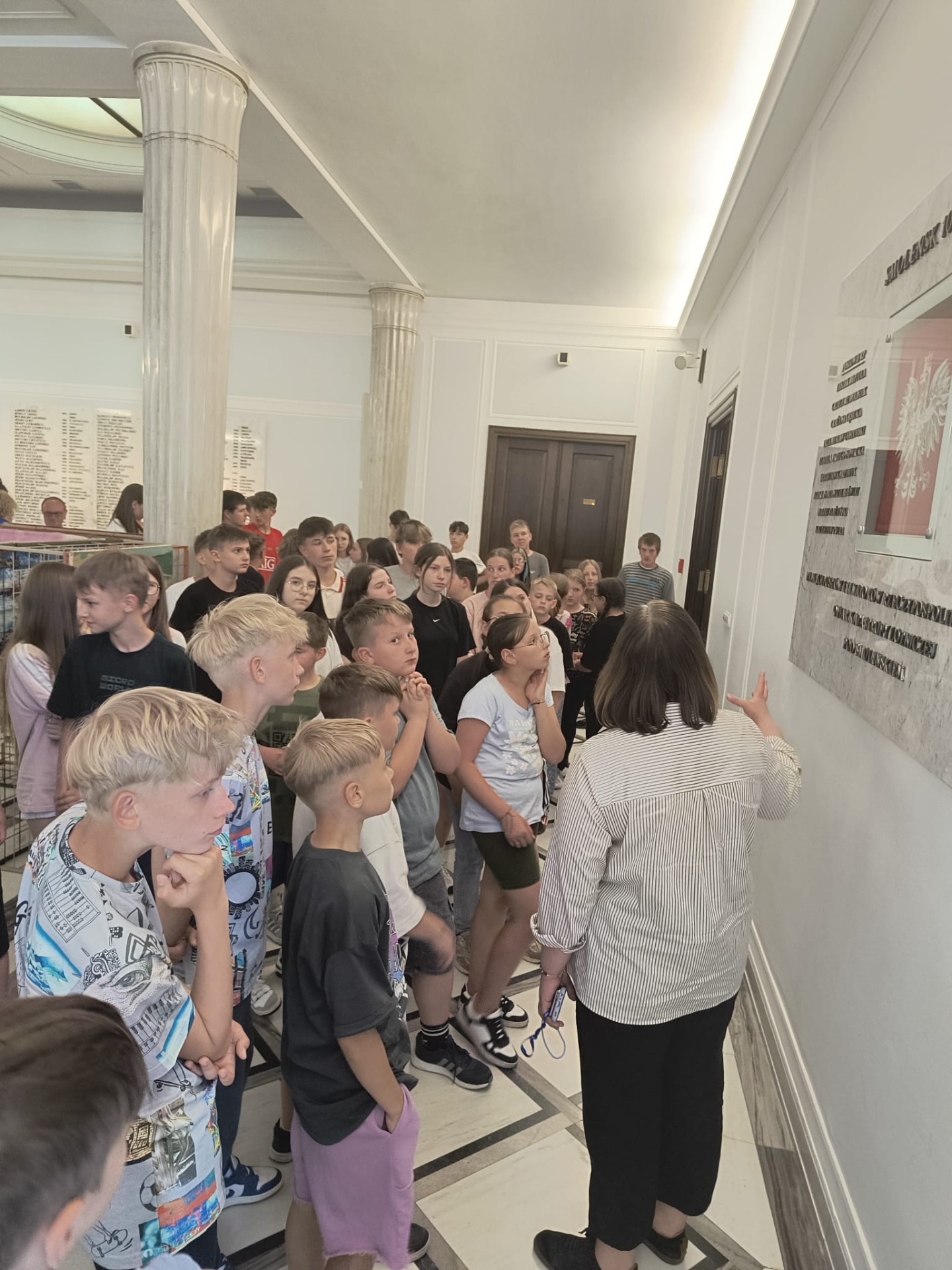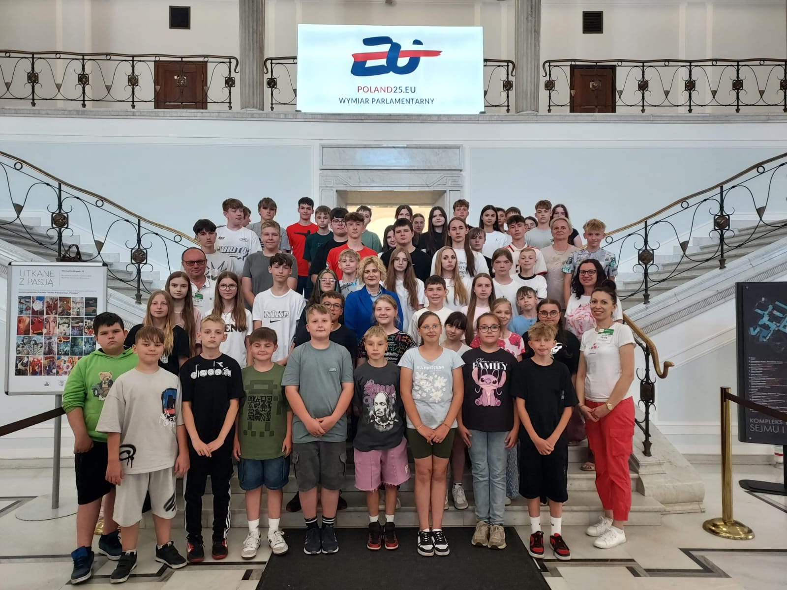 W czwartek 26 czerwca 53 uczniów z klas IV - VIII wzięło udział w wycieczce do Warszawy na specjalne zaproszenie Posłanki na Sejm RP p. Alicji Łuczak. Uczniowie zwiedzili Stare Miasto i Łazienki Królewskie. Obejrzeli również uroczystą zmianę warty przy Grobie Nieznanego Żołnierza. Punktem kulminacyjnym wycieczki była wizyta w Sejmie RP, gdzie mieliśmy przyjemność spotkać się z Panią Posłanką. Wspólnie zwiedziliśmy Sejm i obejrzeliśmy na żywo fragment obrad. Dużym przeżyciem dla wszystkich było pozdrowienie grupy przez Marszałkinię. Dziękujemy Pani Posłance za zaproszenie, przekazanie wielu ciekawych informacji na temat pracy Sejmu oraz za przemiłą atmosferę podczas zwiedzania i poświęcony czas. To spotkanie na pewno na długo pozostanie w naszej pamięci.