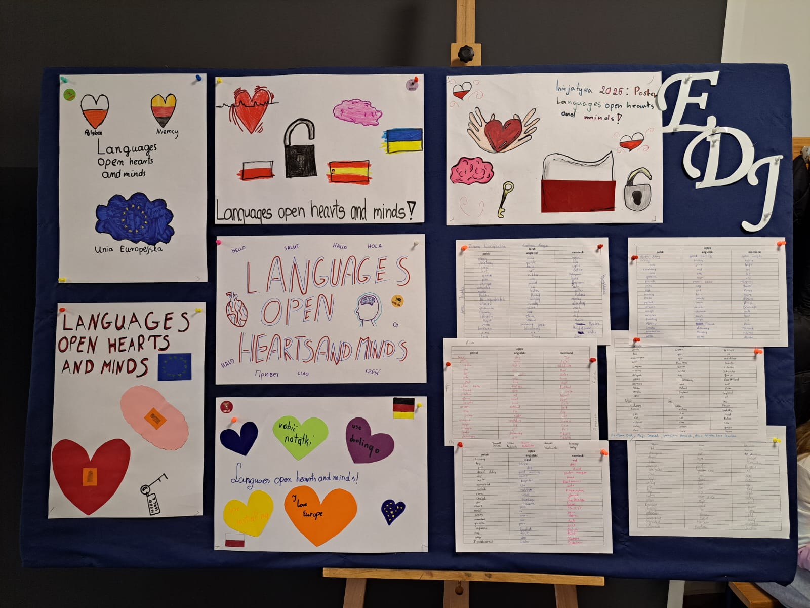 · 19:00 – 20:00 – Europejski Dzień Języków – burza mózgów; informacje o EDJ; wypełnienie tabeli ze słówkami, które znamy we wszystkich językach nauczanych w naszej szkole; wykonanie plakatów: Languages Open Hearts and Minds – Języki otwierają serca i umysły;