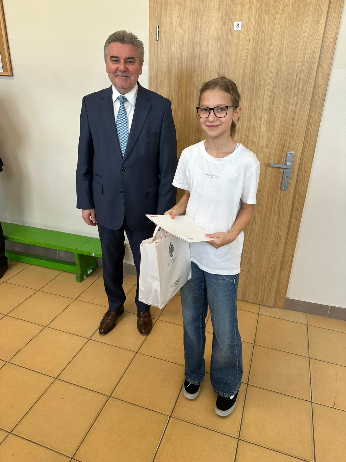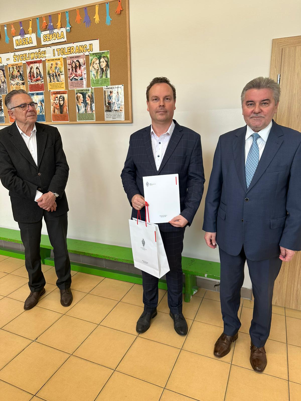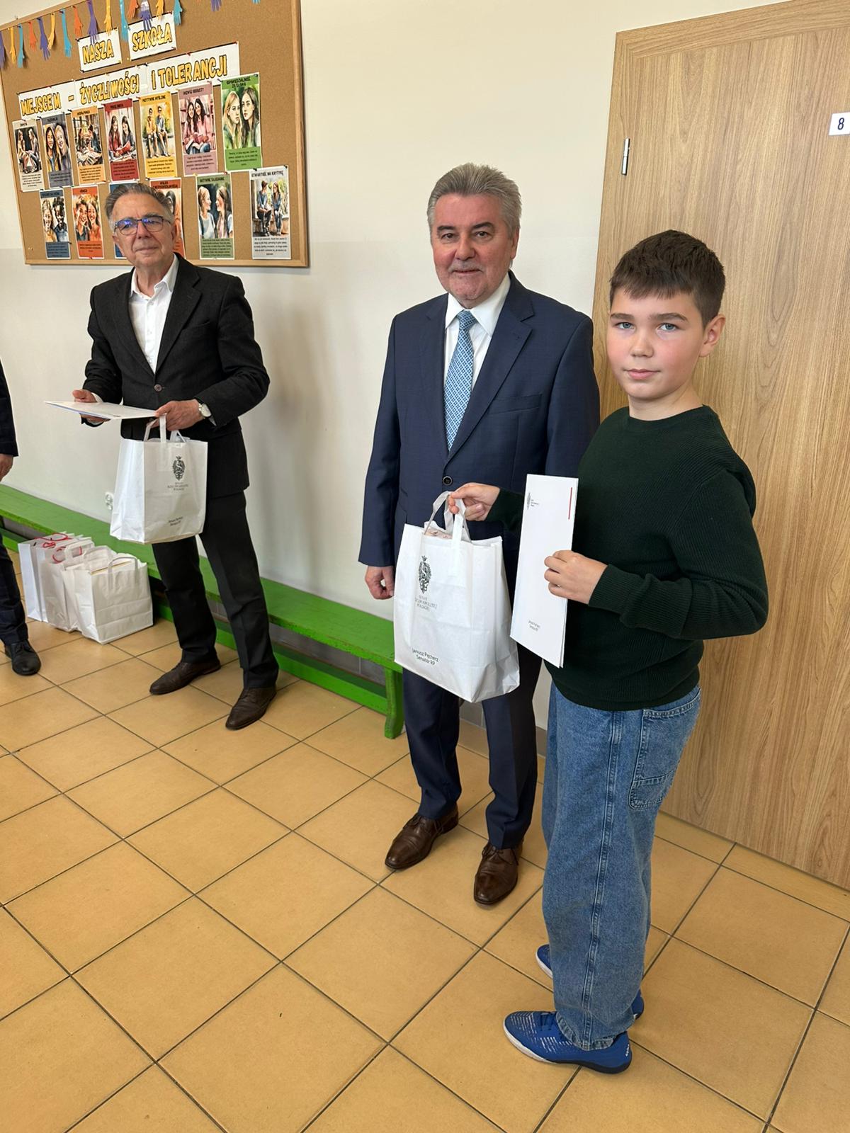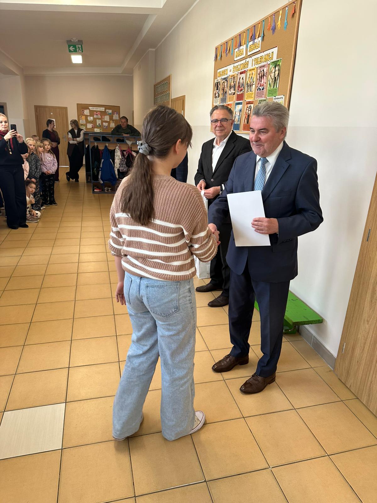 22.10.2025r. gościli w naszej szkole senator RP Janusz Pęcherz oraz dyrektor biura senatorskiego Daniel Sztandera. Głównym celem wizyty było wręczenie nagród uczniom biorącym udział w konkursie List do Taty.
